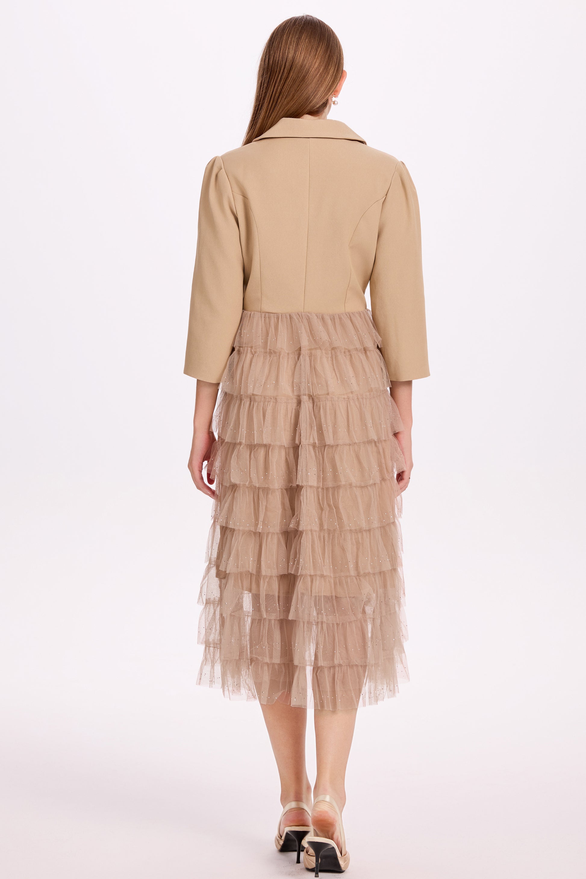 Women's Blazer Dresses Tulle Ruffle Mesh Midi Dress