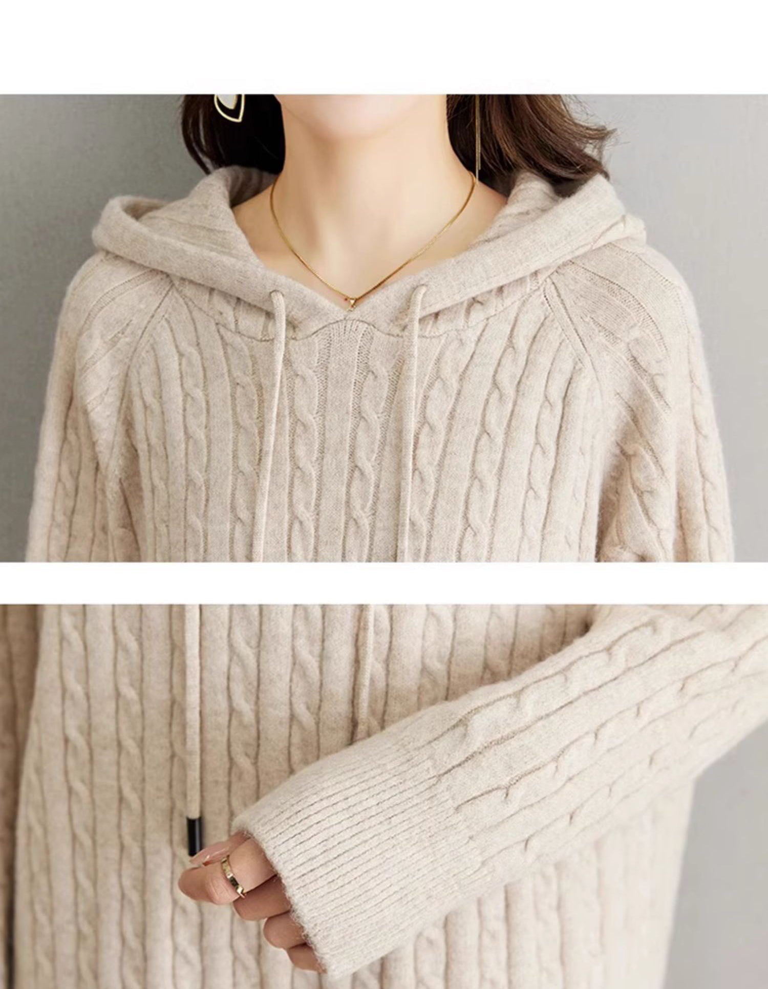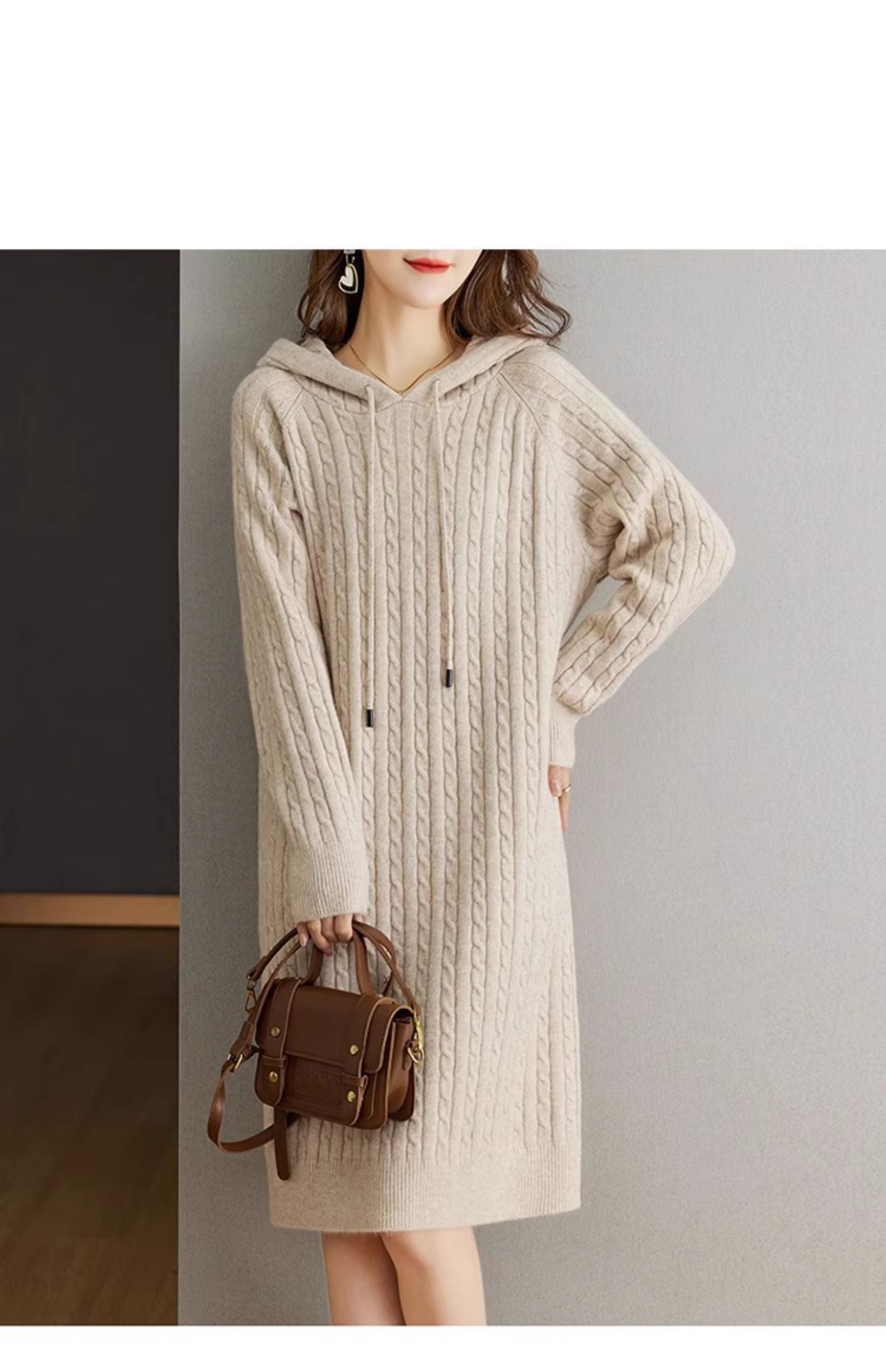 Women's Cable Knit Sweater Hoodie Midi Dress