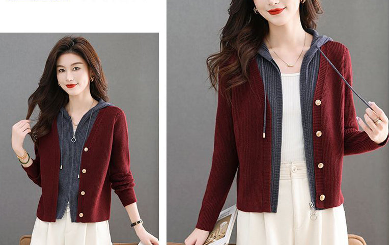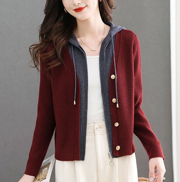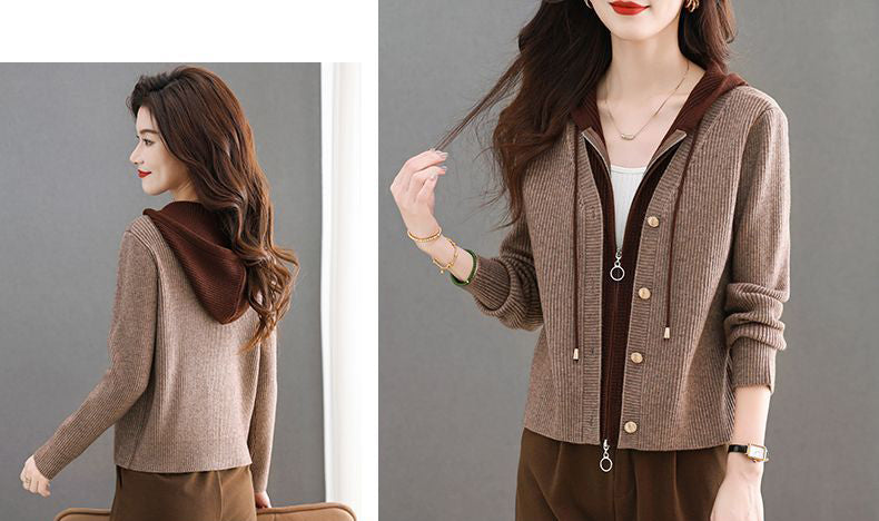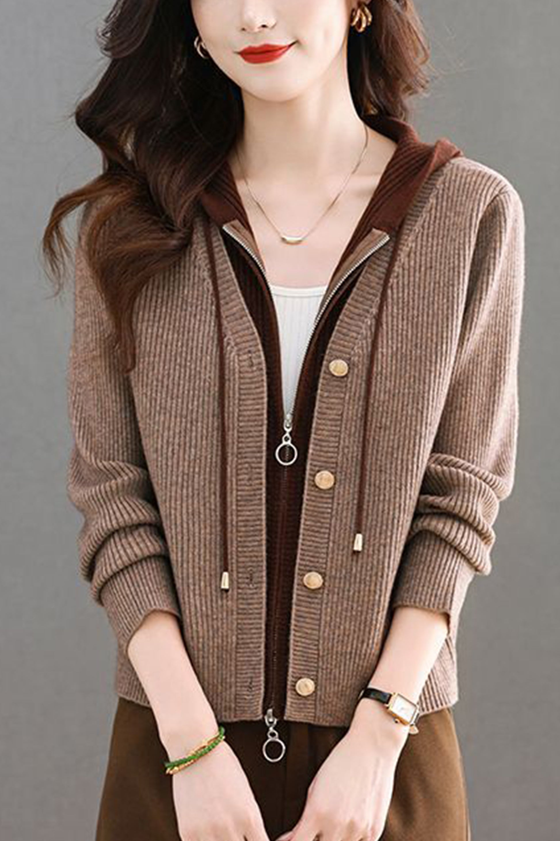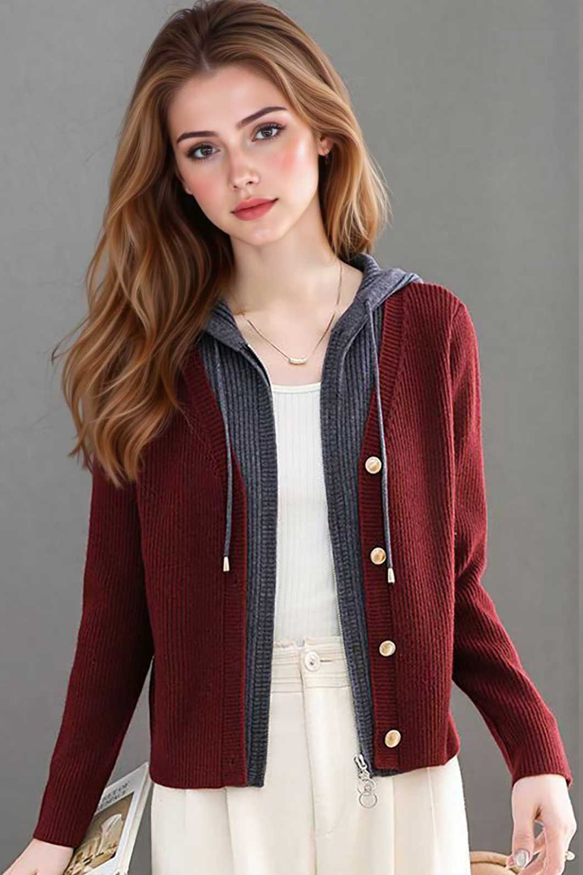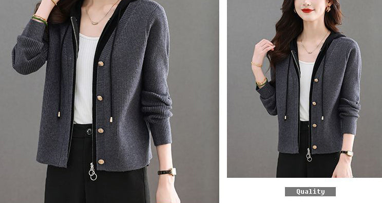 Women's Cardigan Hooded V Neck Sweaters Knit Jacket