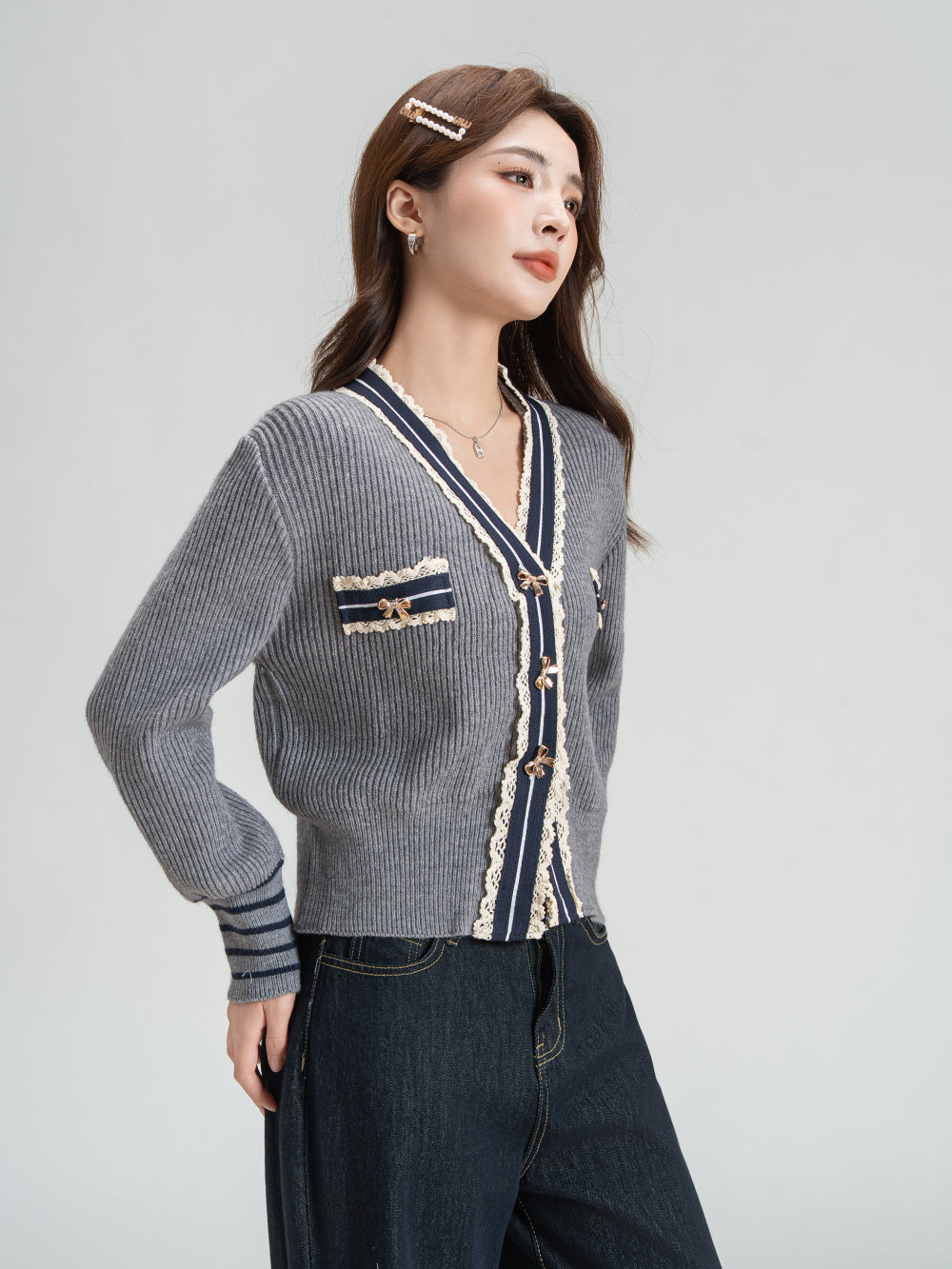 Women's Cardigan Sweater V-Neck Knit Preppy Knitwear