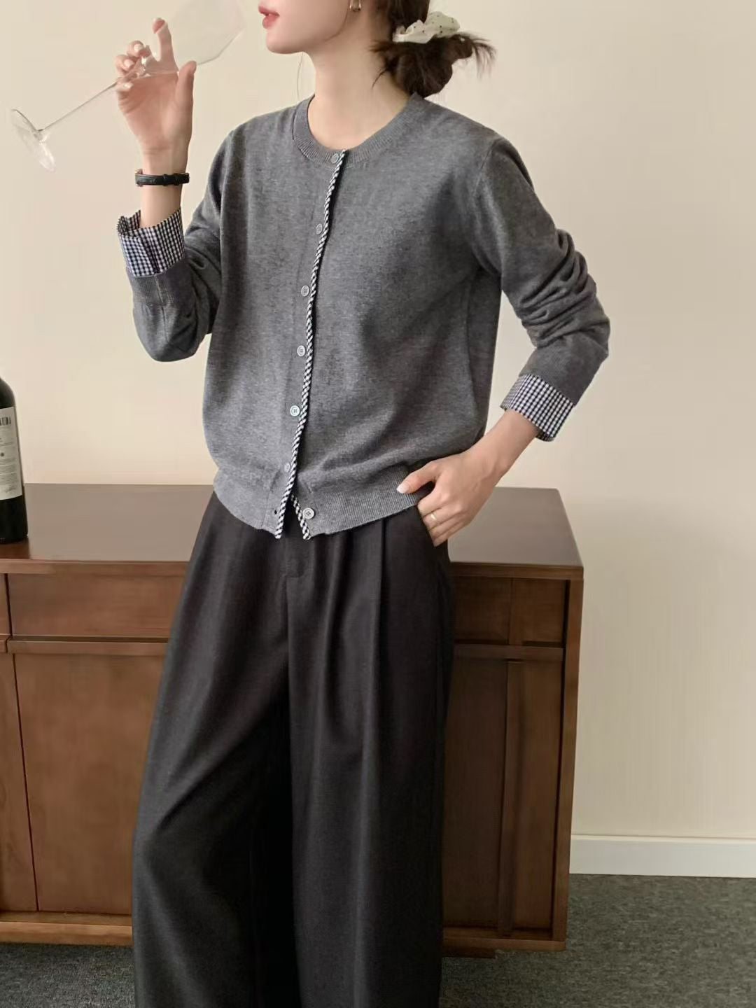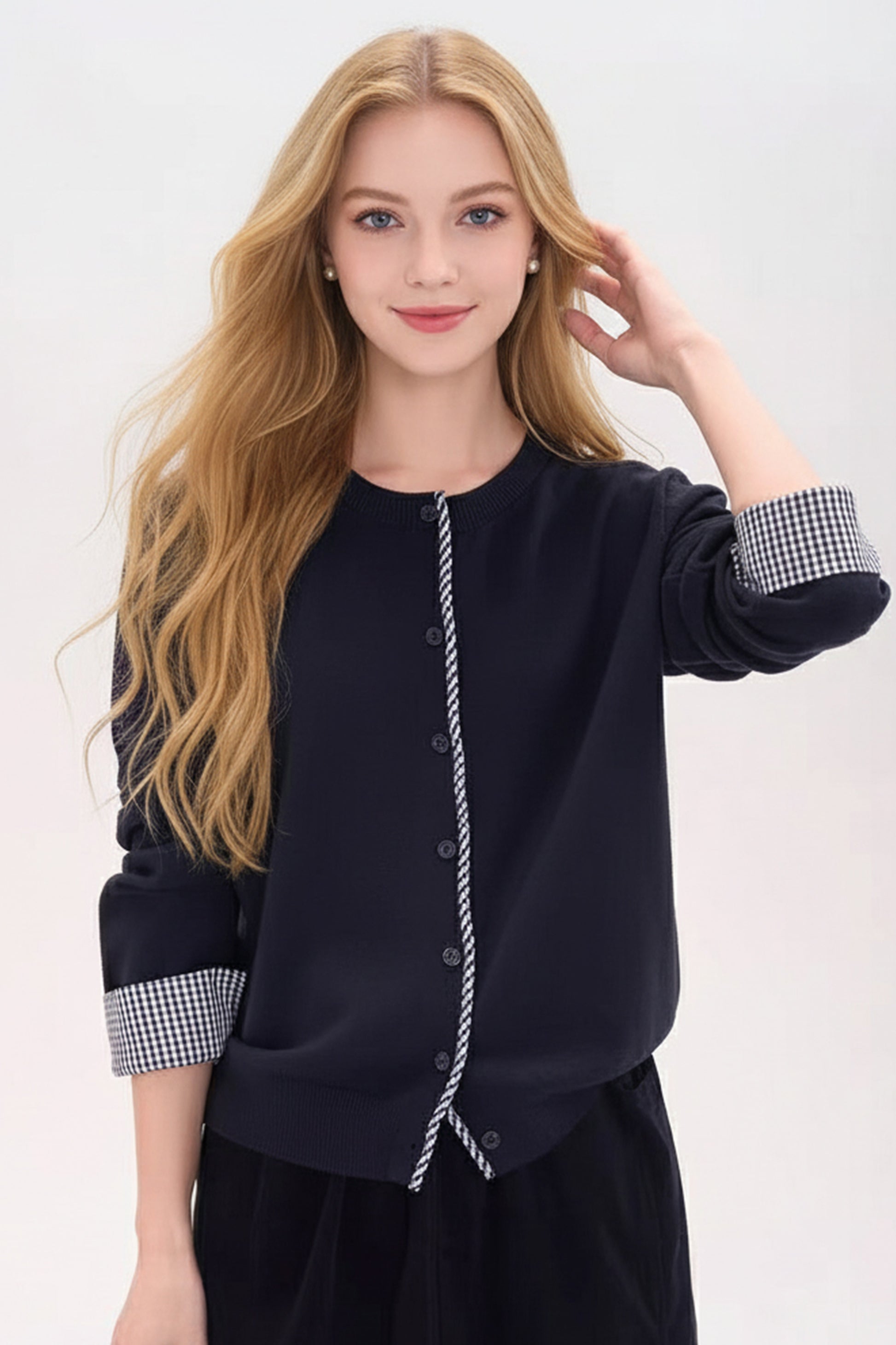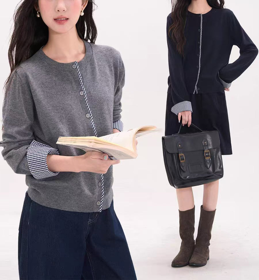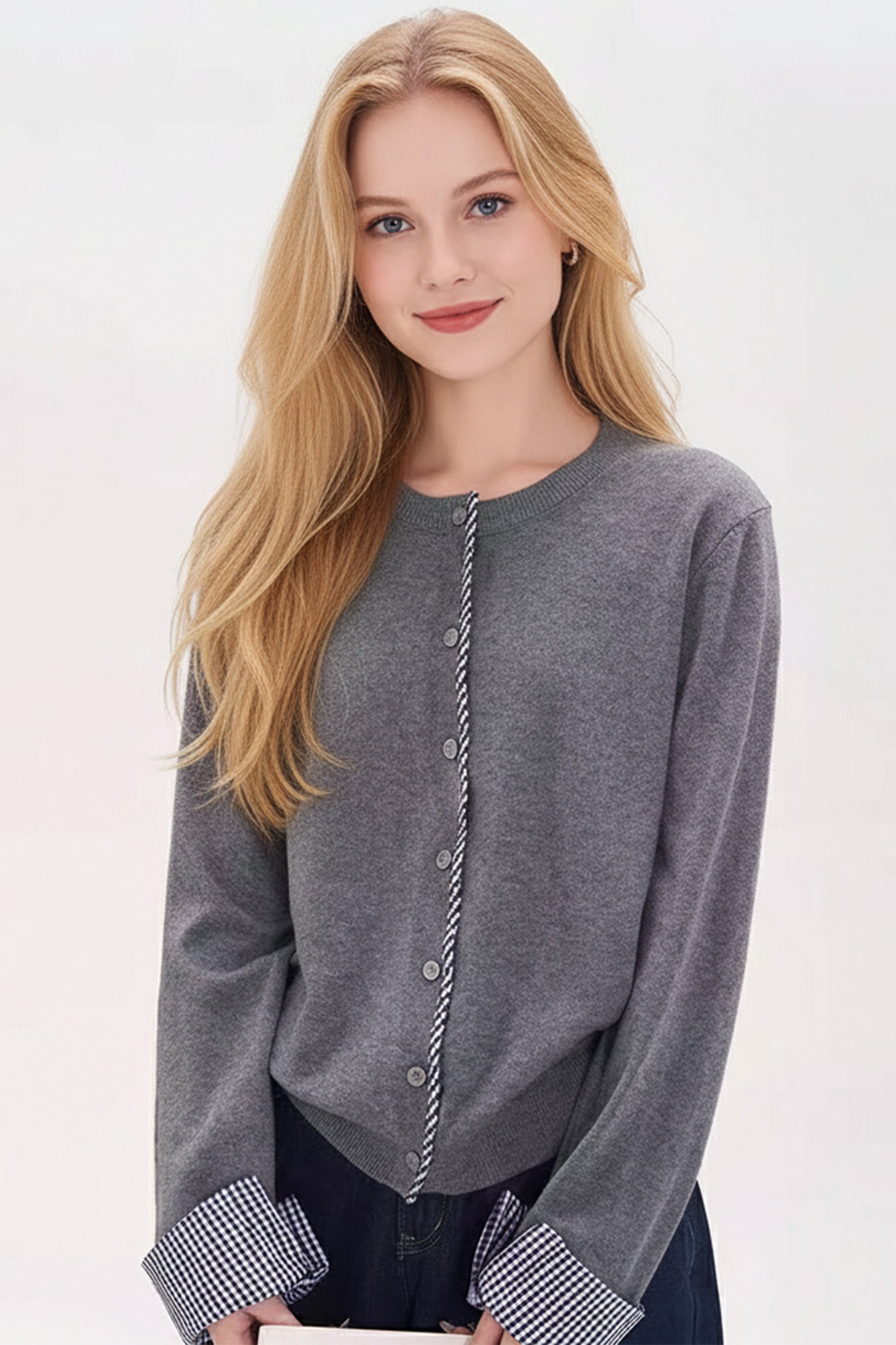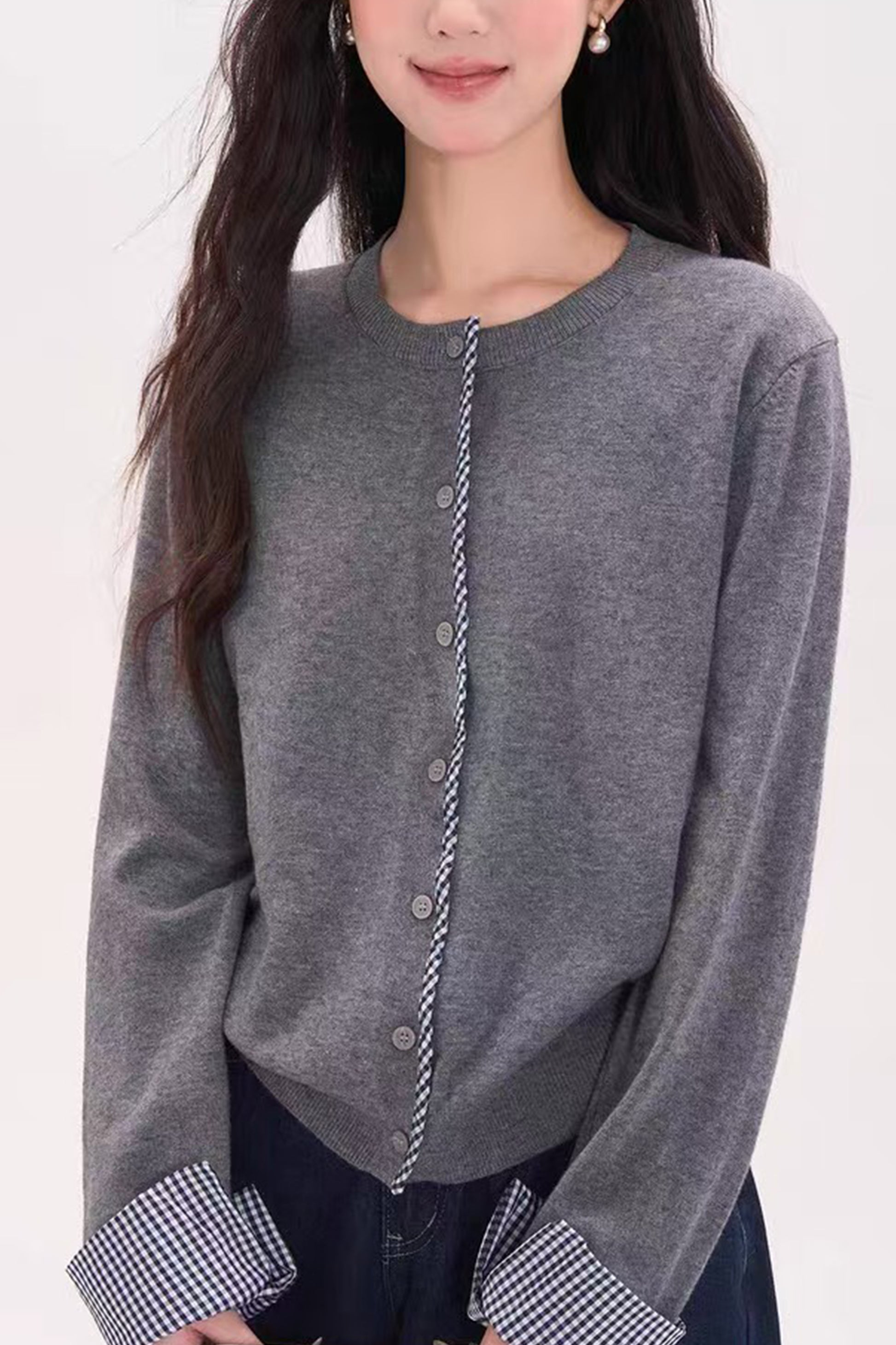 - Feature: Crewneck,plaid detail design,Button Down,long sleeves,ribbed bottom hemline and neck,solid color,cropped cardigan for women,lightweight cardigan sweater,warmth and comfy knit sweater tops.
