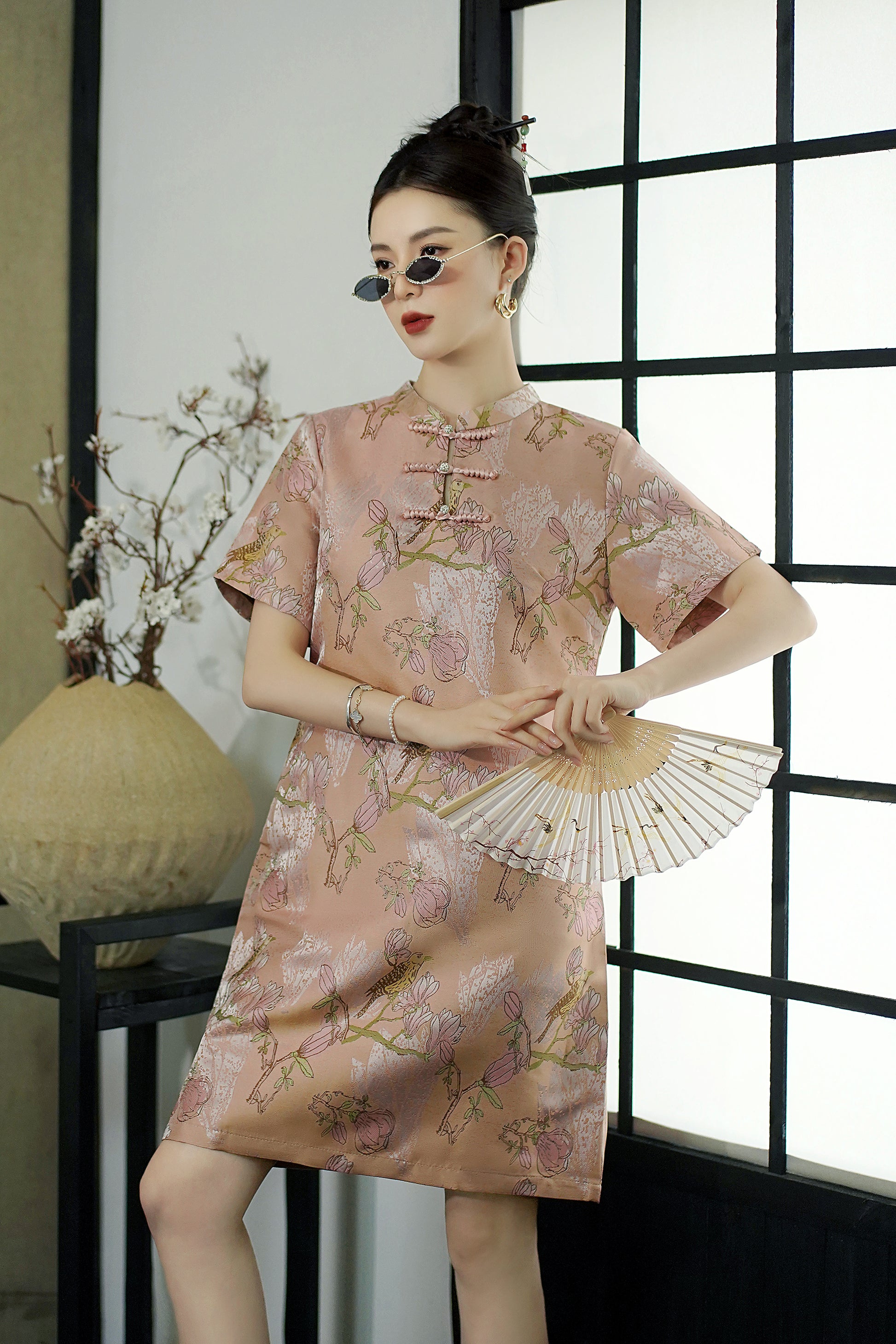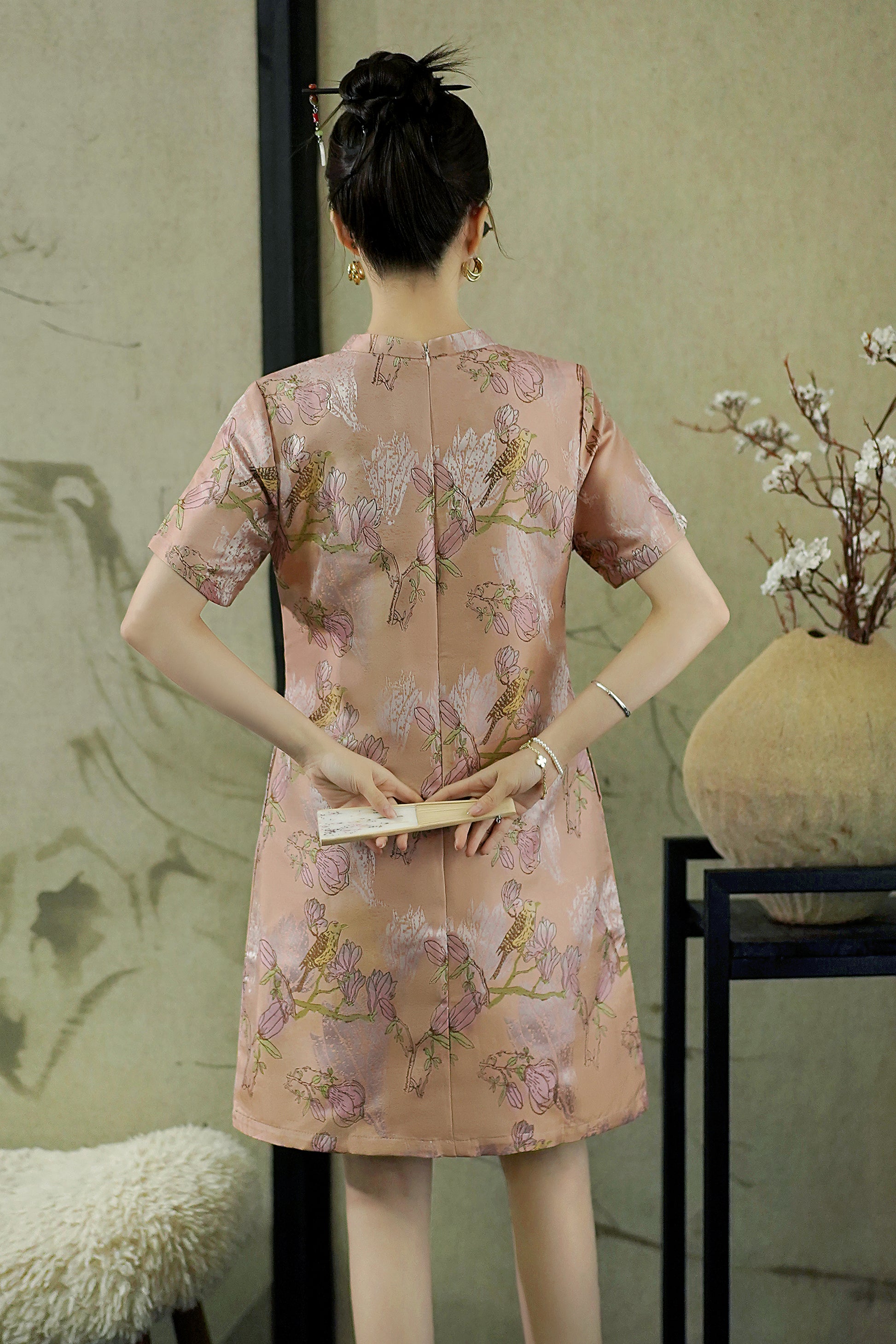 Women's Chinese Cheongsam Print Side Slit Mini Dress