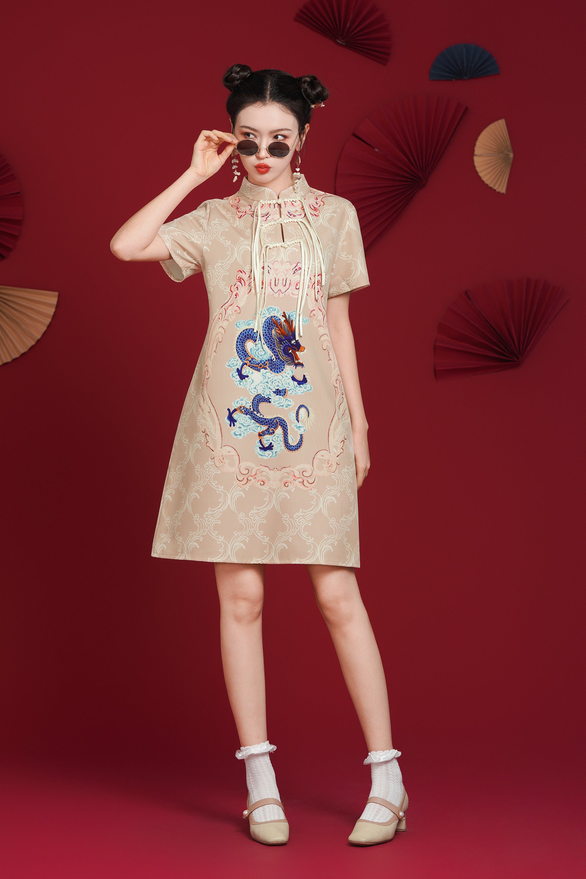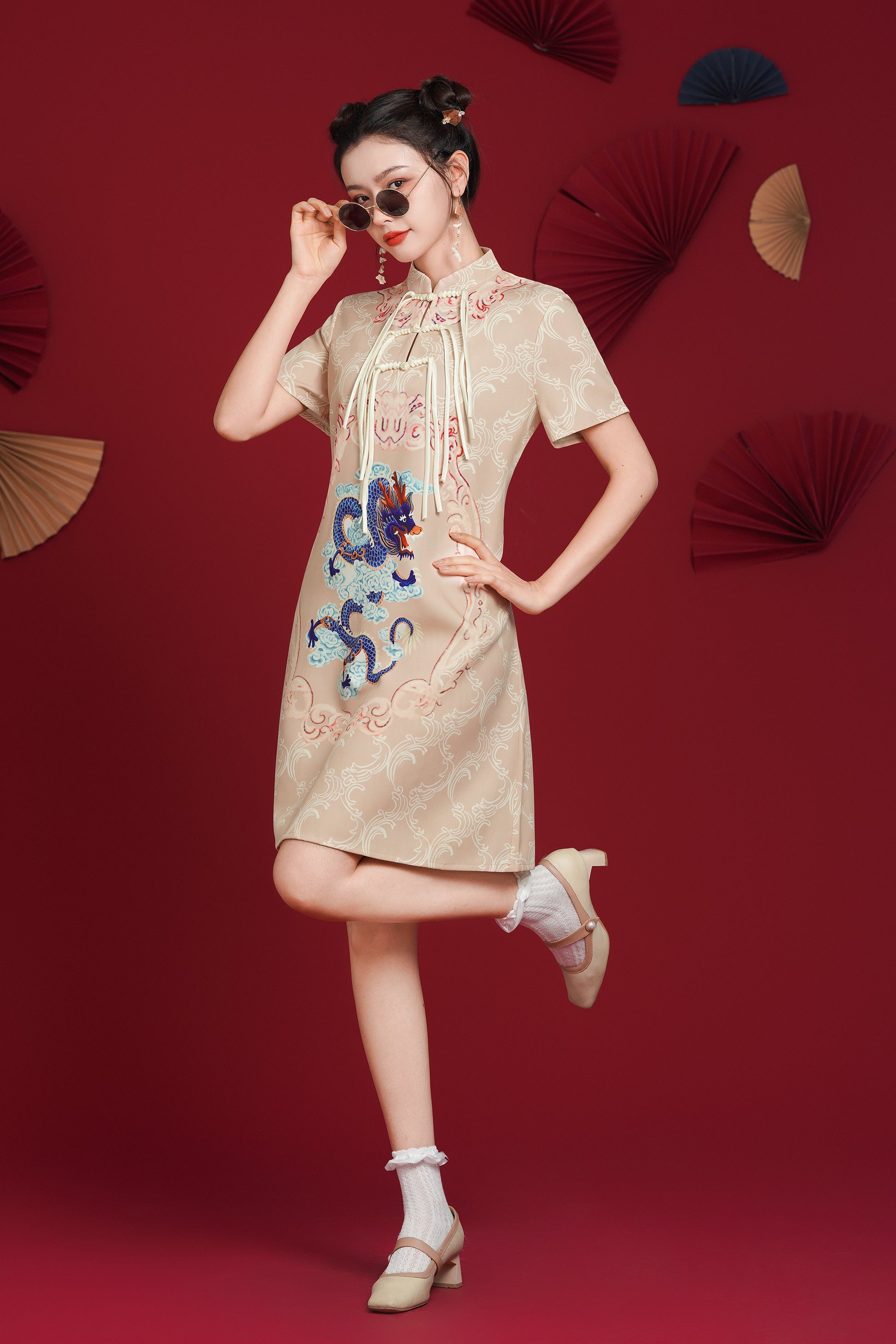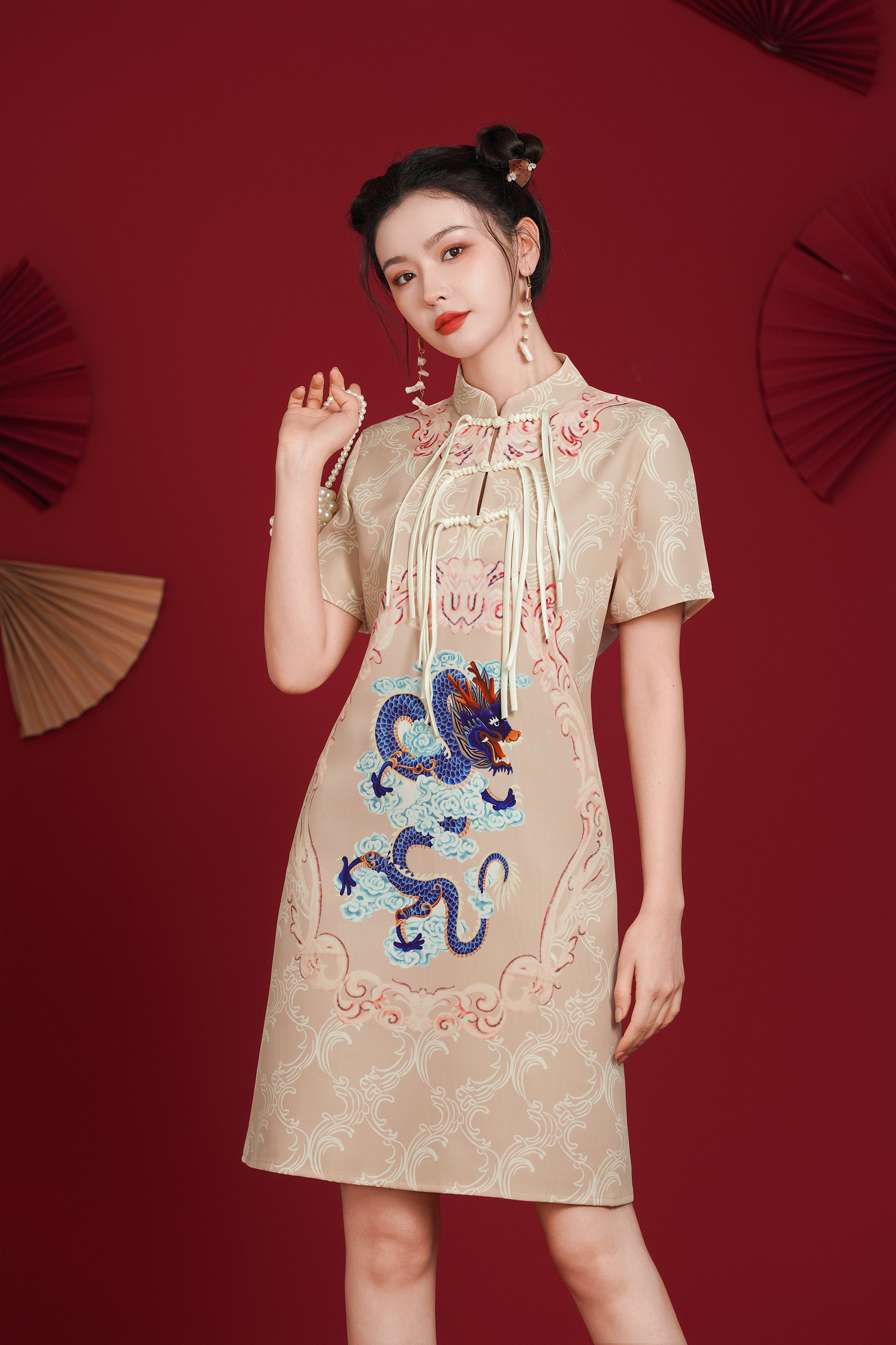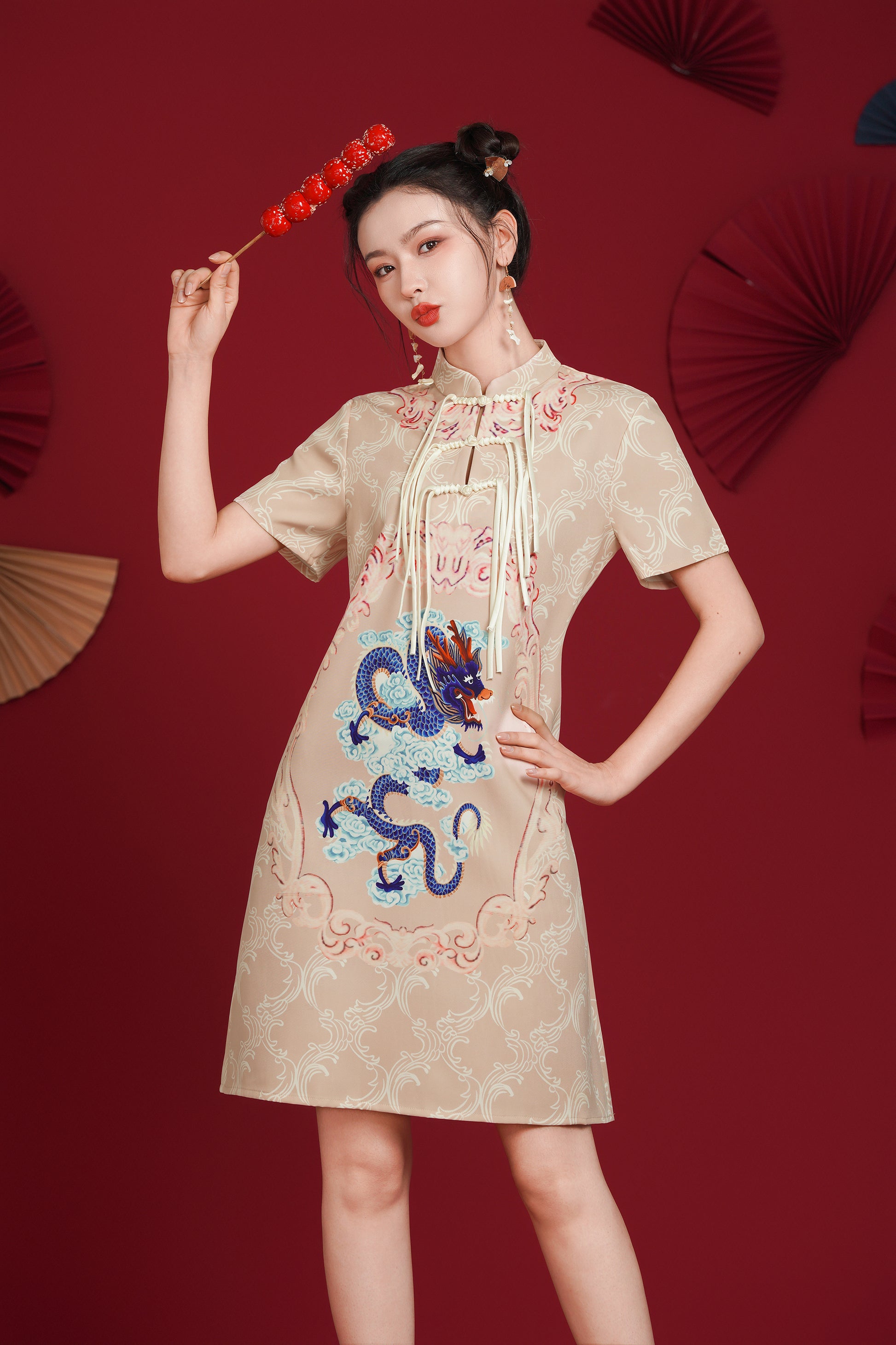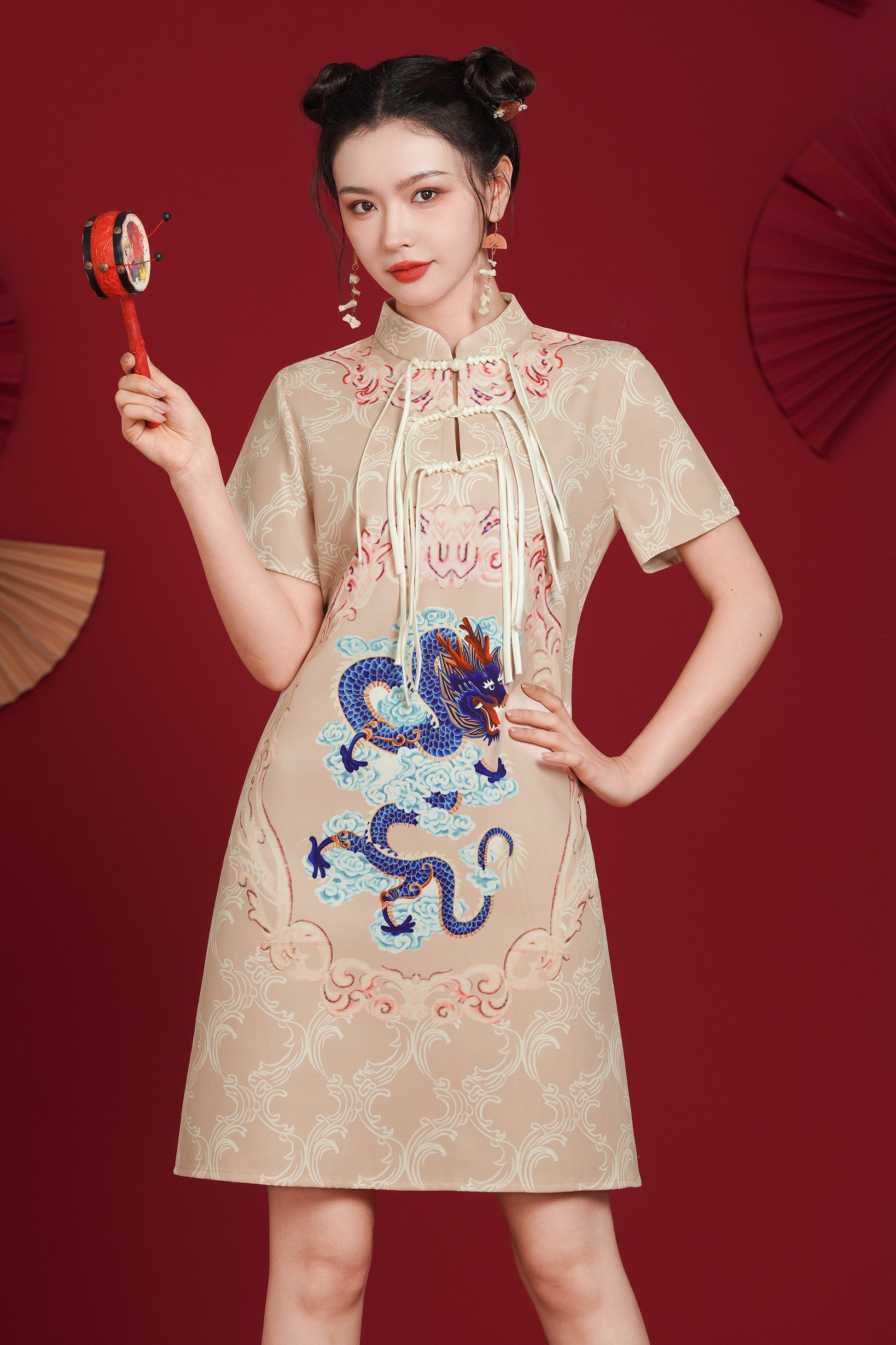 • Features: Chinese cheongsam retro dress, simple design, button closure, stand-up collar, short sleeves, slit hem, slim cut, back zipper closure, retro Chinese style. The fabric is comfortable and breathable, the gorgeous appearance is generous and decent, and it easily outlines the perfect curve. Suitable for most women.
