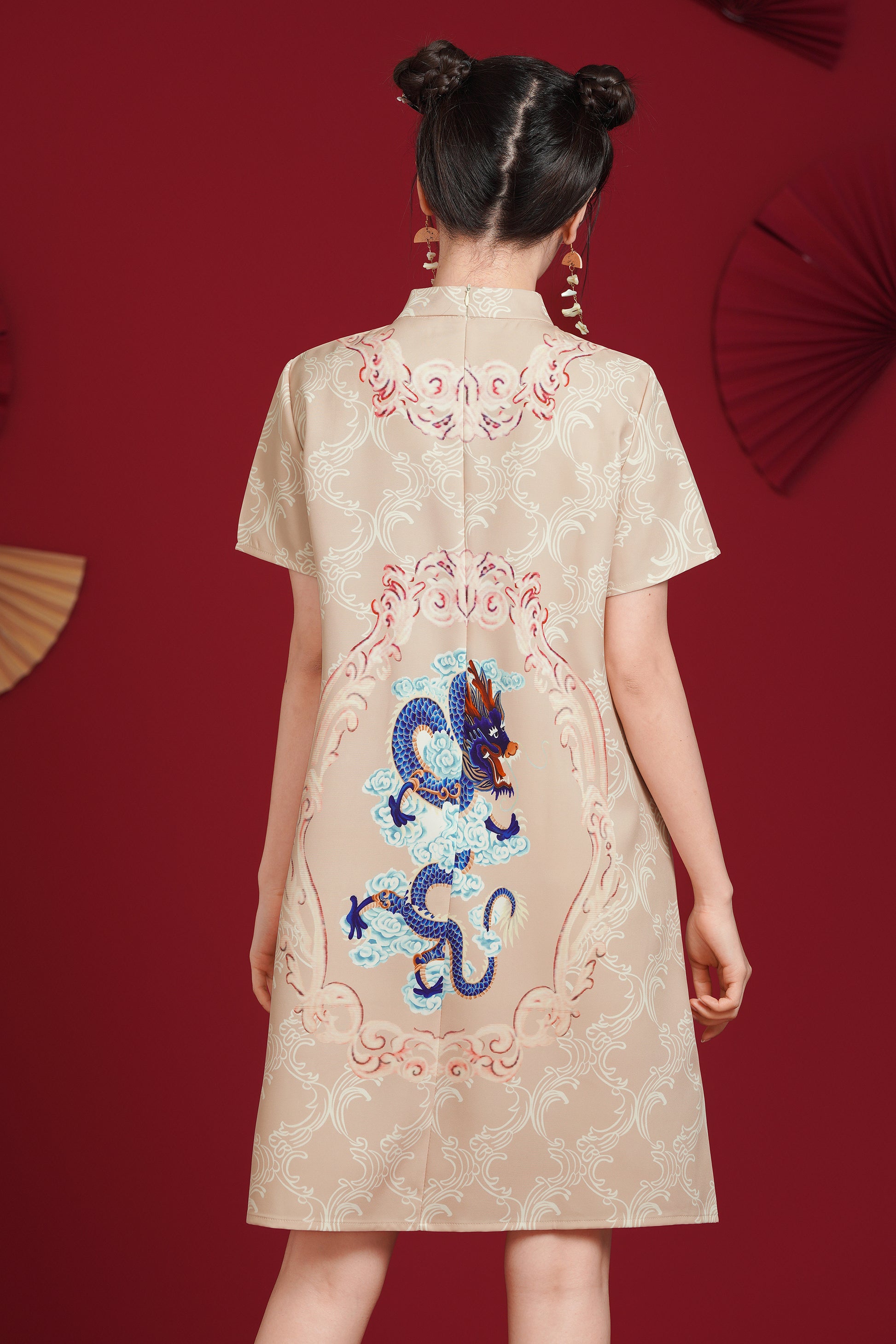 Women's Chinese Cheongsam Print Side Slit Mini Dress