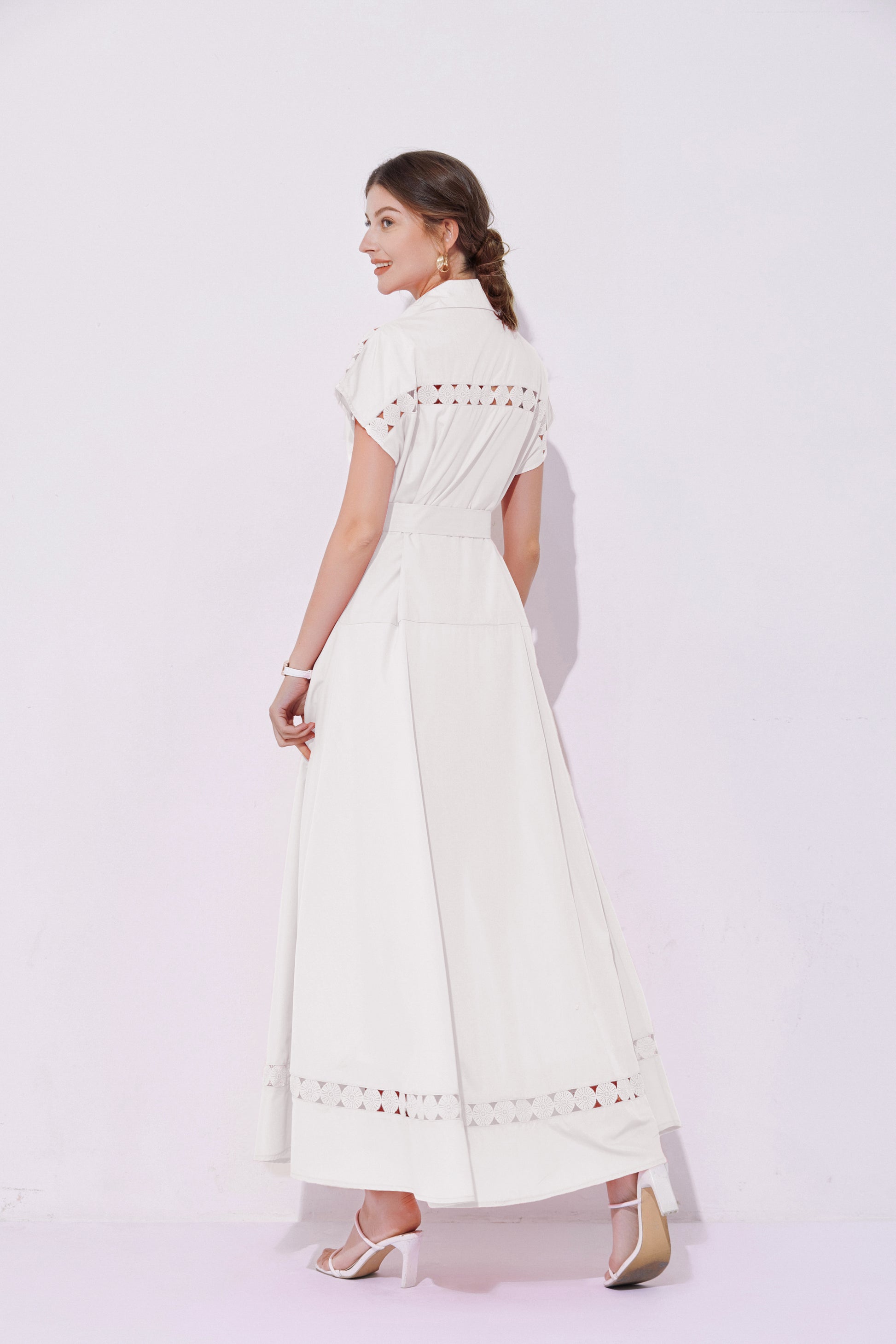 Women's Collar Hollow Cap Sleeve Maxi Dress