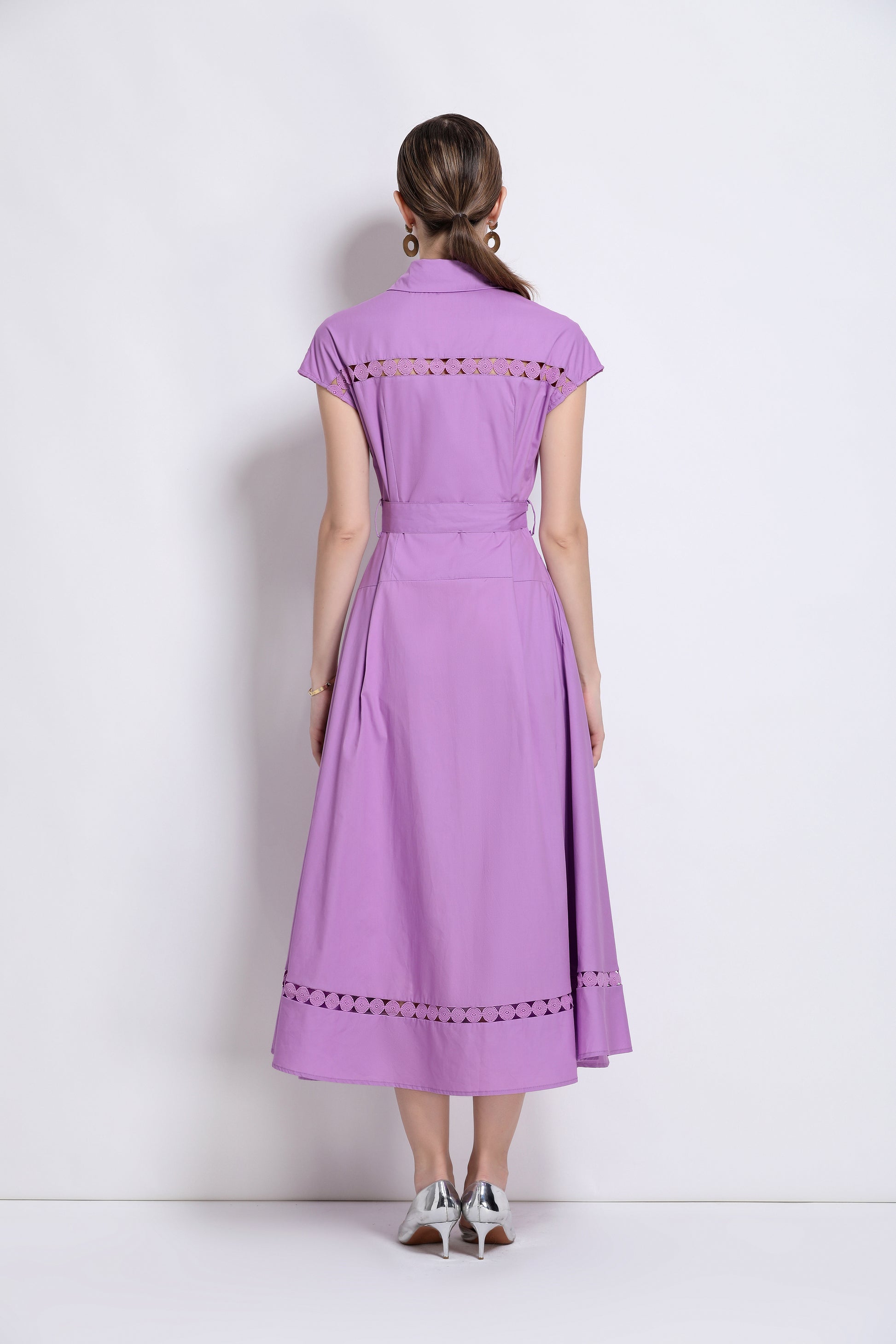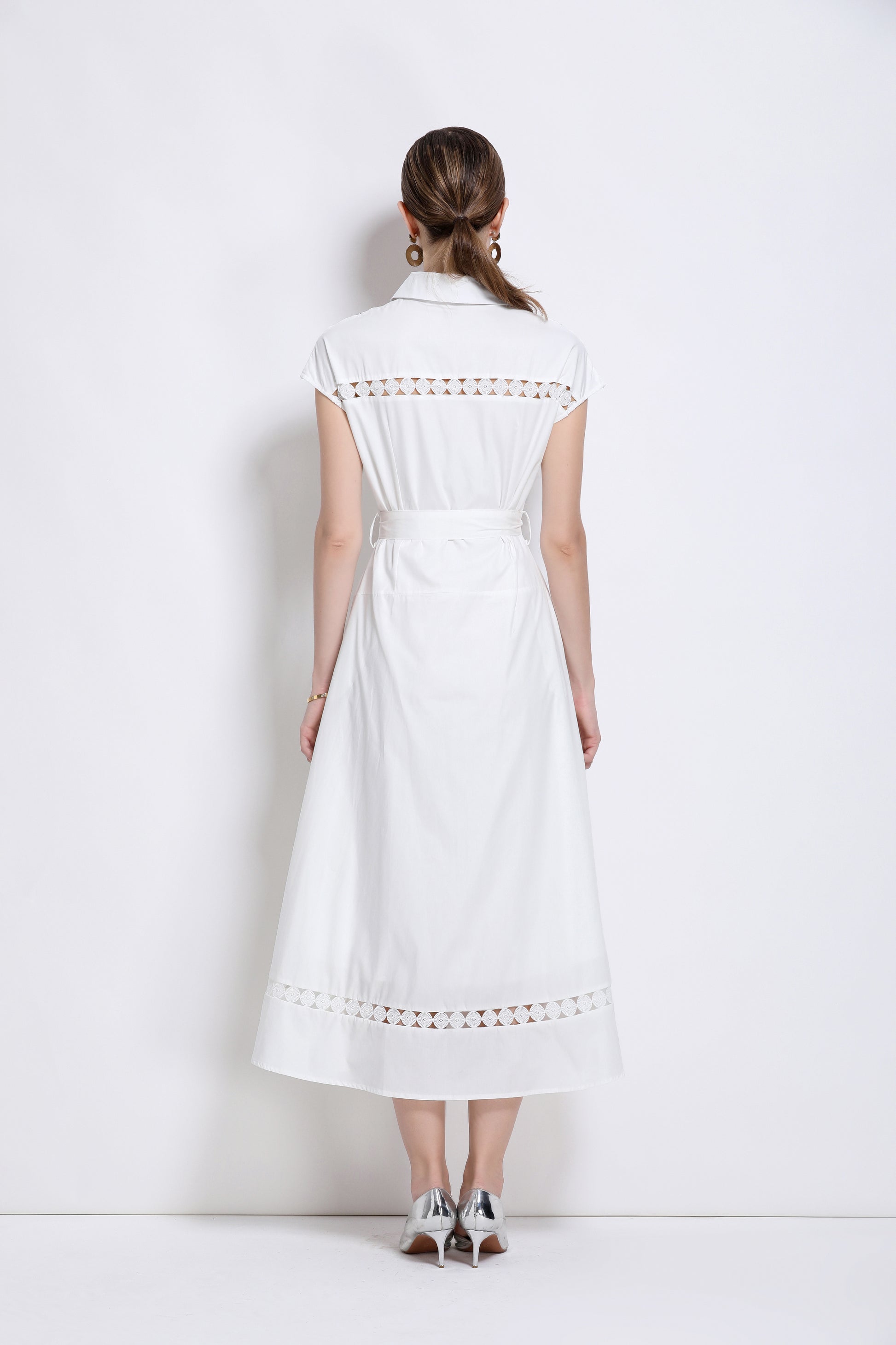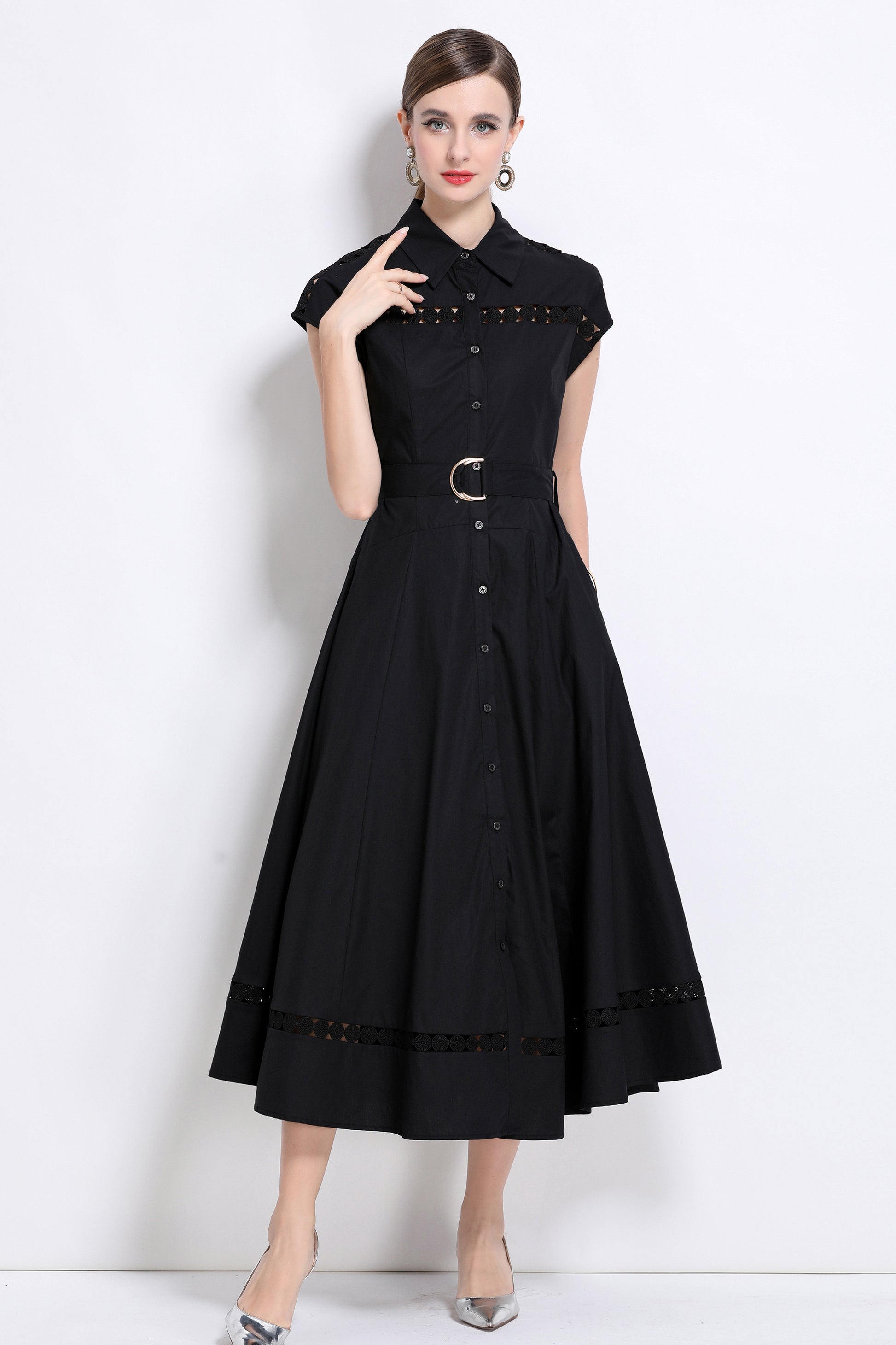 Women's Collar Hollow Cap Sleeve Midi Dress