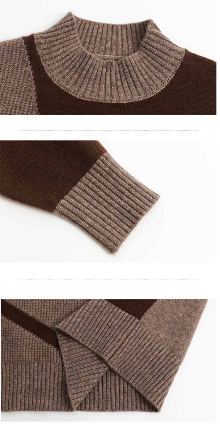 - Features: High collars, ribbed knit sweaters, base layers, fashion color block patchwork, long sleeve sweater,pullover sweater tops,fashion sweater.The unique color block patchwork design makes this sweater look very fashionable and eye-catching.