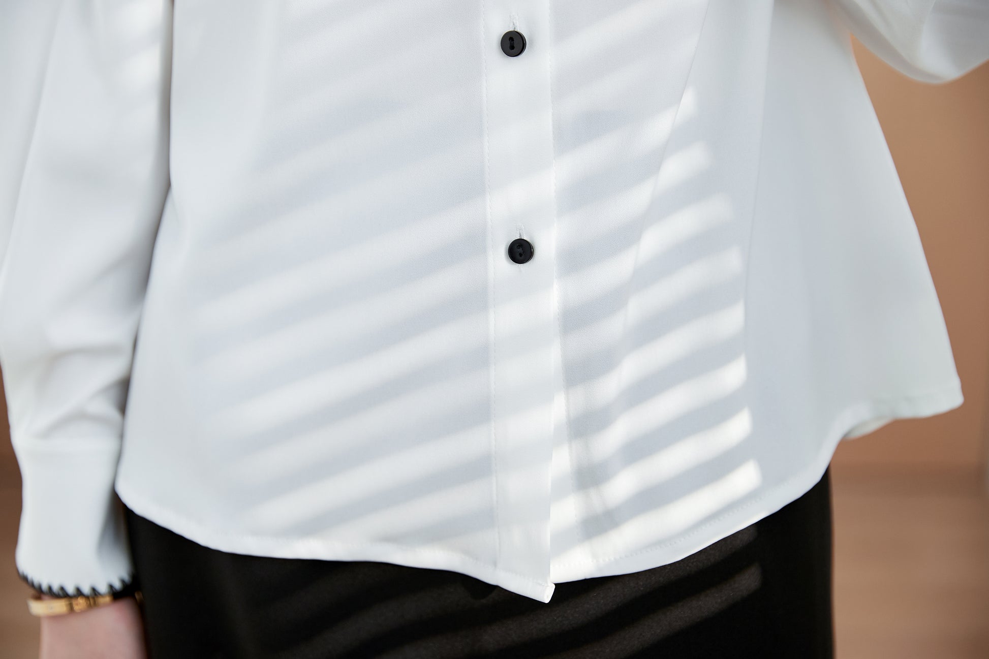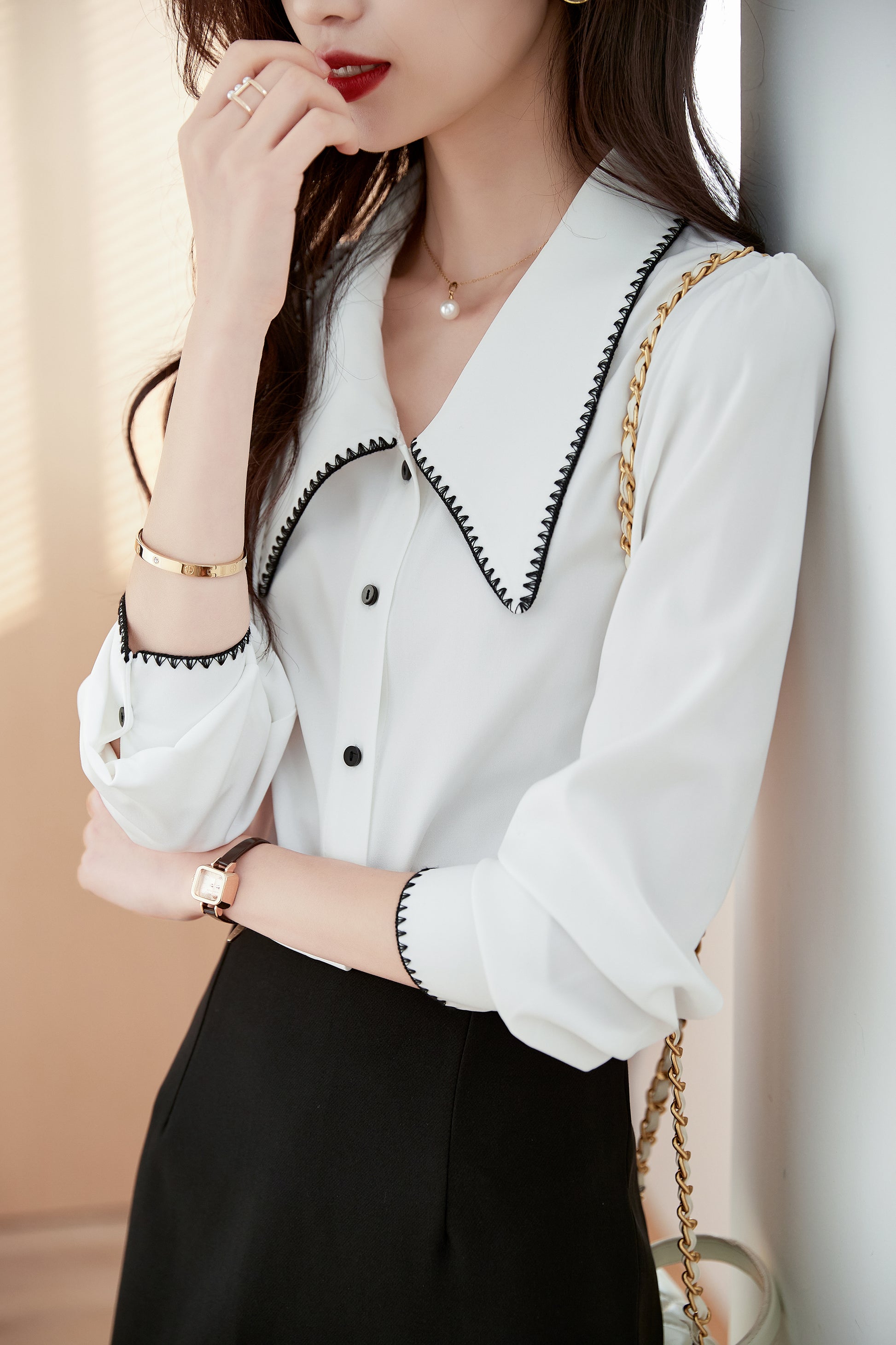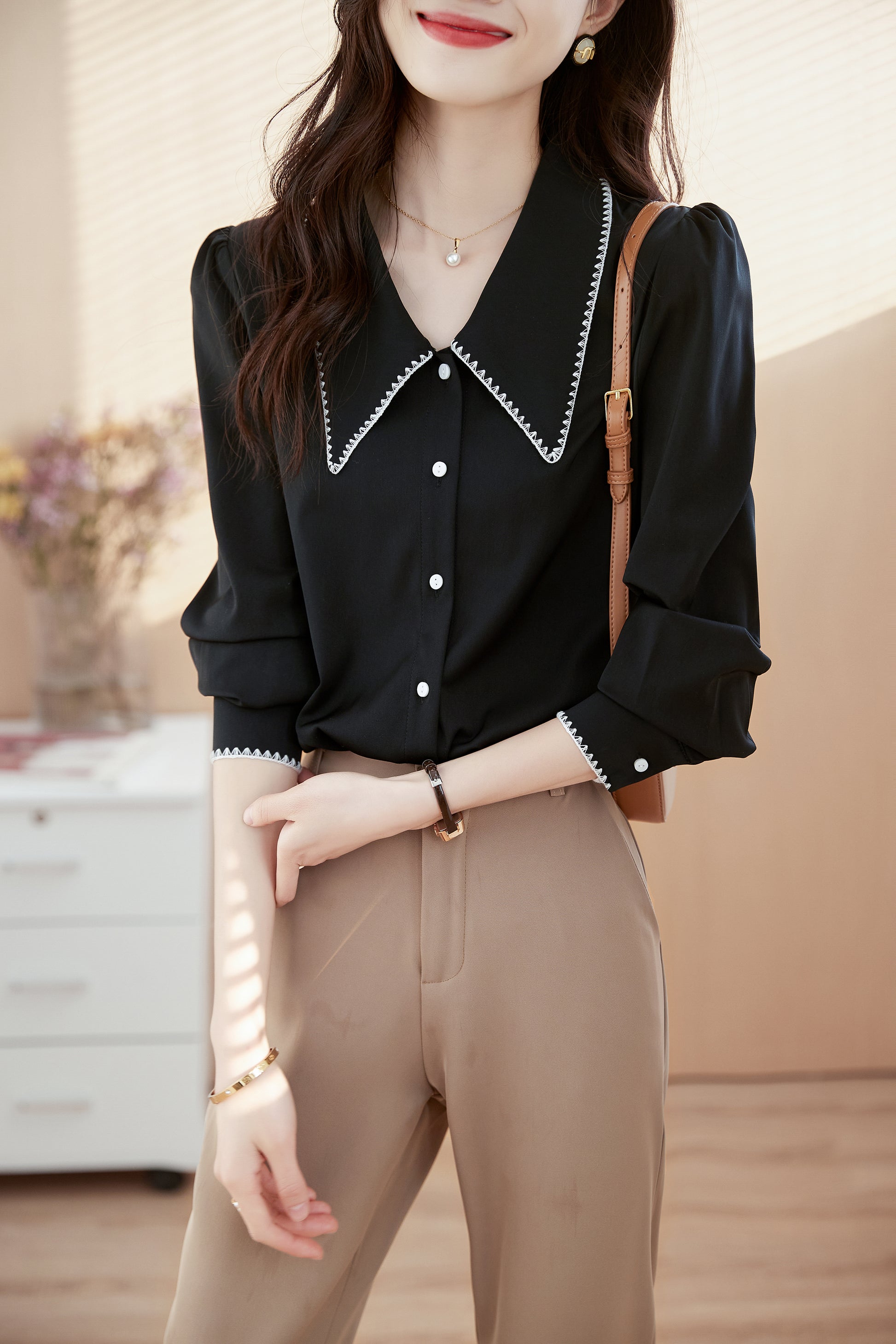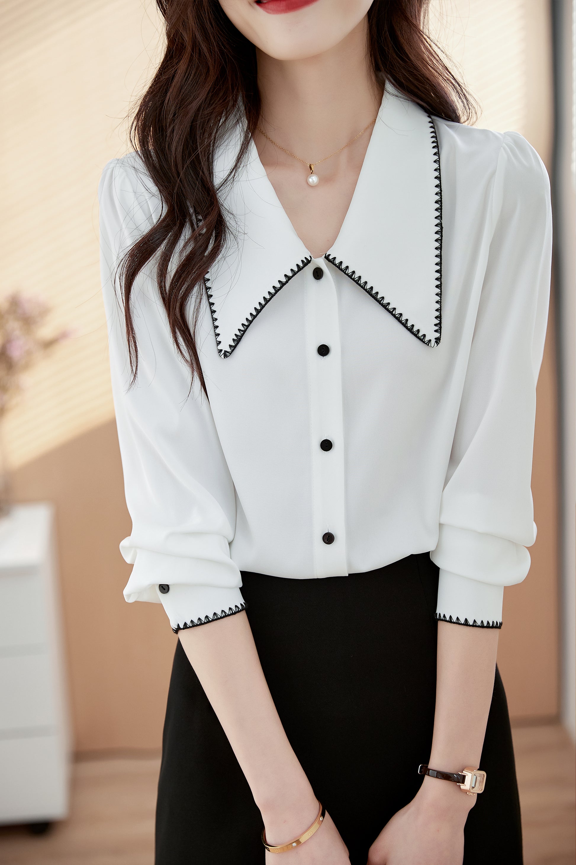 - 【Feature】V-neck,long lantern sleeves,Button front fastening,Contrast color design,2024 cute shirt tops.
