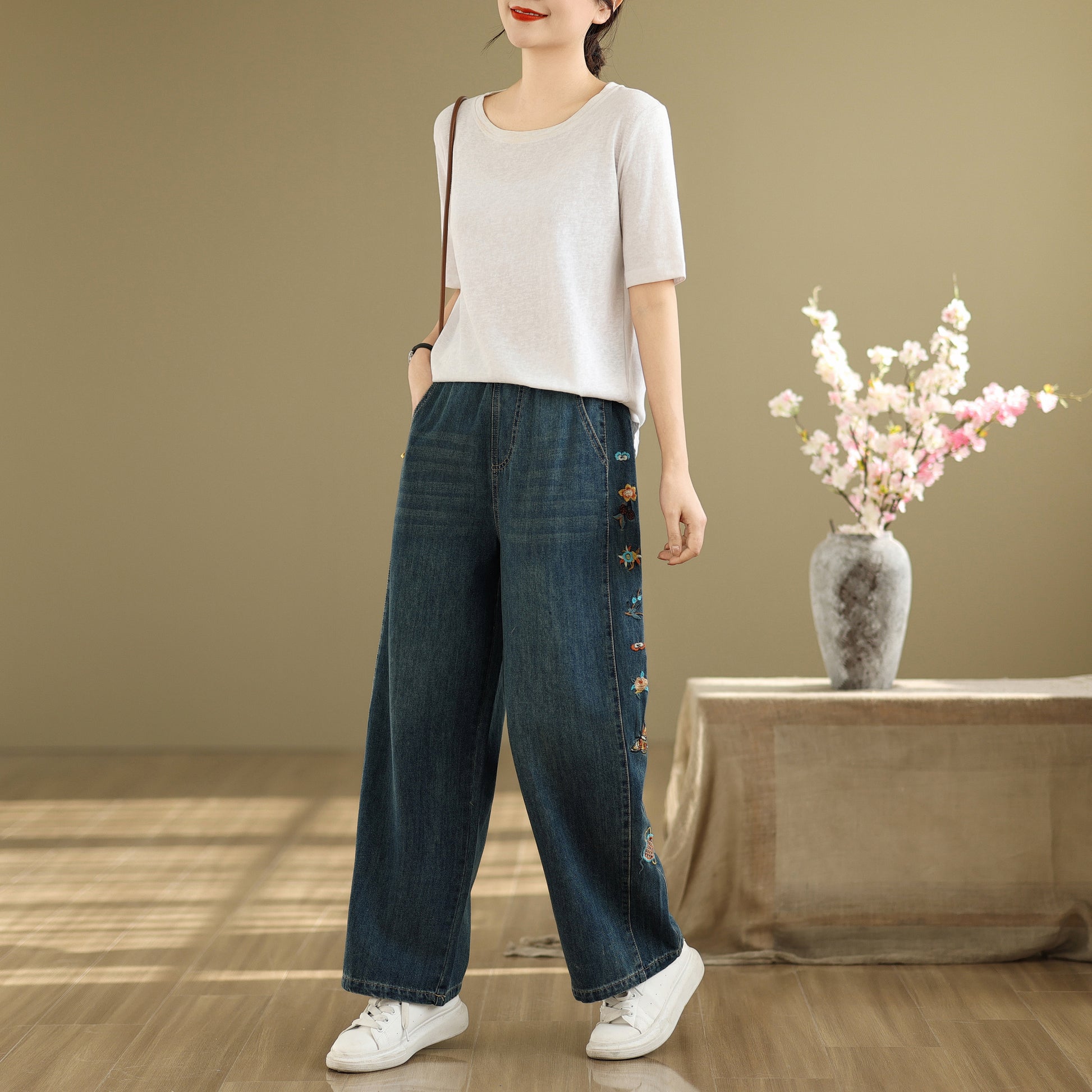 • Features: Elastic Waist,denim,Side Pockets;Casual Wide leg,knee length pants, classic denim,hip-hop,Casual loose fit.