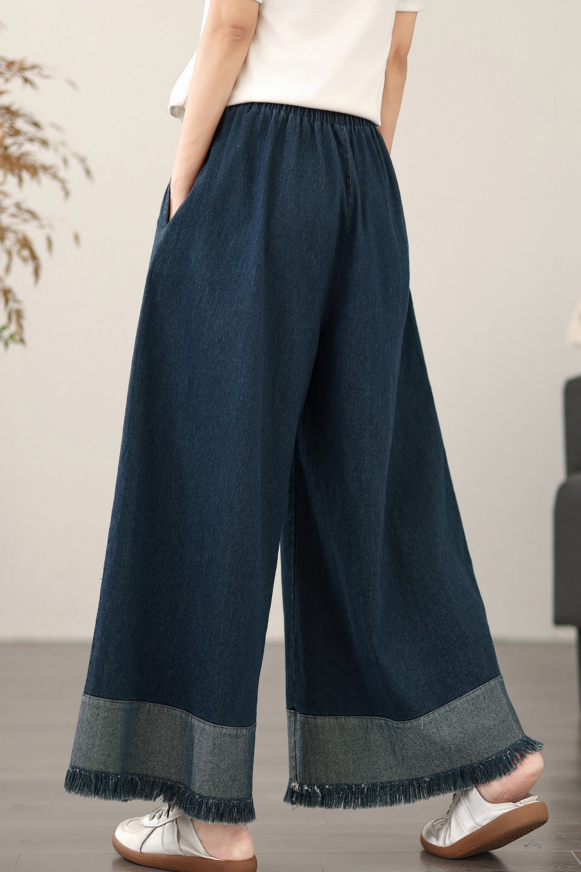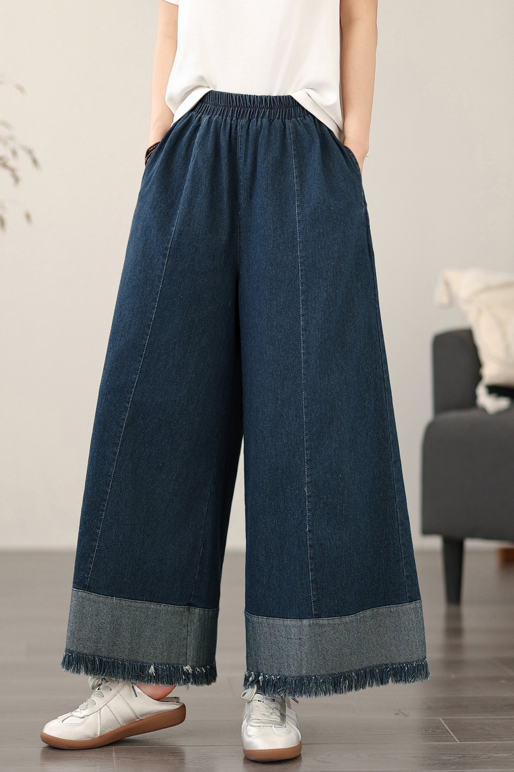 • Features: Fashion jeans,Casual loose,Elastic waisted, denim, Wide Leg, Classic denim, flared, Double pockets. If you love wide-leg baggy jeans, this is definitely the best choice for you.