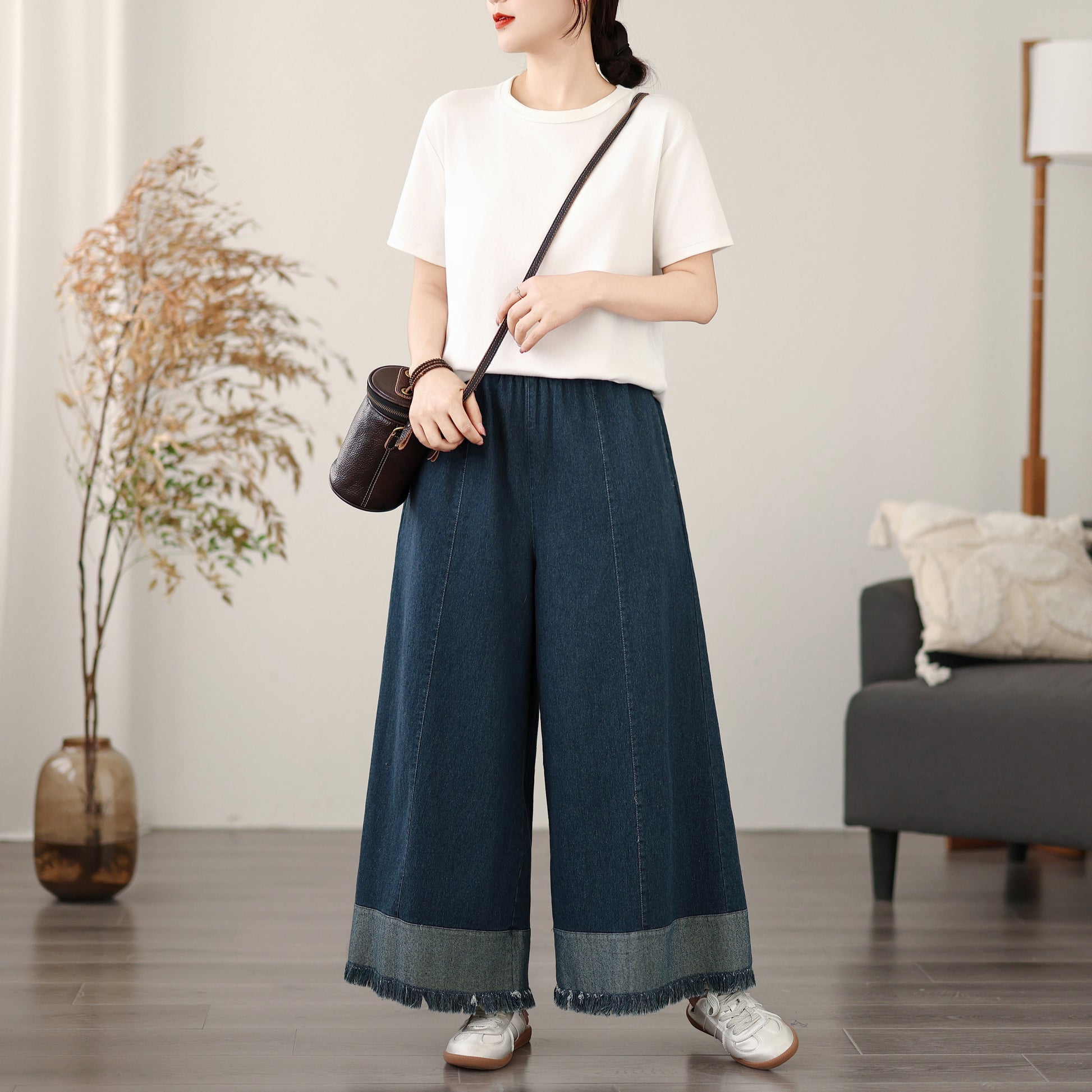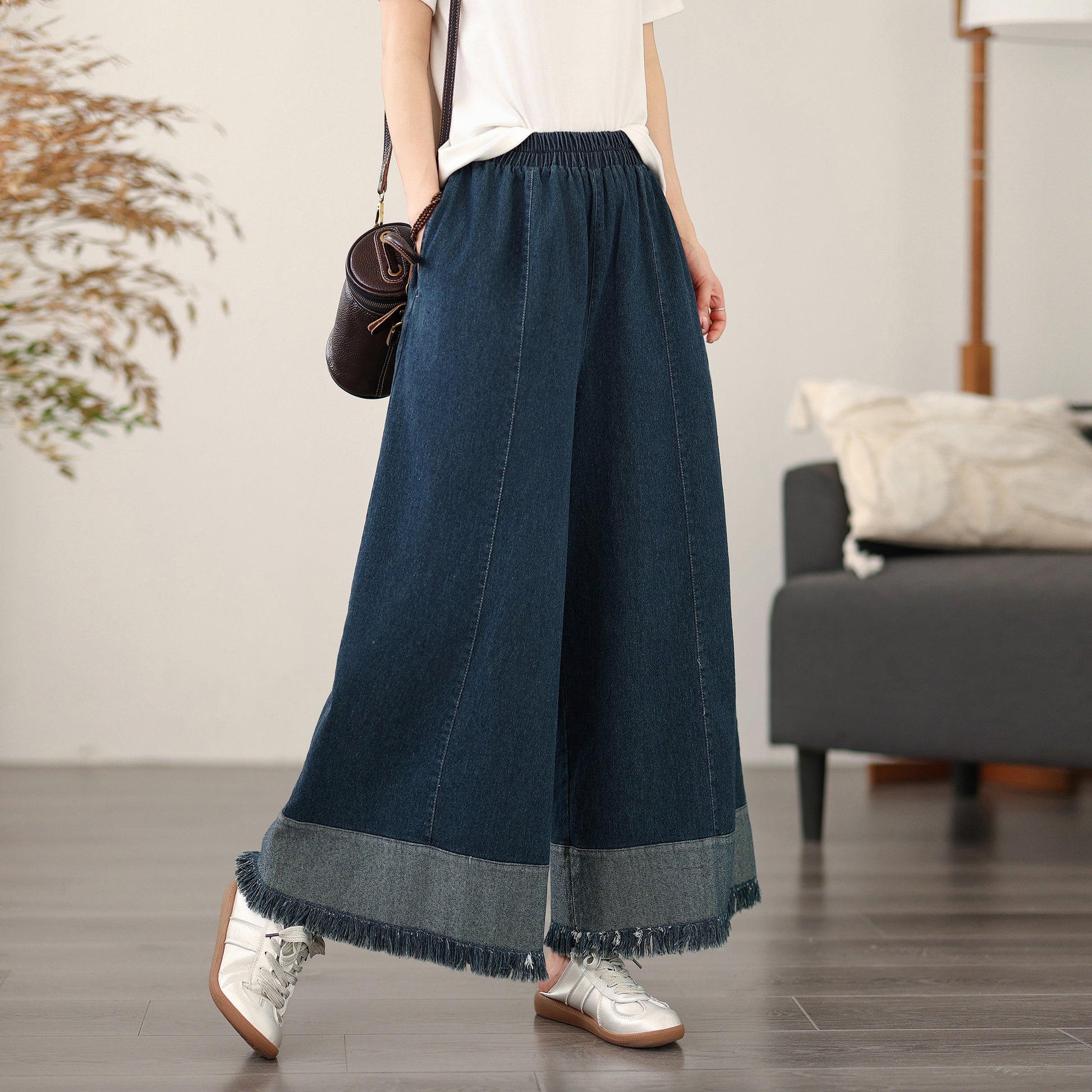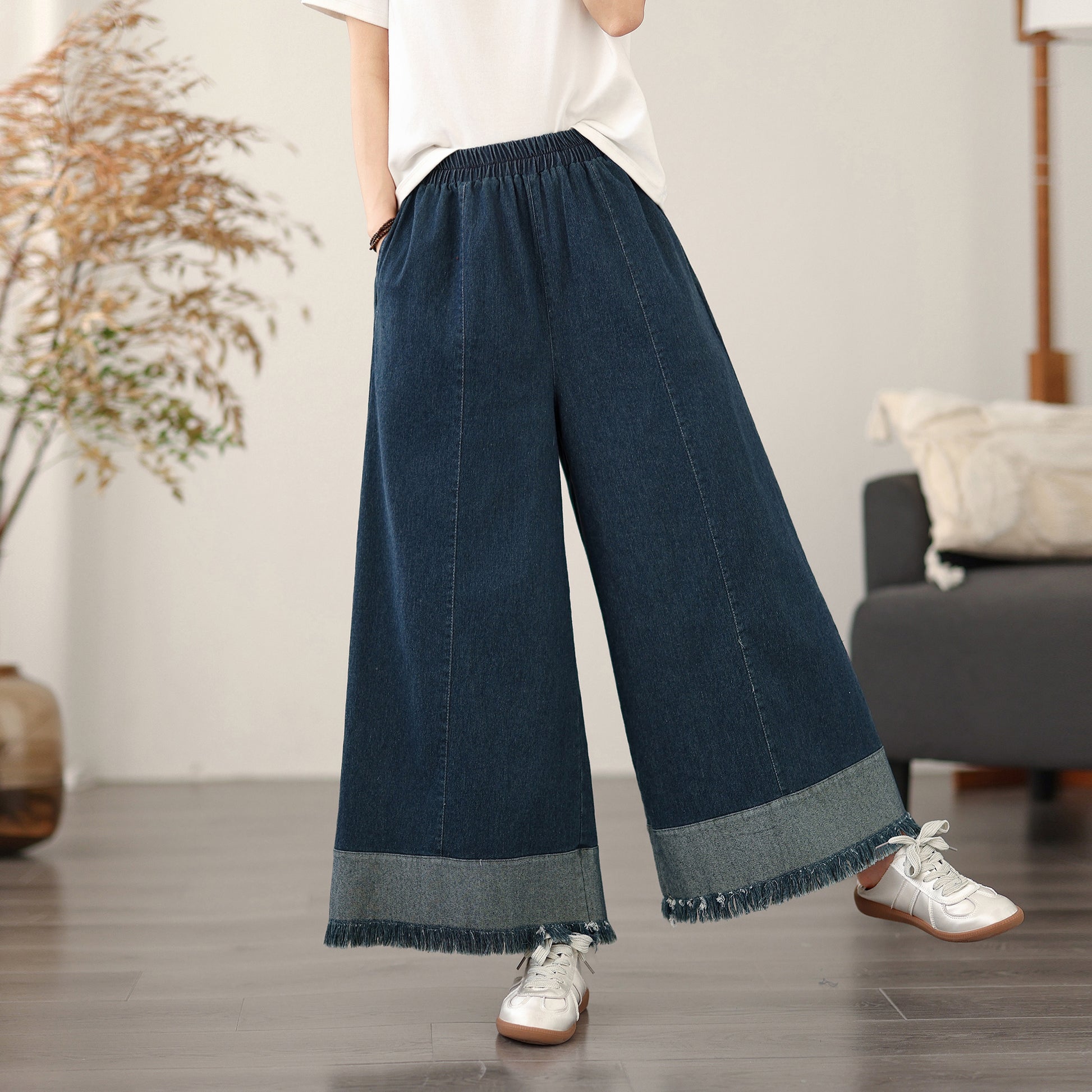 Women's Elastic Waist Wide Leg Denim Pants