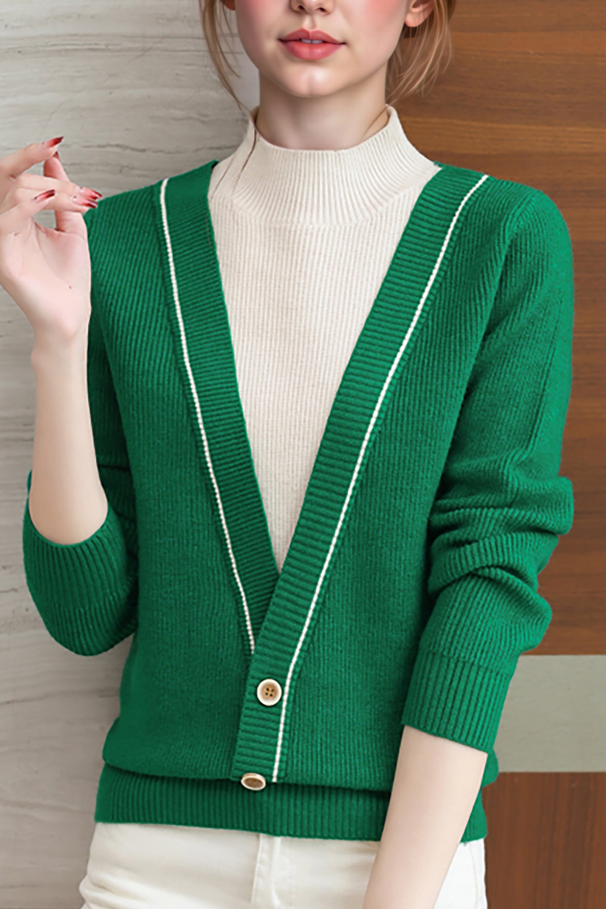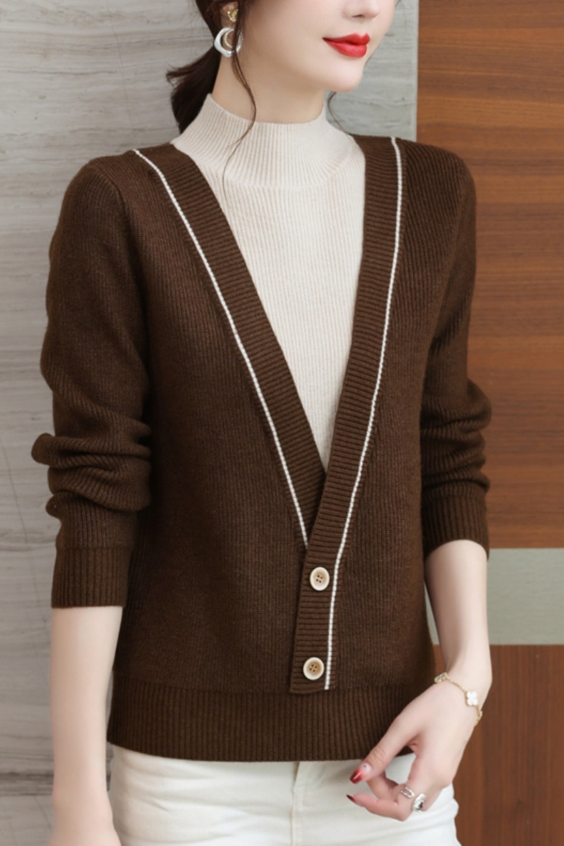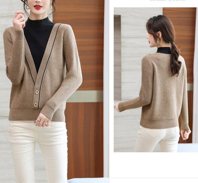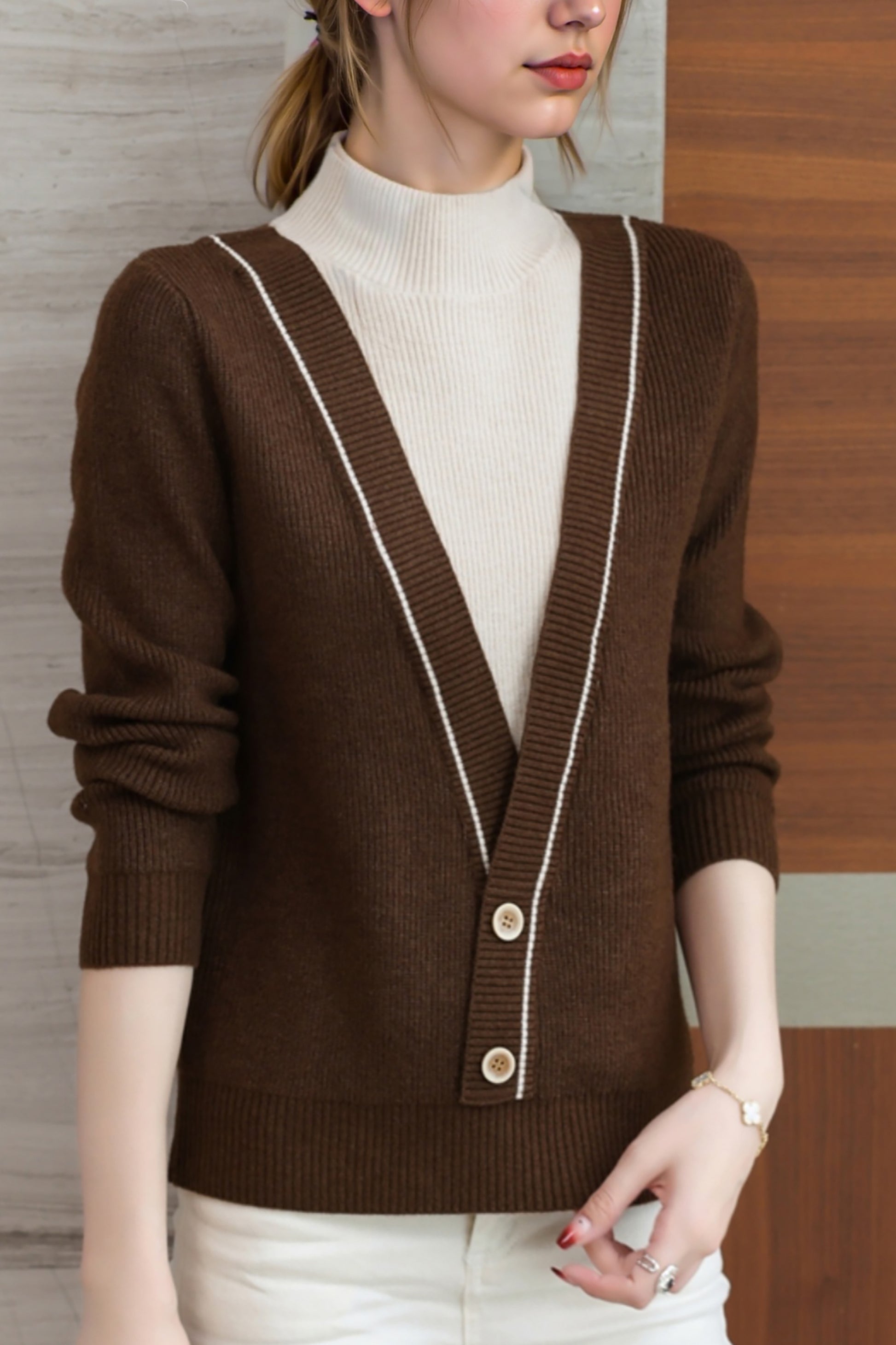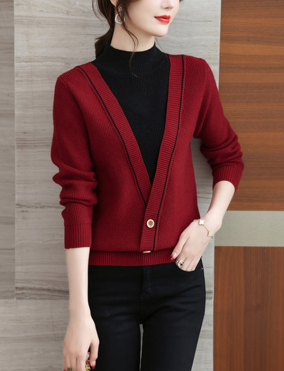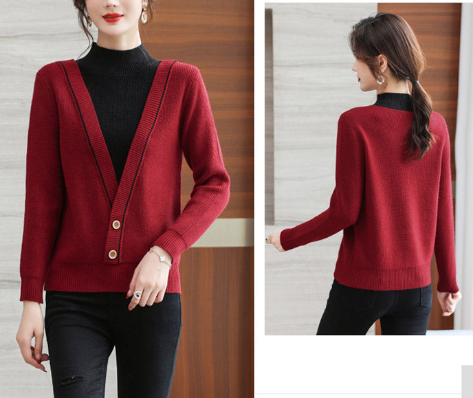 Women's Fall Turtleneck Color Block Knitted Sweater