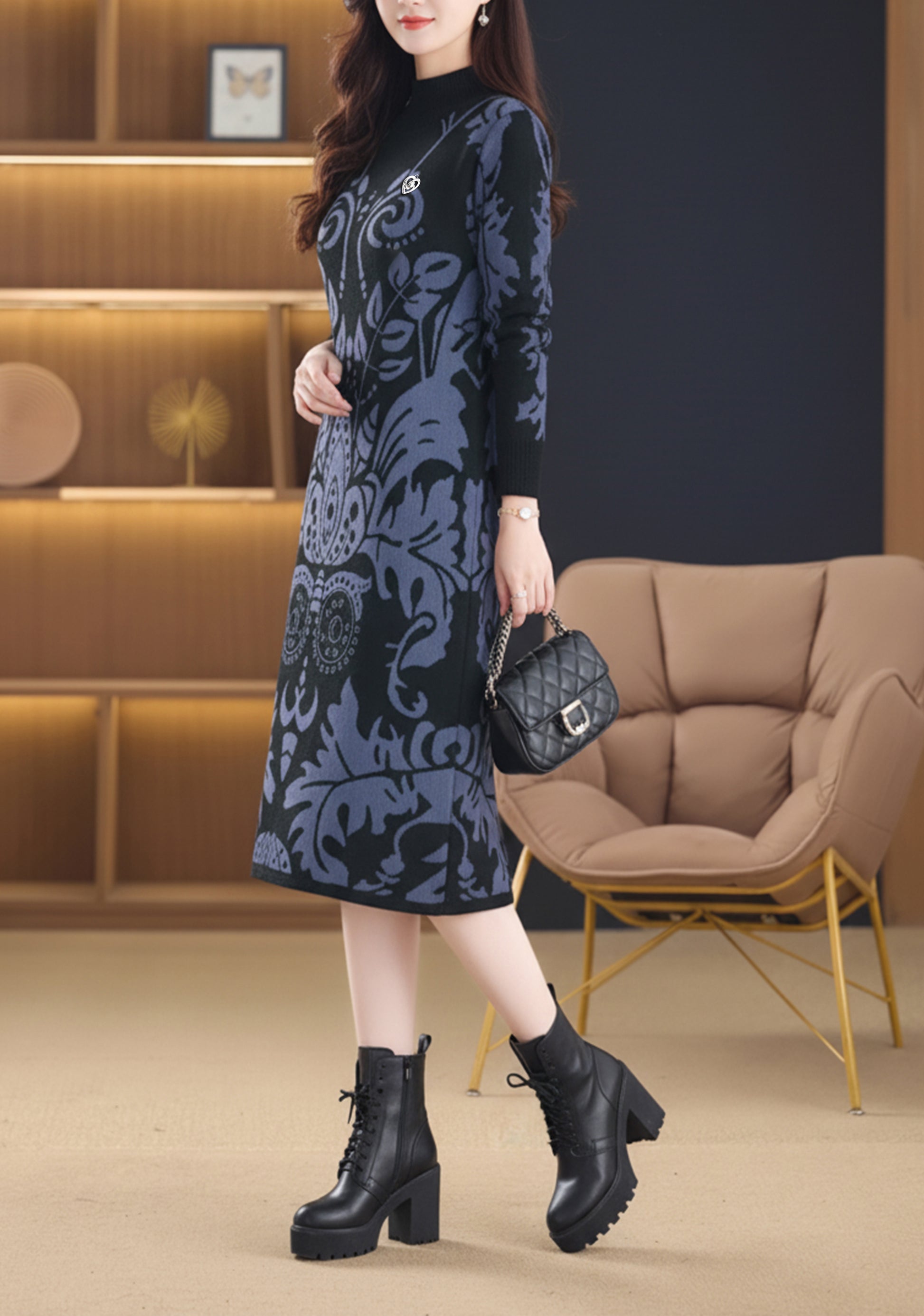 Women's Fashion Print Knit Pullover Sweater Midi Dress