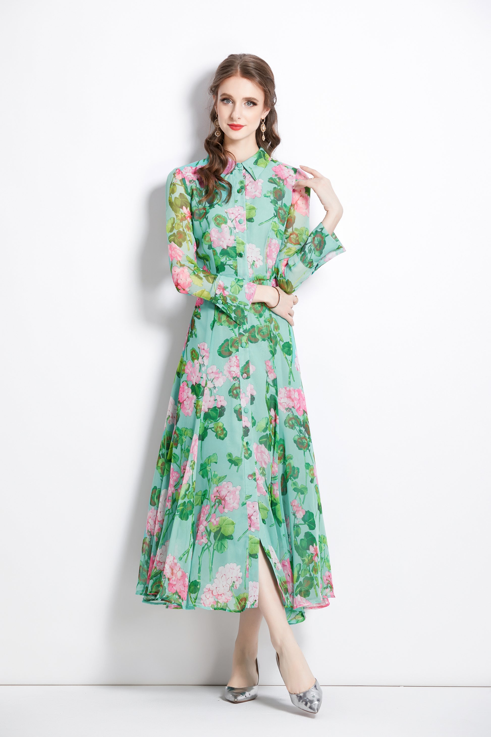 • Features:Collared neckline,With belt,Long Sleeve,Maxi length,Floral print,Button front fastening,Slit hem,A-line,flowy dresses for women.