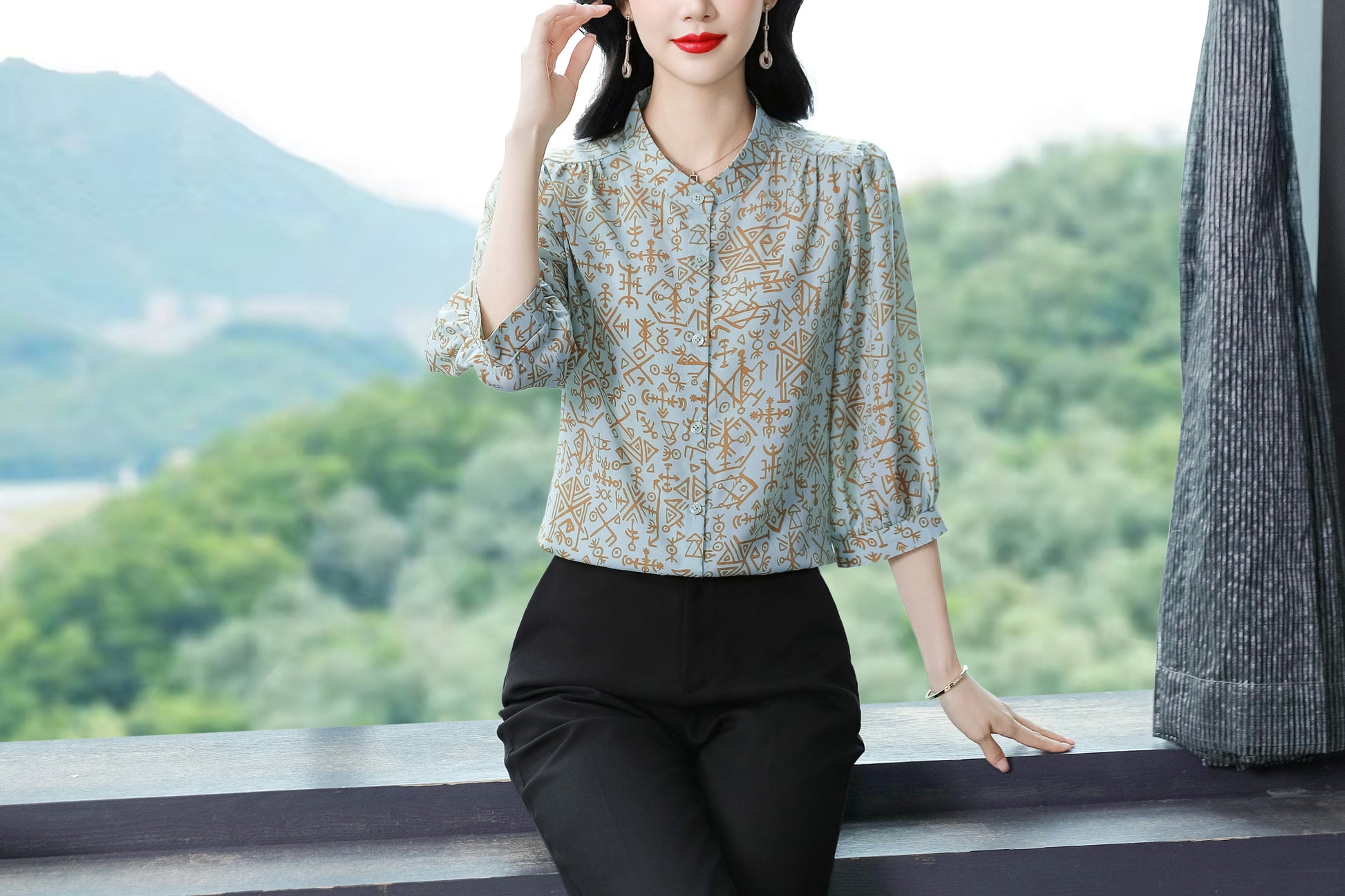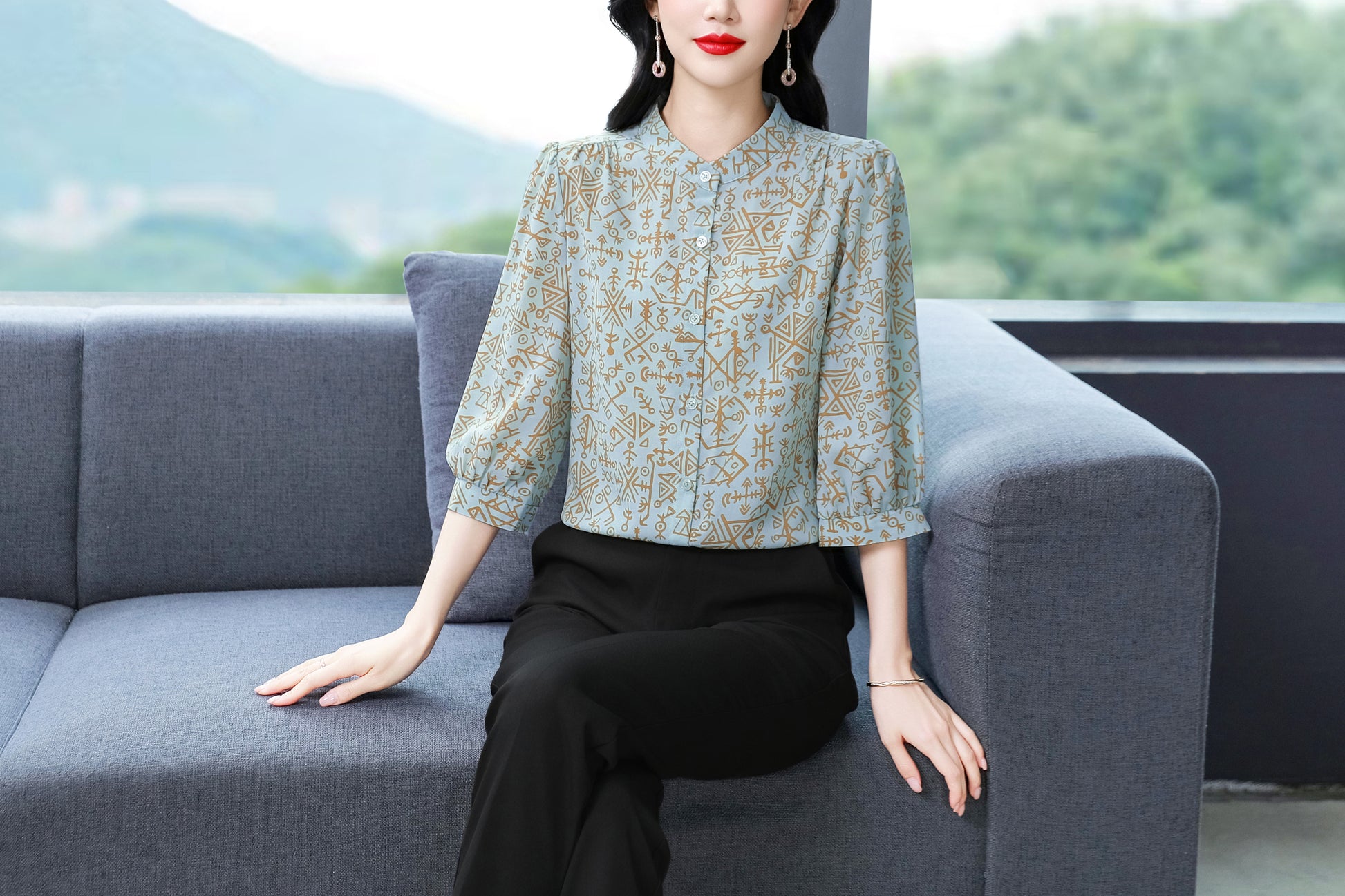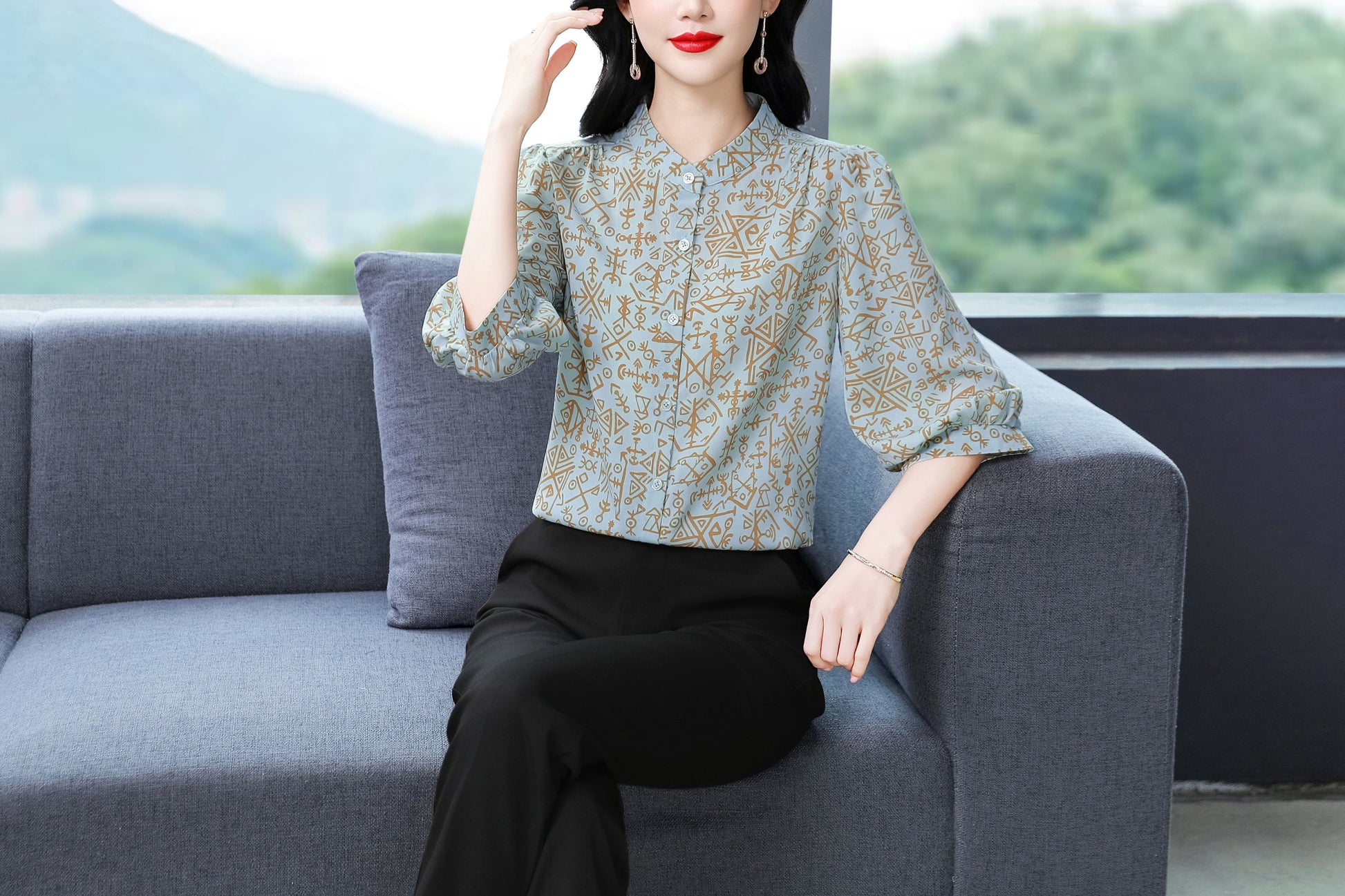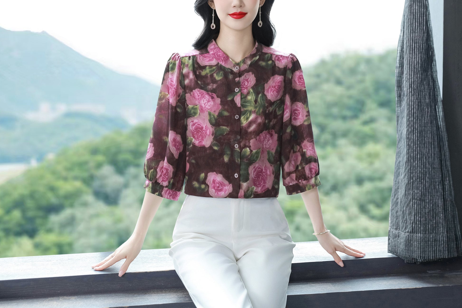 - 【Features】 Casual, Blouse Tops, Round Neck, Summer Prints, Elegant Chiffon Blouse, 3/4 Puff Sleeve tops, Chiffon shirts loose fit.