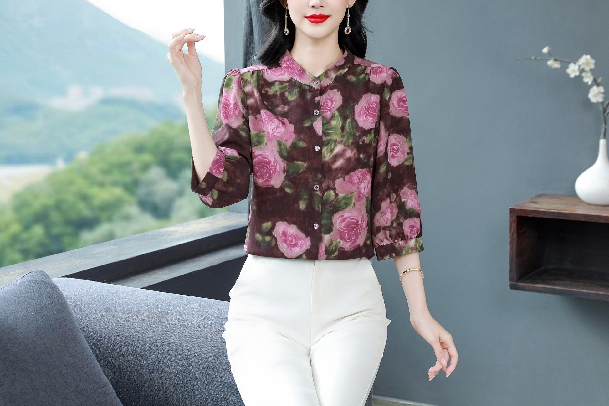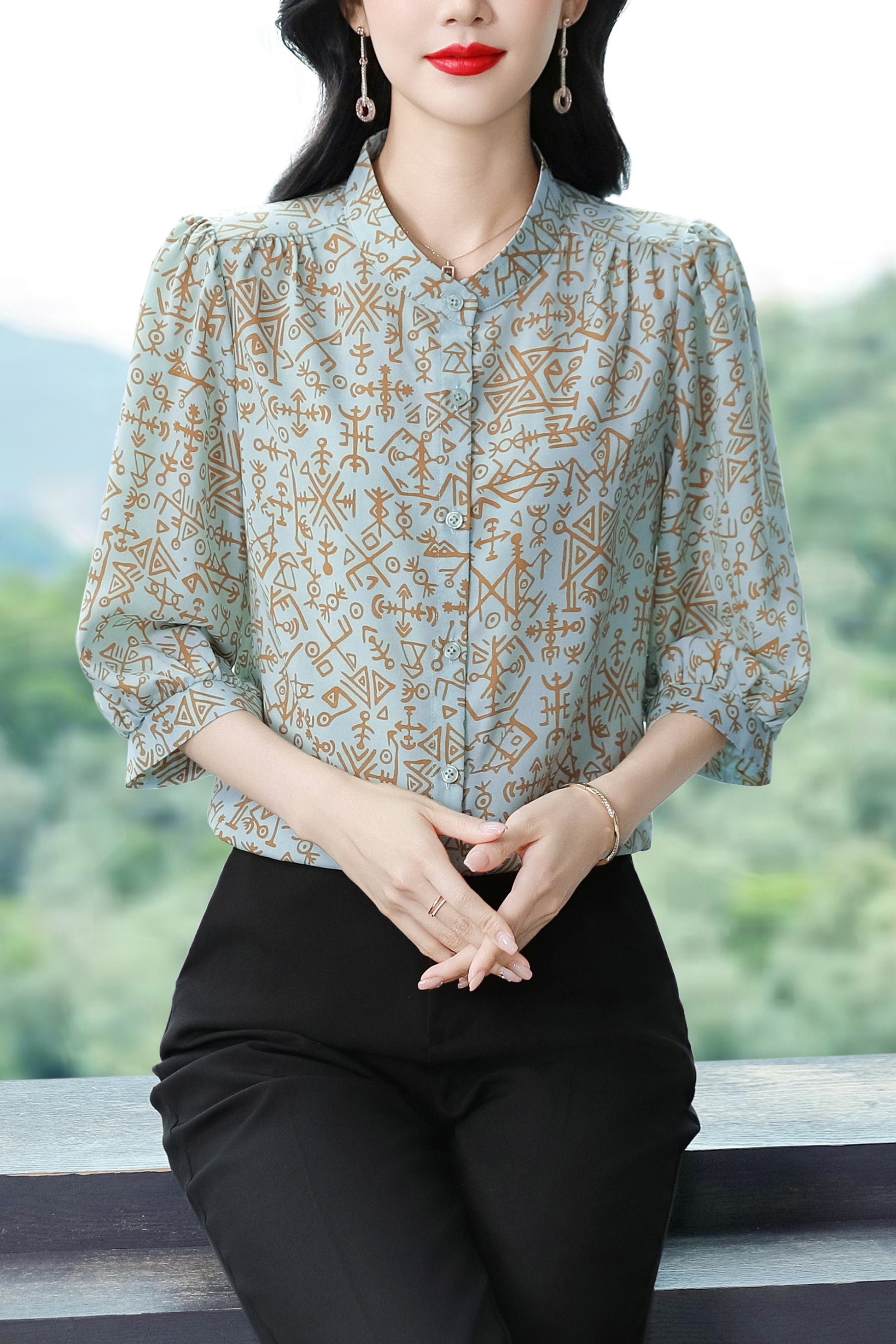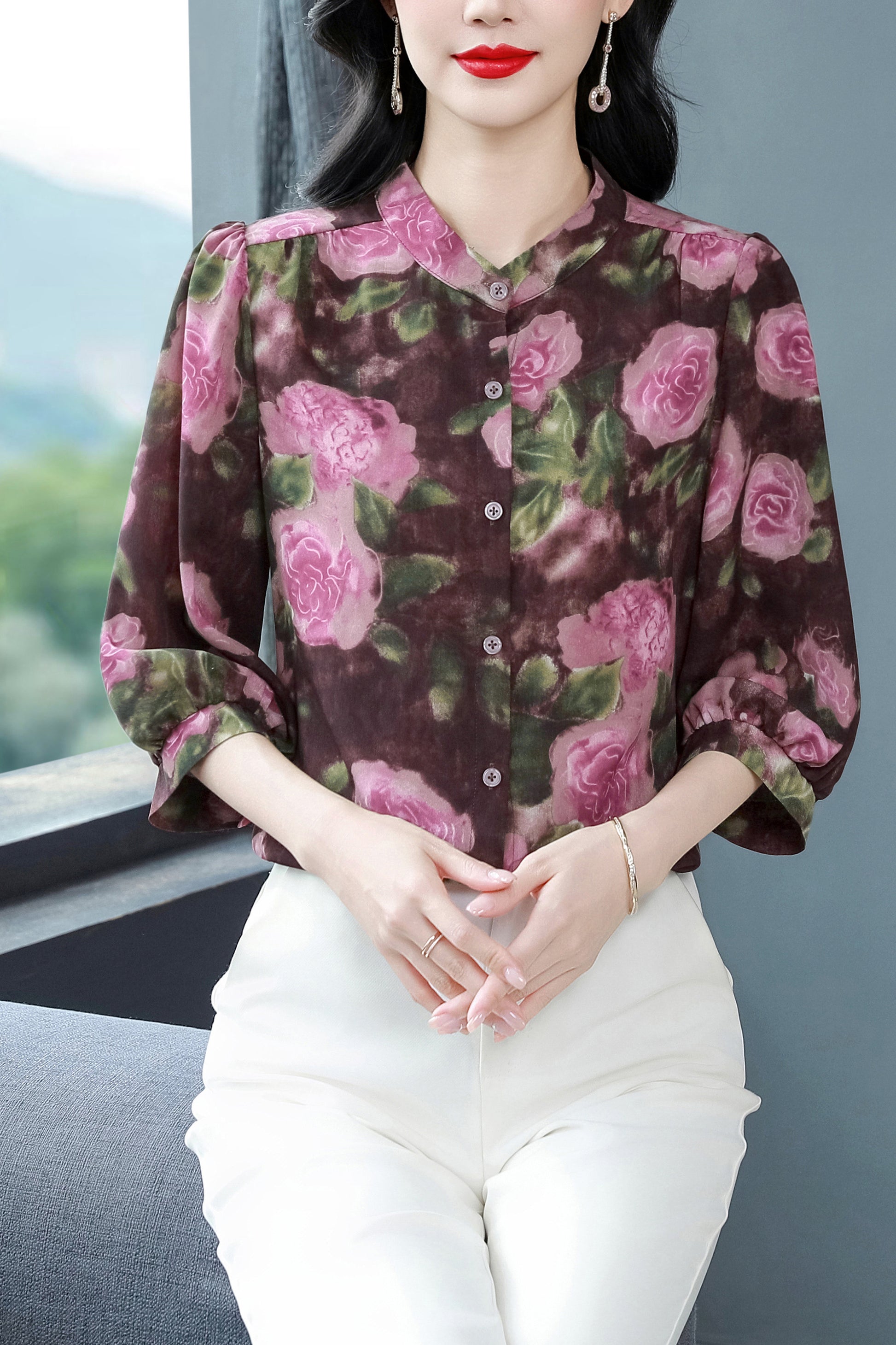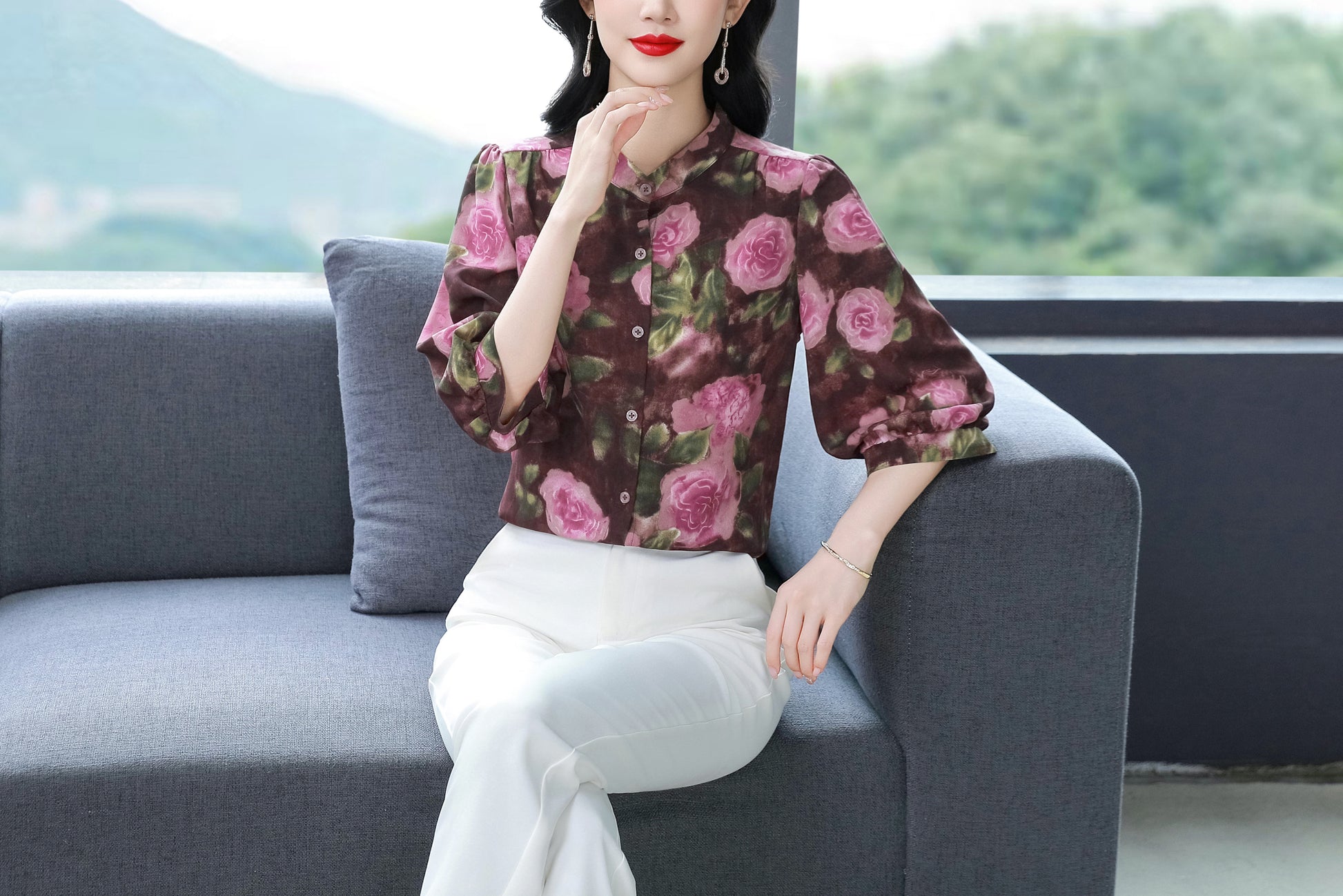 - 【Features】 Casual, Blouse Tops, Round Neck, Summer Prints, Elegant Chiffon Blouse, 3/4 Puff Sleeve tops, Chiffon shirts loose fit.