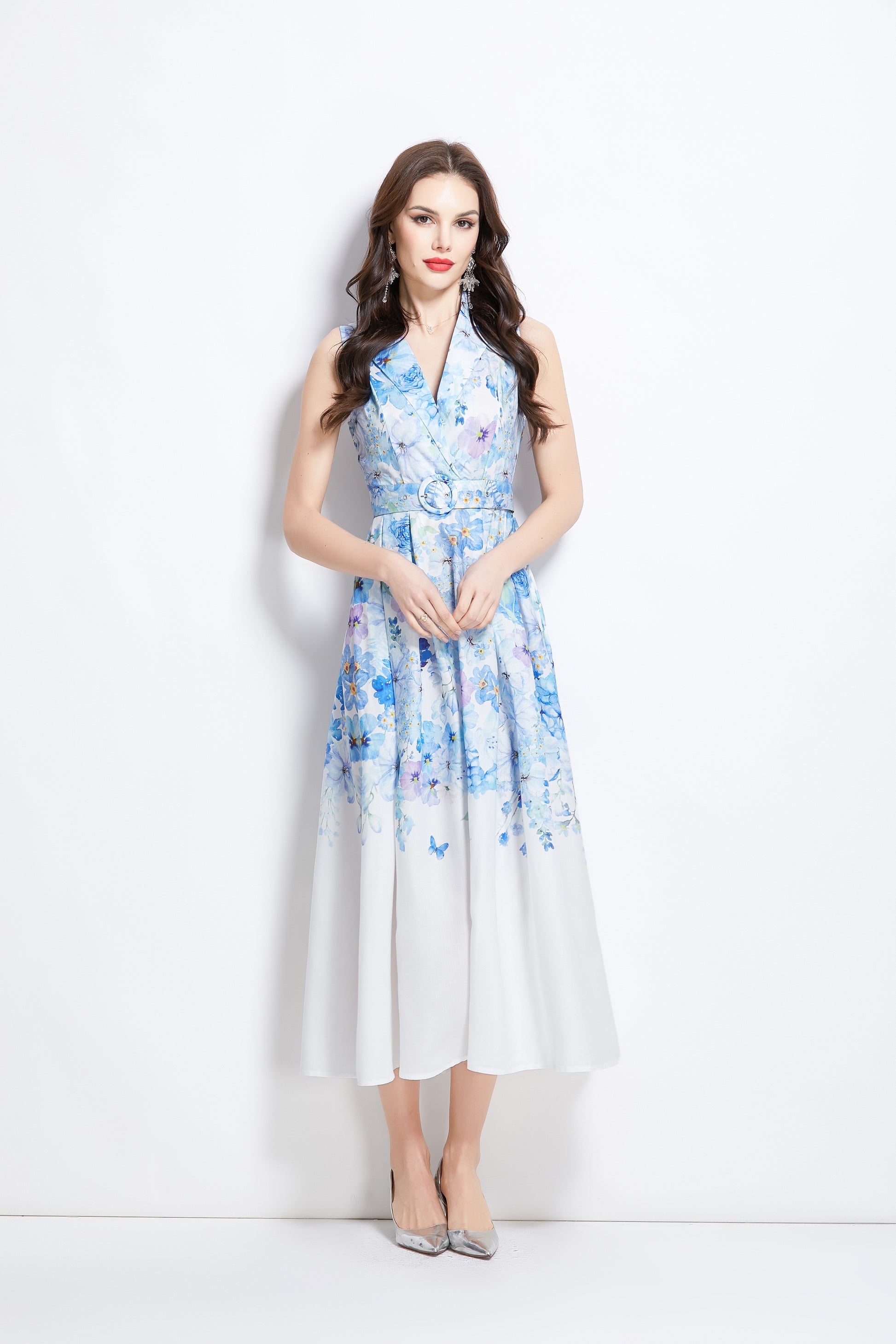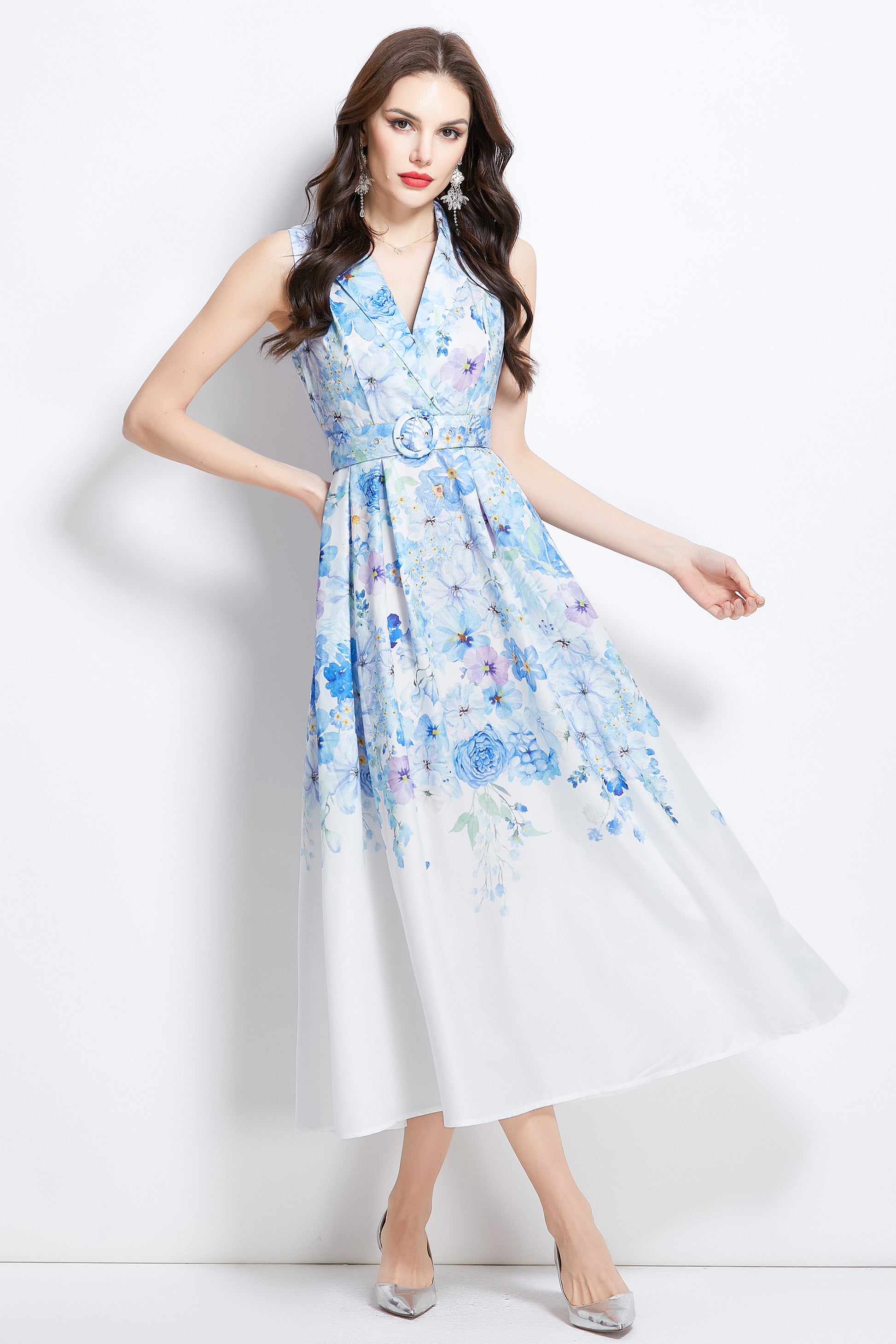 • Feature:Polyester,soft and comfortable,V-neck,button up dress,floral print,flowy A line dress,high waist with belt,sleeveless,maxi dress