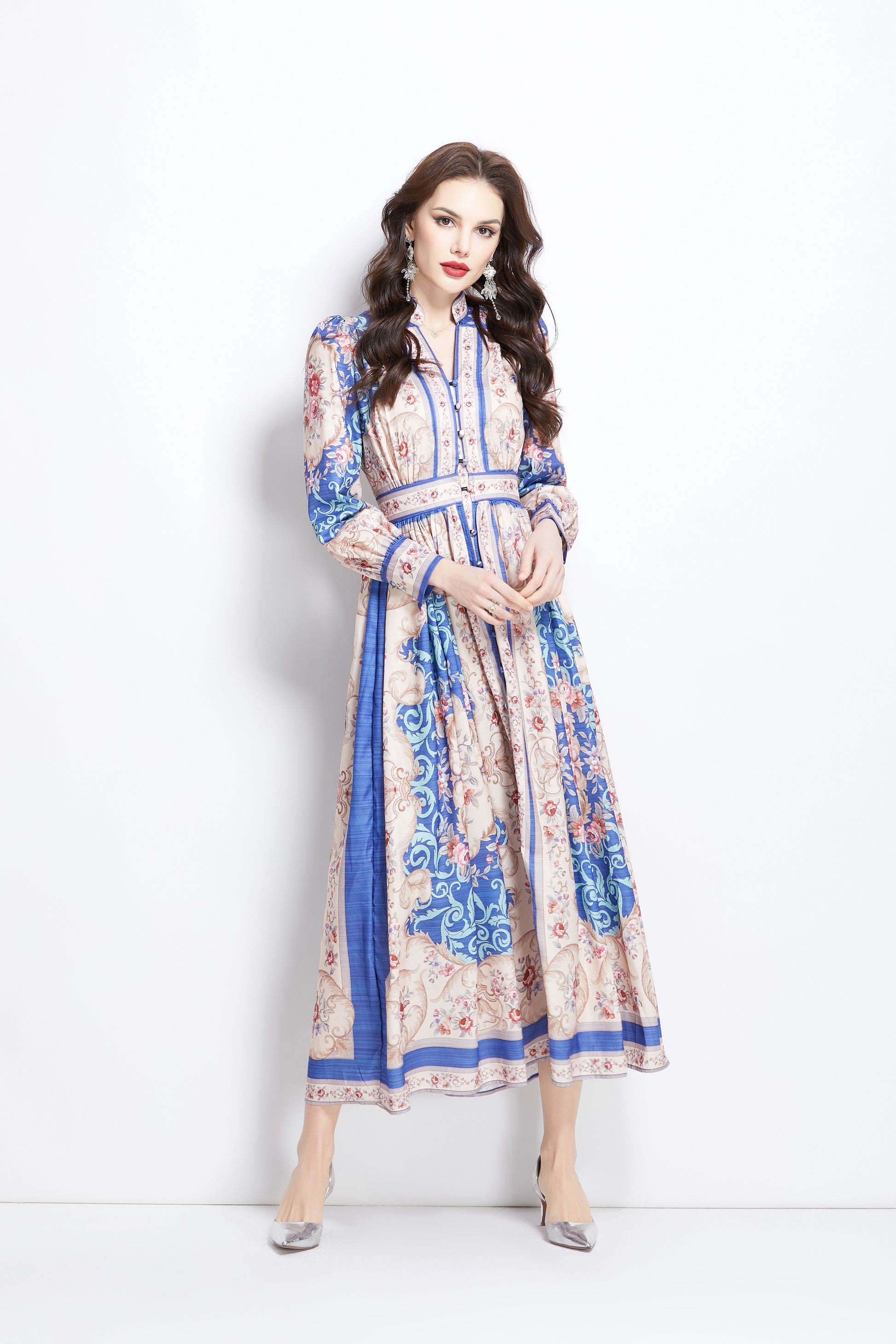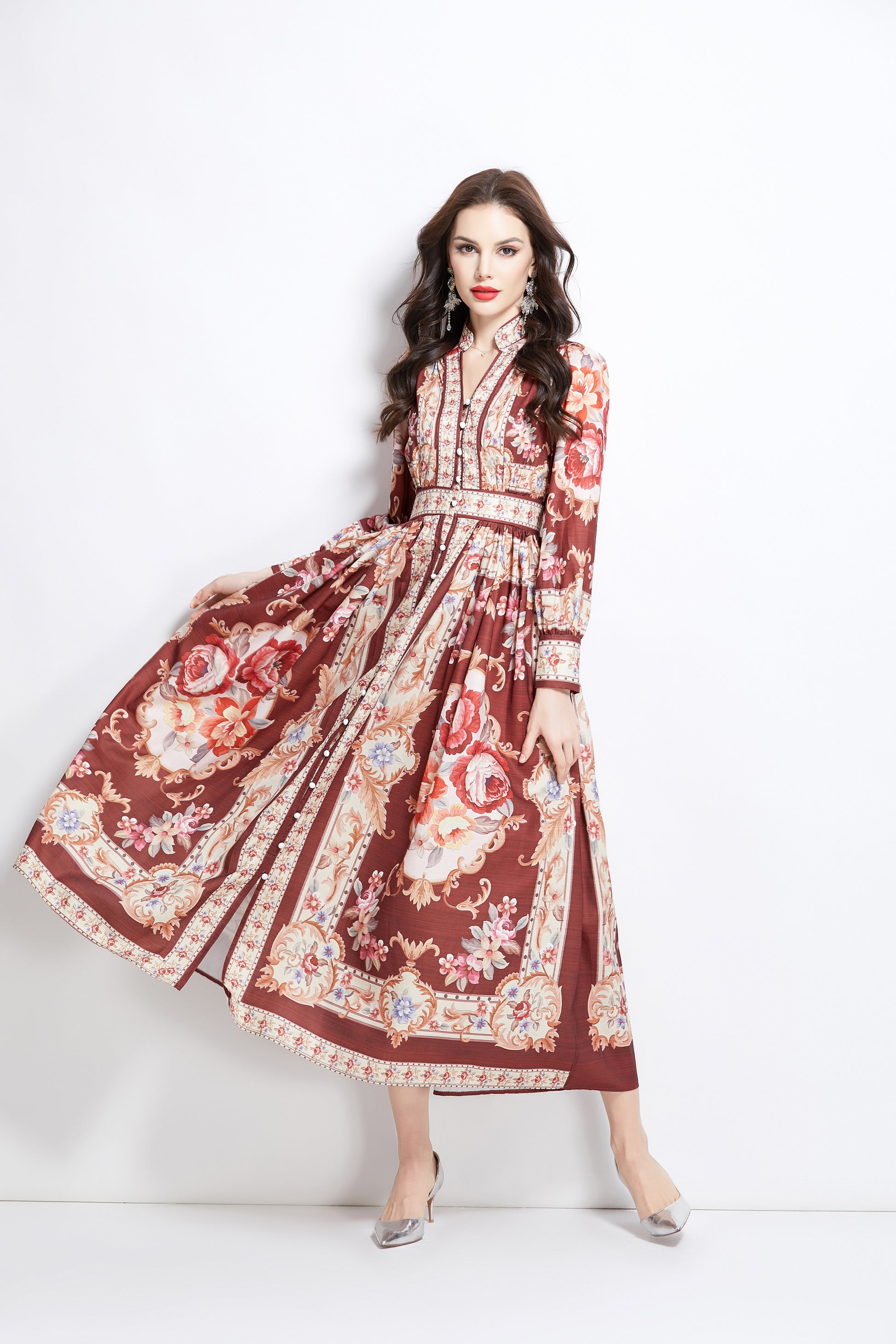 - 【UNIQUE DESIGN】Long sleeve, Elastic cuff sleeve, Fashion printing design,button up front, V-neck, Maxi length.