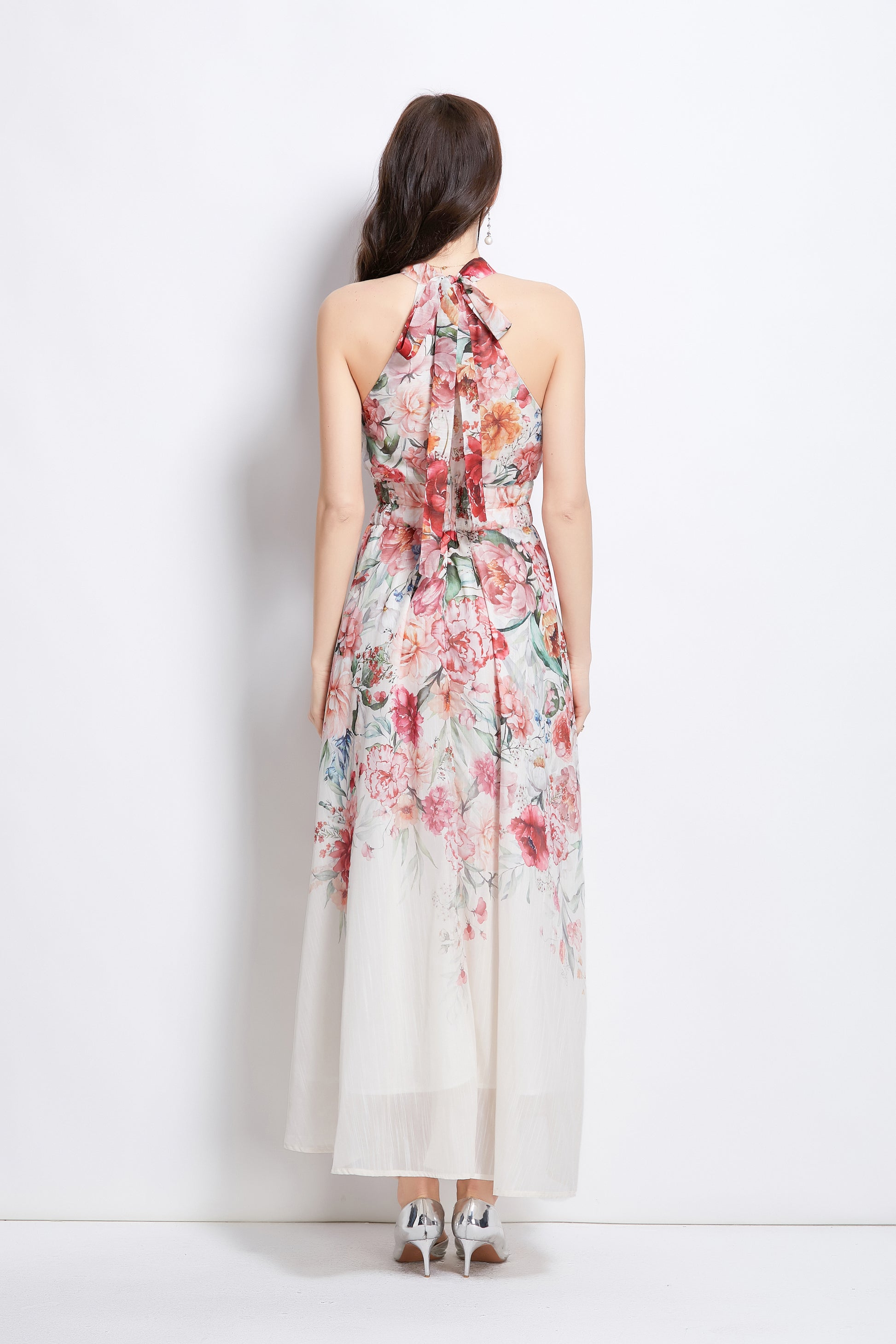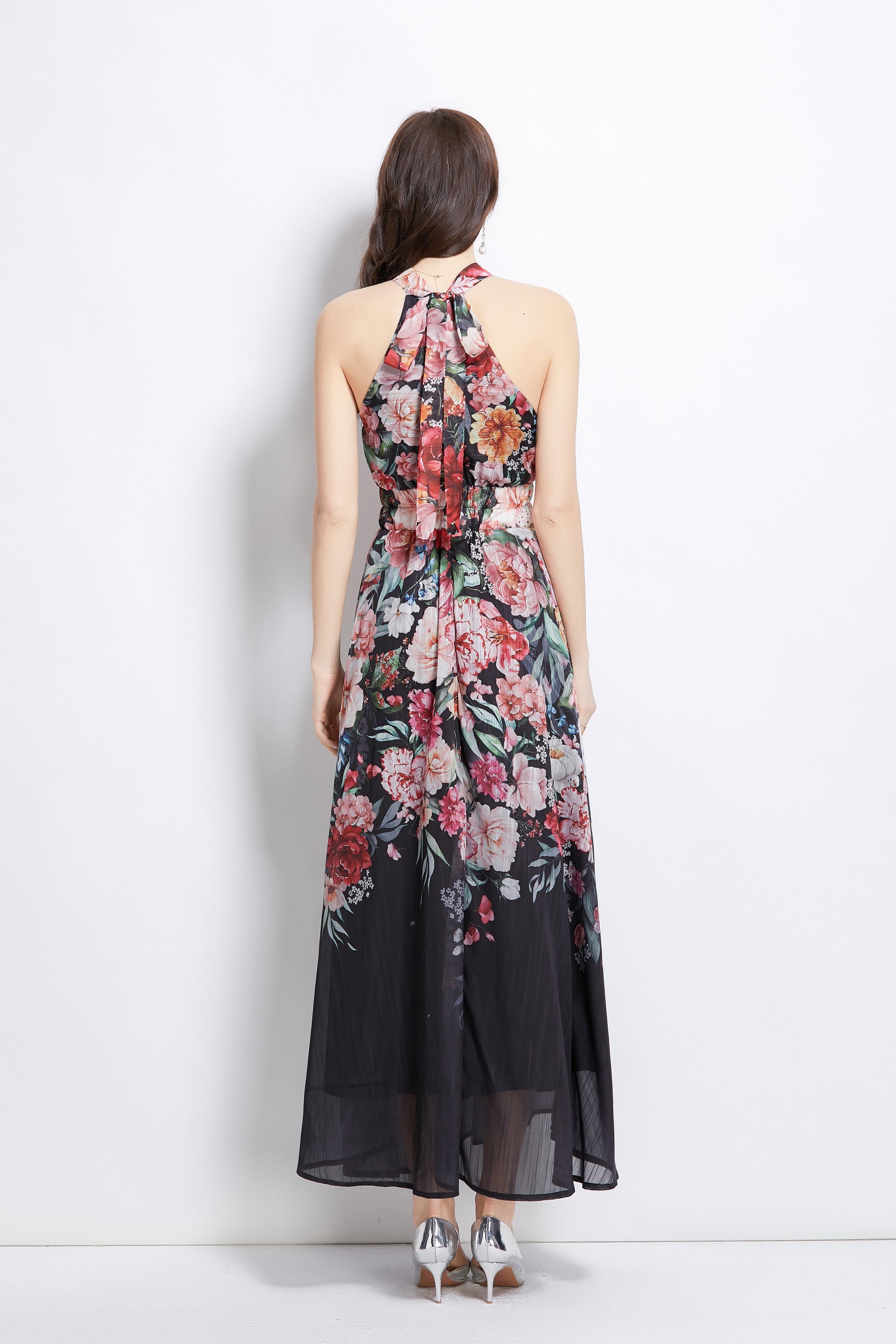 Women's Halter Neck Floral Elastic Waist Maxi Dress
