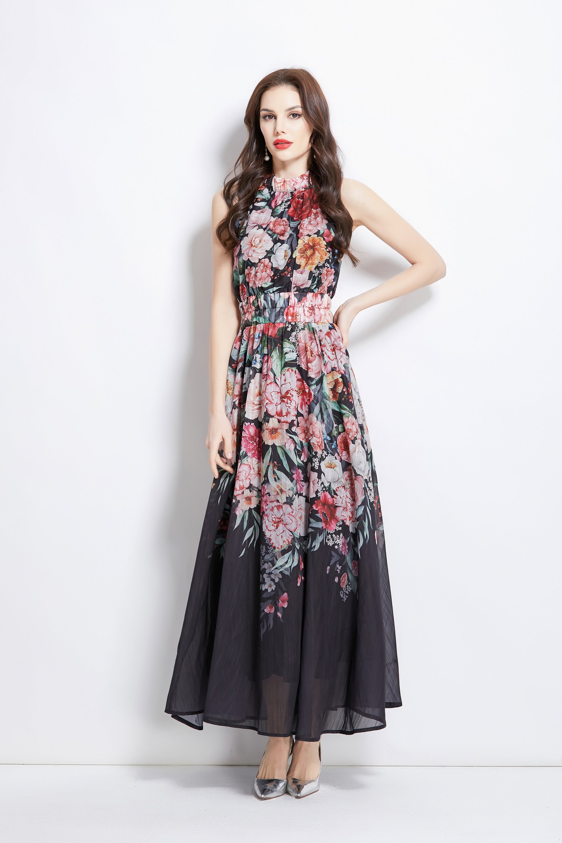 - Features: high neck, sleeveless, halter, floral print,pleat, high Elastic Waist, maxi dressi; Using lightweight breathable fabrics, comfortable to wear, suitable for spring and summer seasons