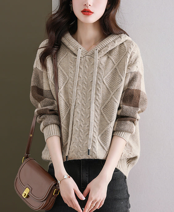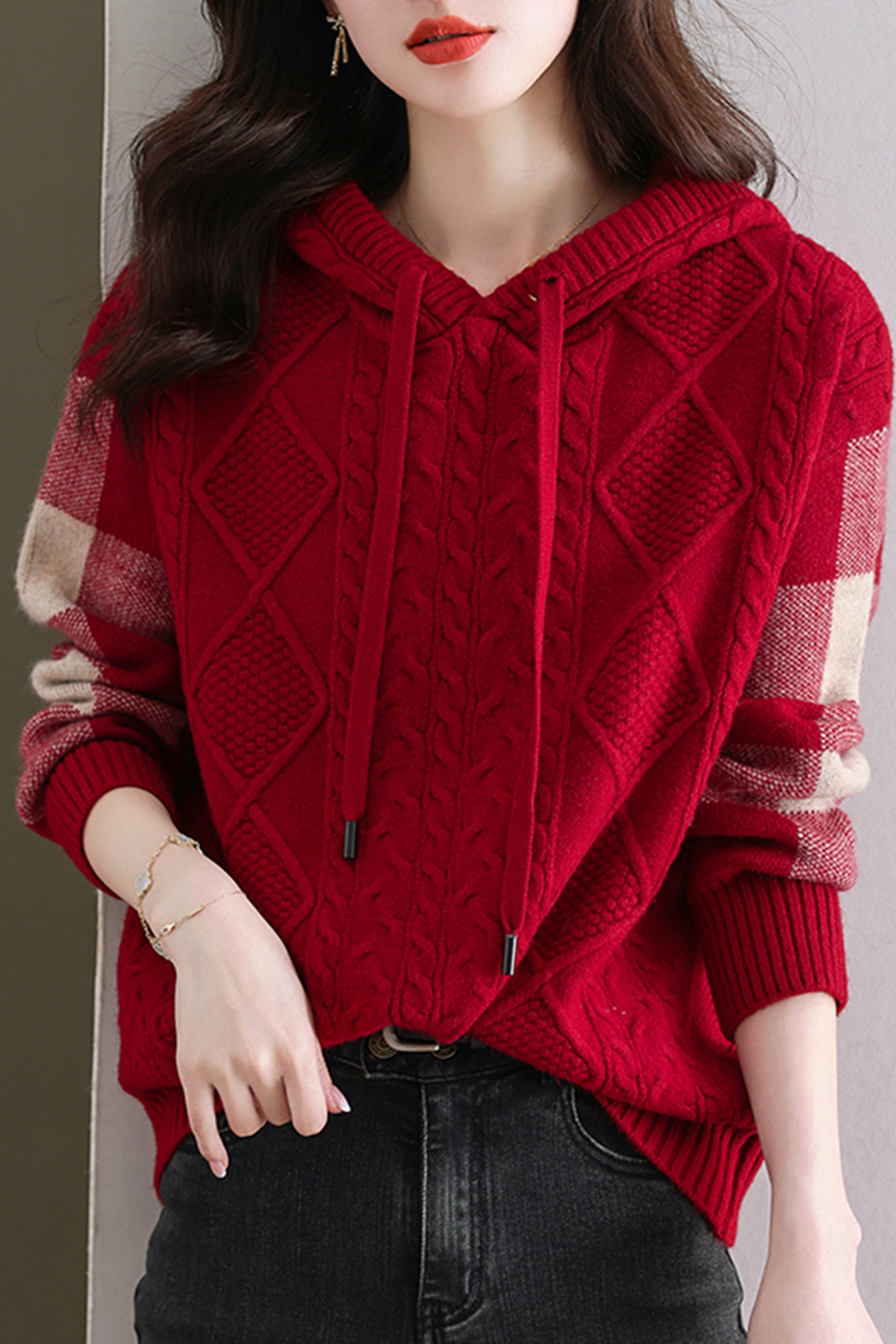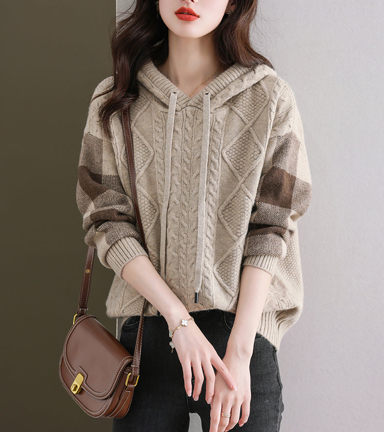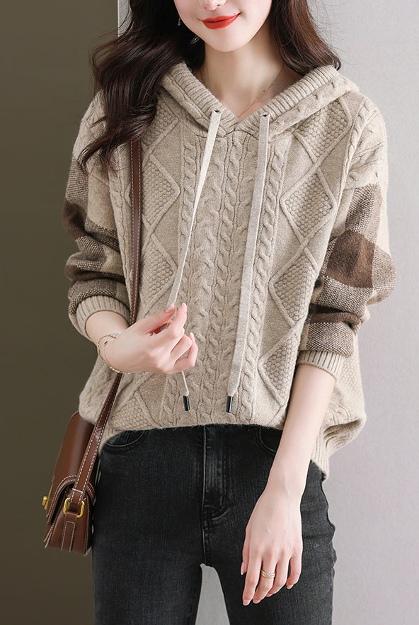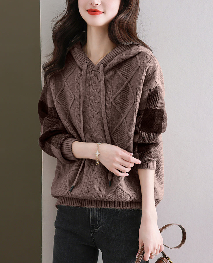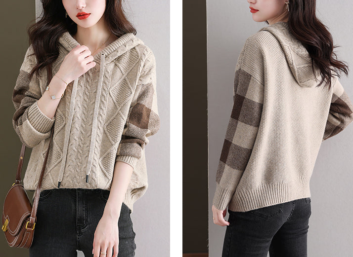 - Design: Made of knitted fabric, the fabric is elastic, soft, breathable, comfortable and warm to wear. Women's checkered threaded knitted hoodie, simple, fashionable and versatile, a must-have for autumn and winter.