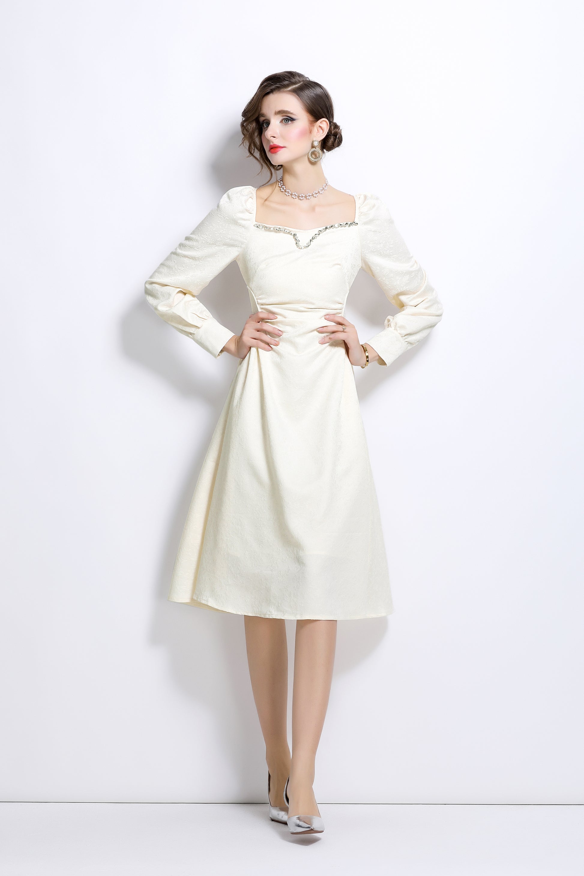 Square collar design: Elegant square collar design, showing the collarbone line, suitable for various face shapes, add feminine charm.
