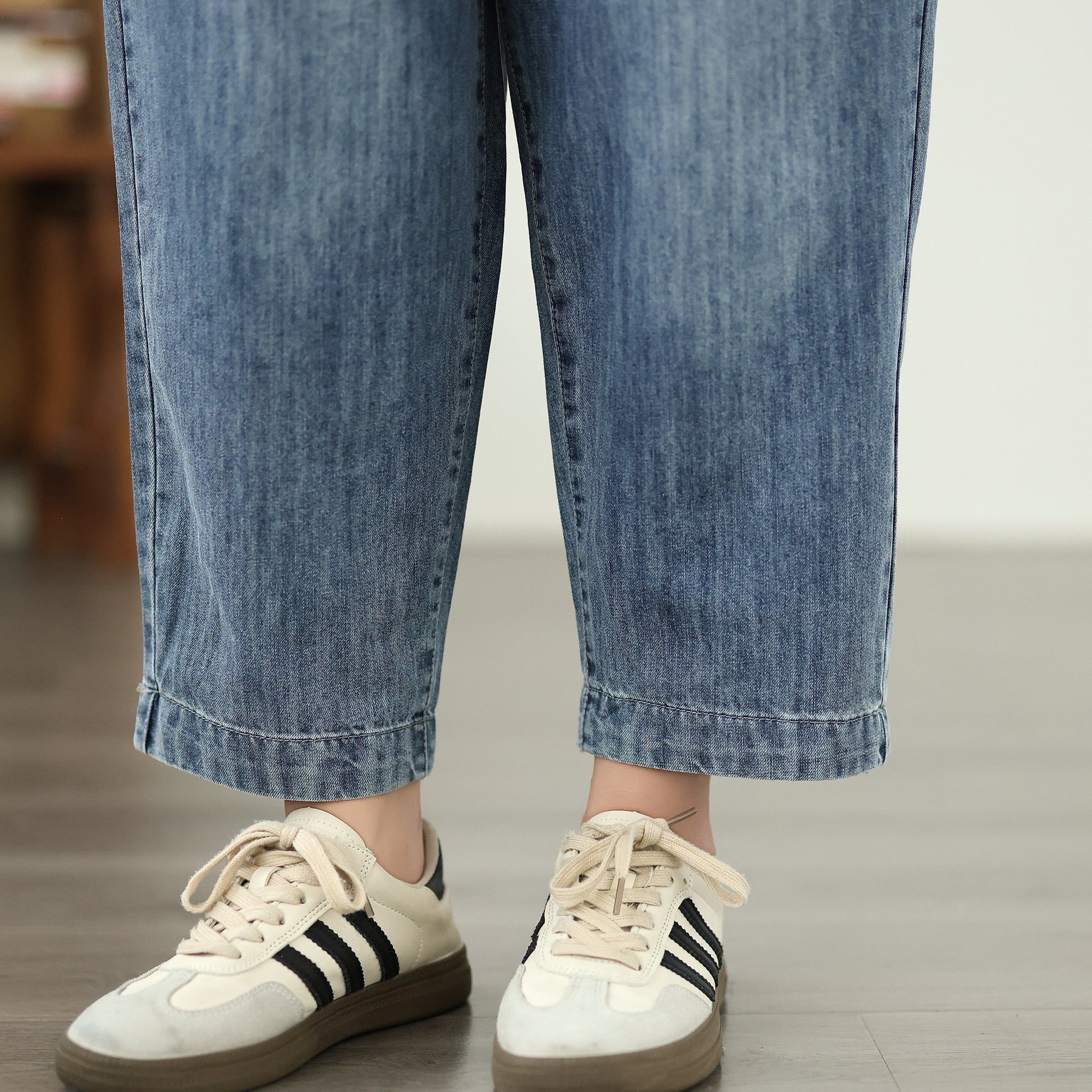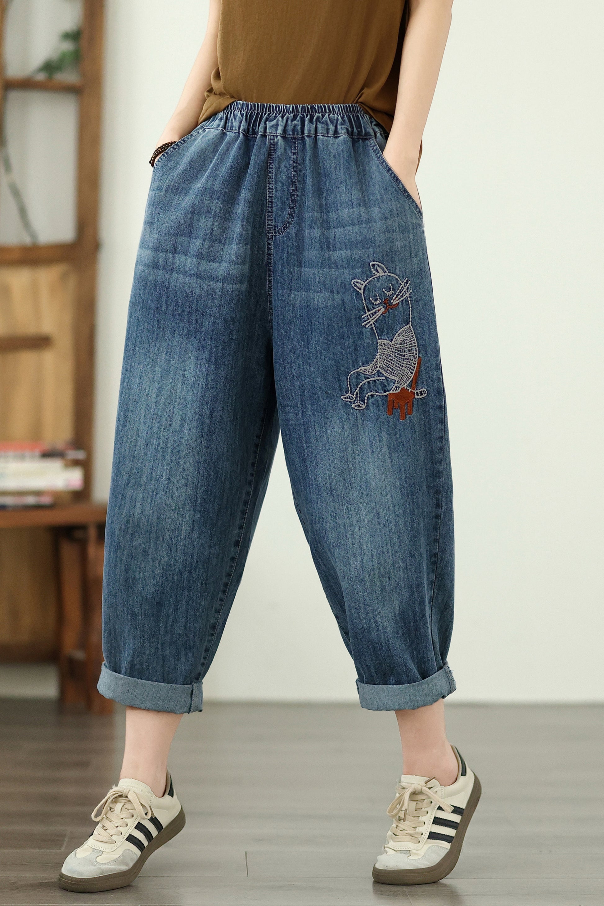 - Features: Elastic Waist,denim,Side Pockets;Casual Wide leg,knee length pants, classic denim,hip-hop,Casual loose fit. The version of the pants is very suitable for covering the flesh of the thigh and modifying the beautiful leg shape,a must-have womens jeans in your wardrobe.