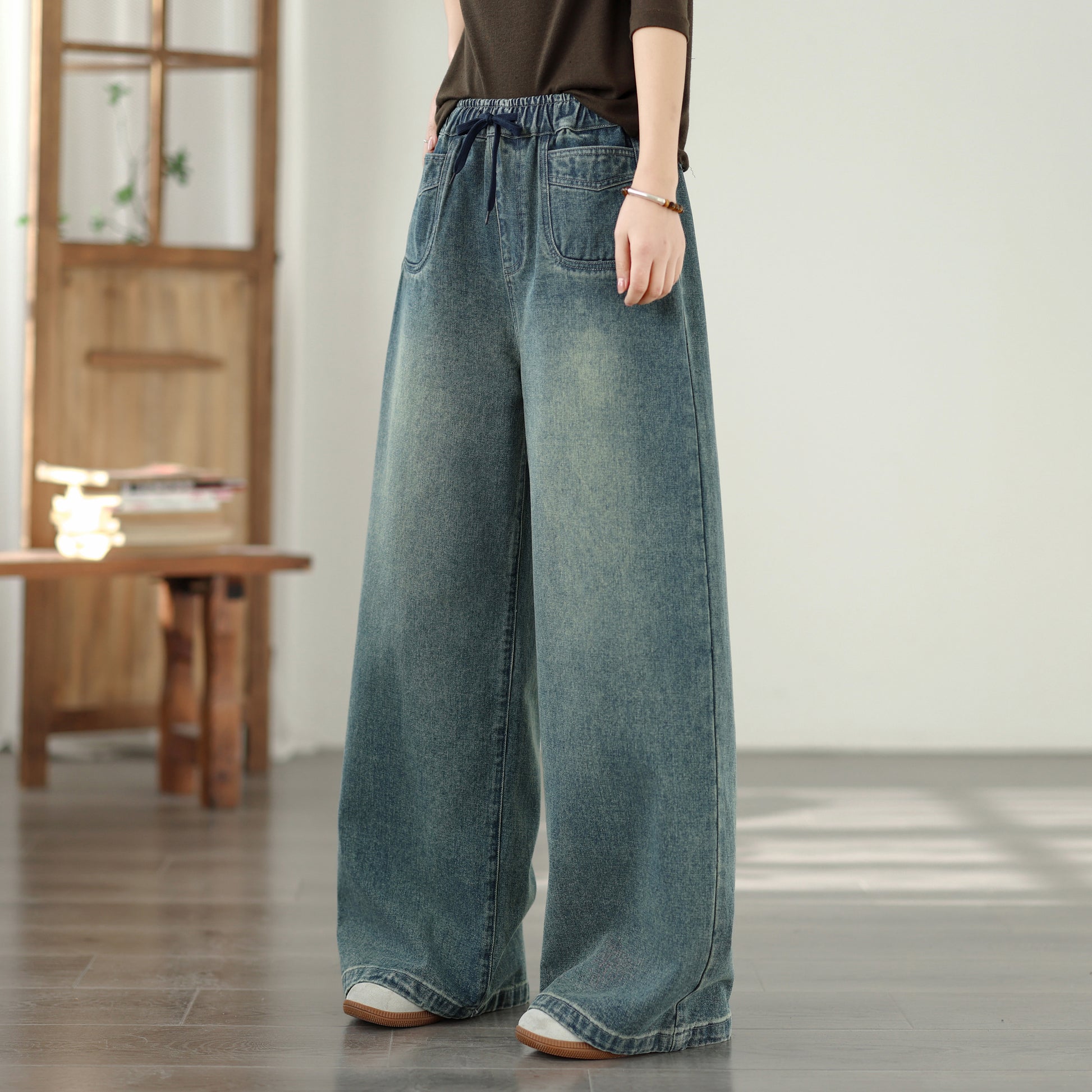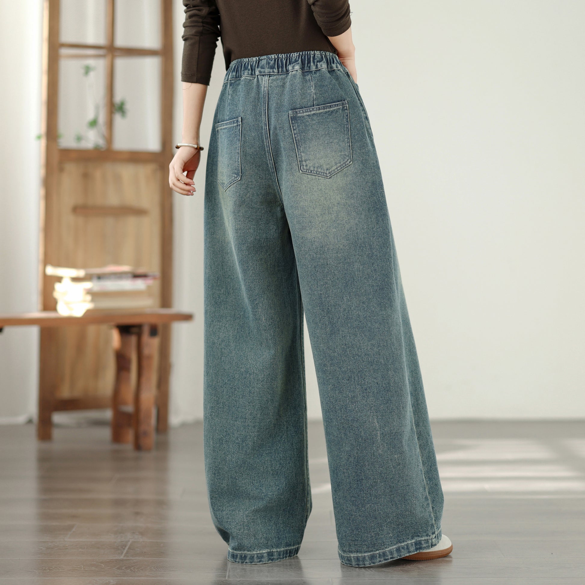 Women's Jeans Elastic Waist Baggy Wide Leg Pants