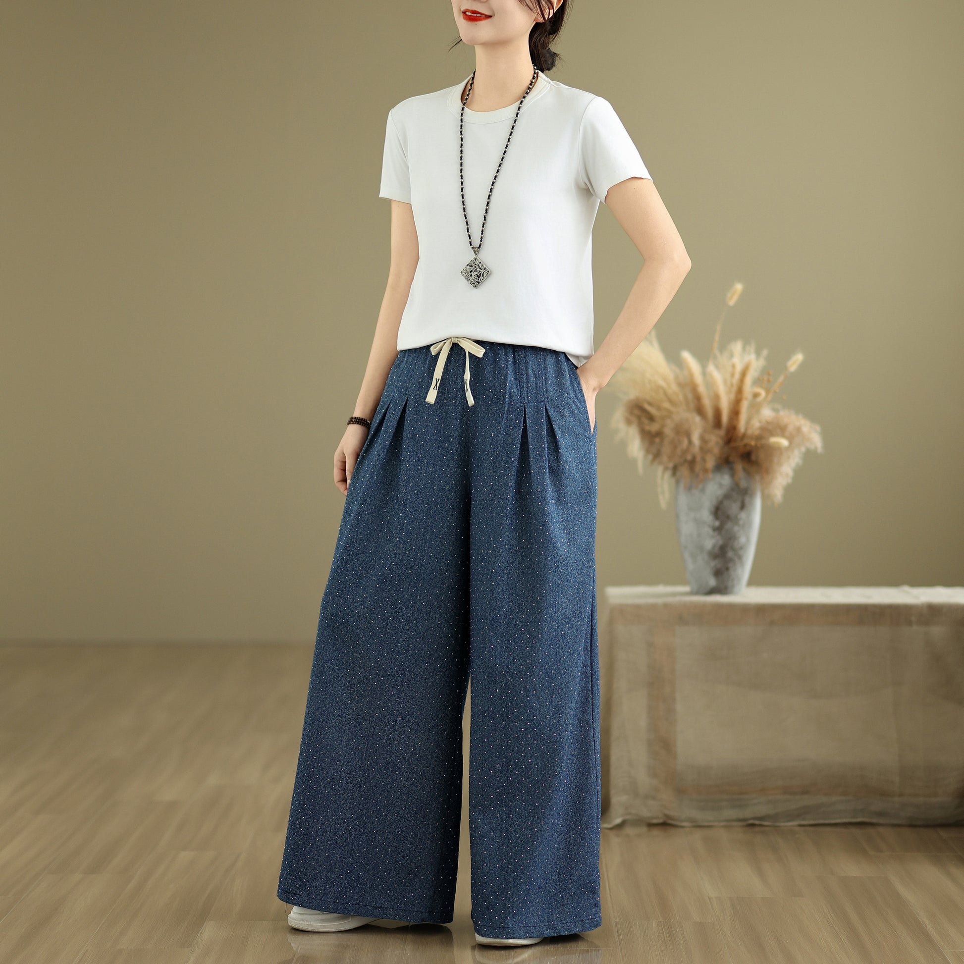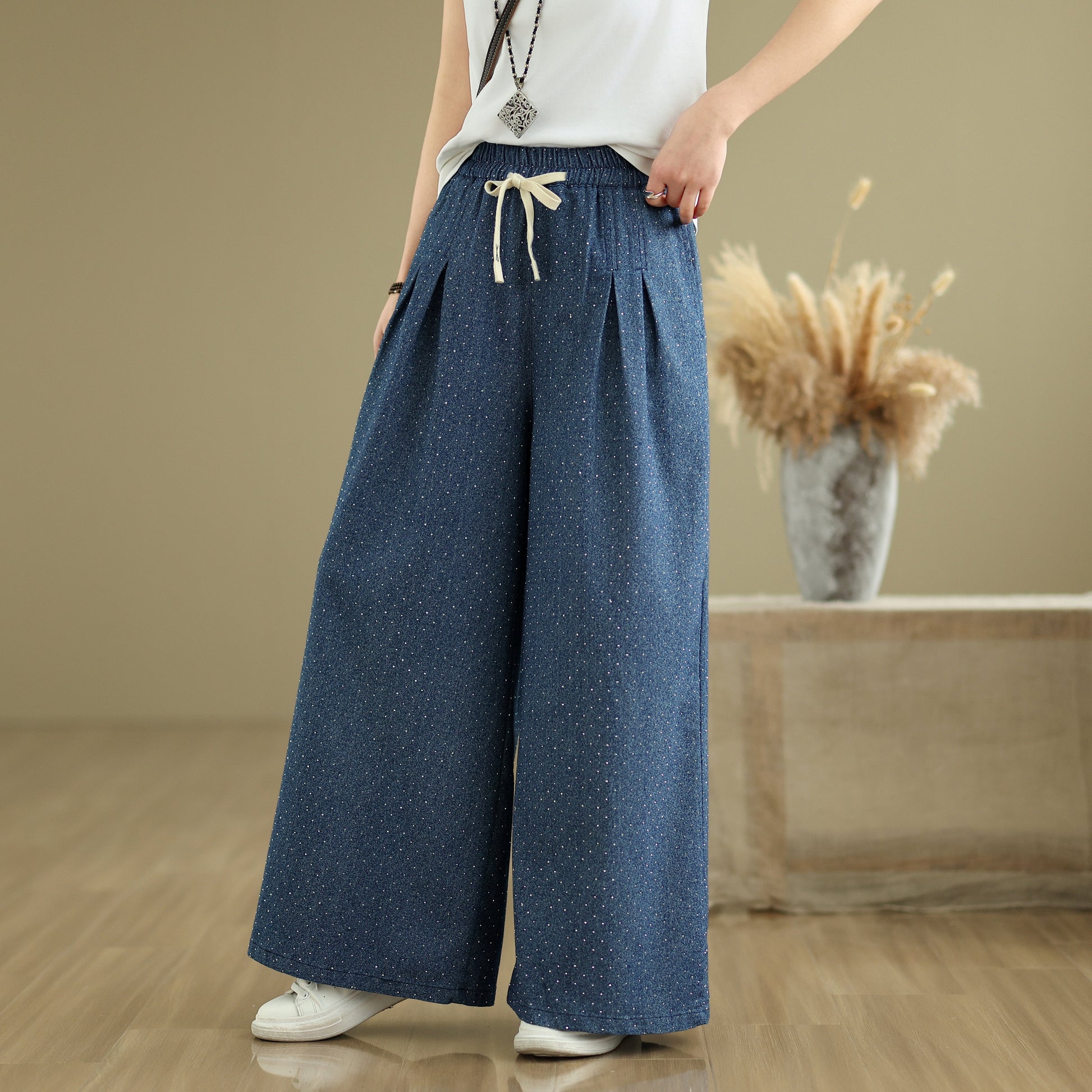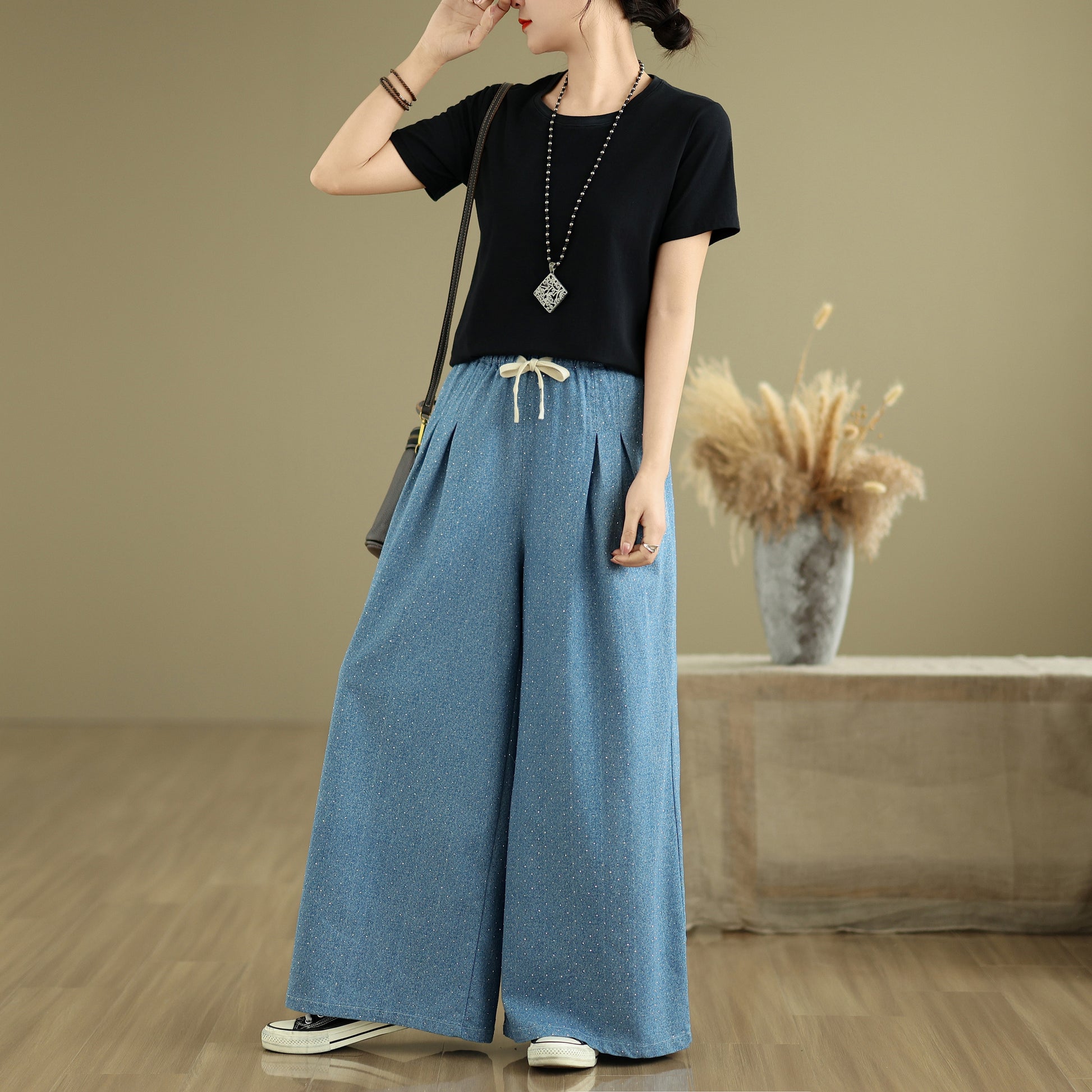 - Features: Fashion,trendy ,Casual loose,Elastic Waist Drawstring, denim, Wide Leg, Classic denim, Double pockets. If you love wide-leg baggy jeans, this is definitely the best choice for you.