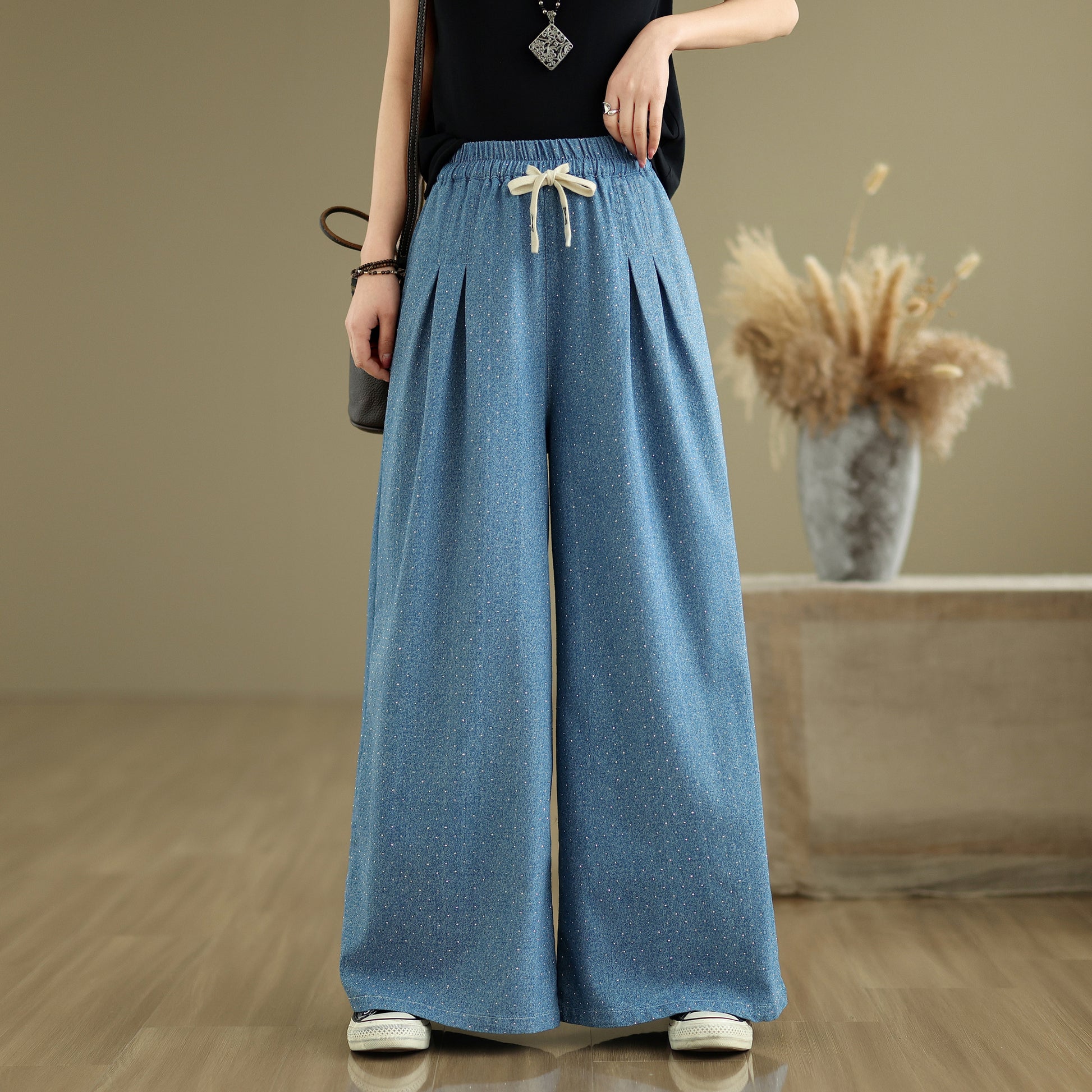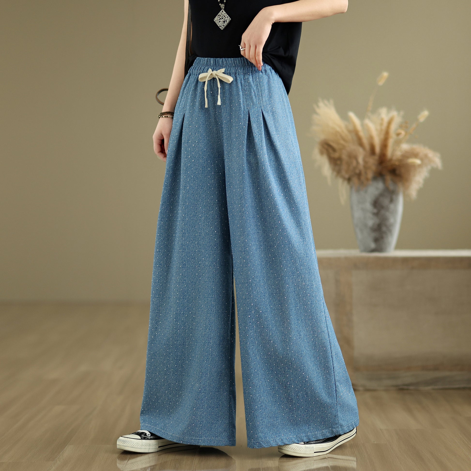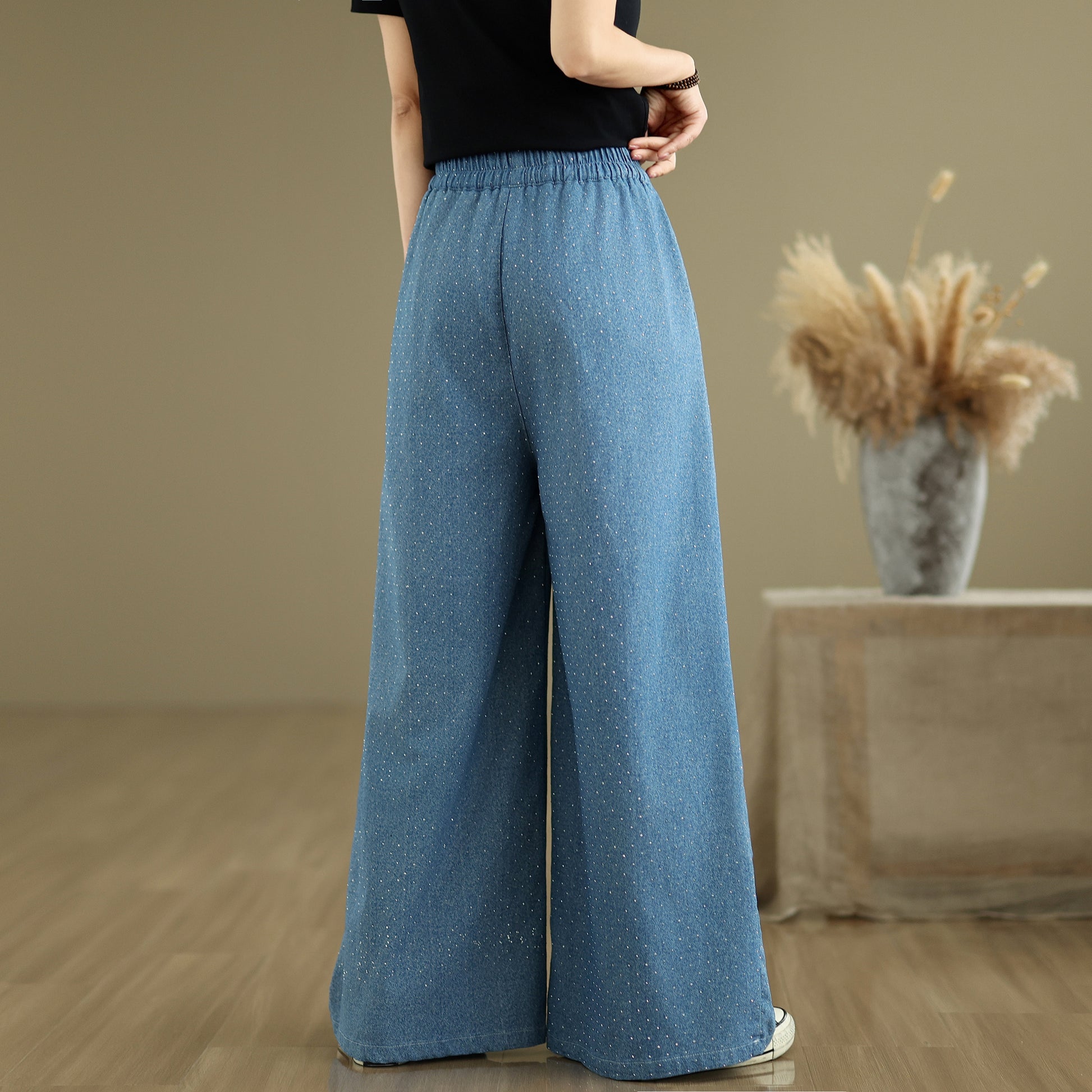 Women's Jeans Elastic Waist Wide Leg Denim Pants