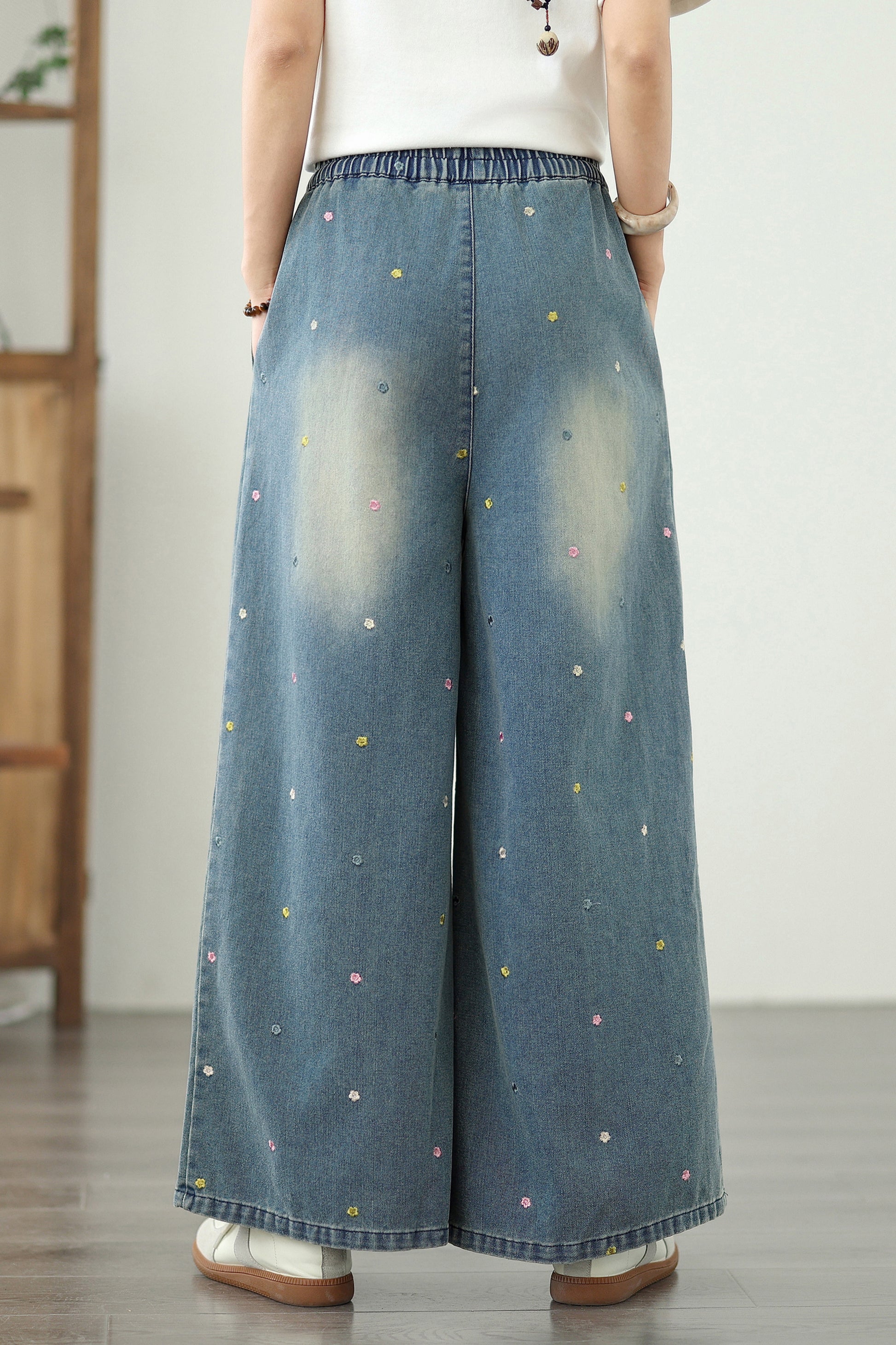 Women's Jeans Elastic Waist Wide Leg Denim Pants
