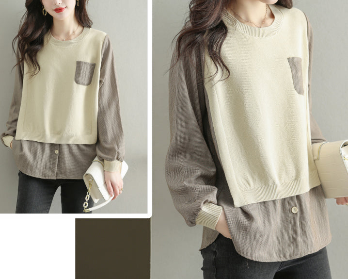 - Features:Patchwork shirt women/Stripe blouse for women/womens long sleeve blouse/2025 fall shirt tops/2025 winter pullover tops/casual daily blosue tops/cute soft women's tops/round neck long sleeve tops/lantern long sleeves blouse tops/Patchwork sleeve fall pullover tops