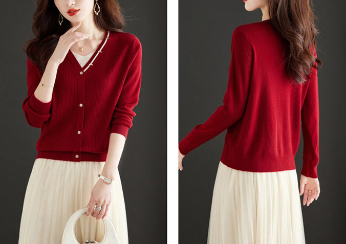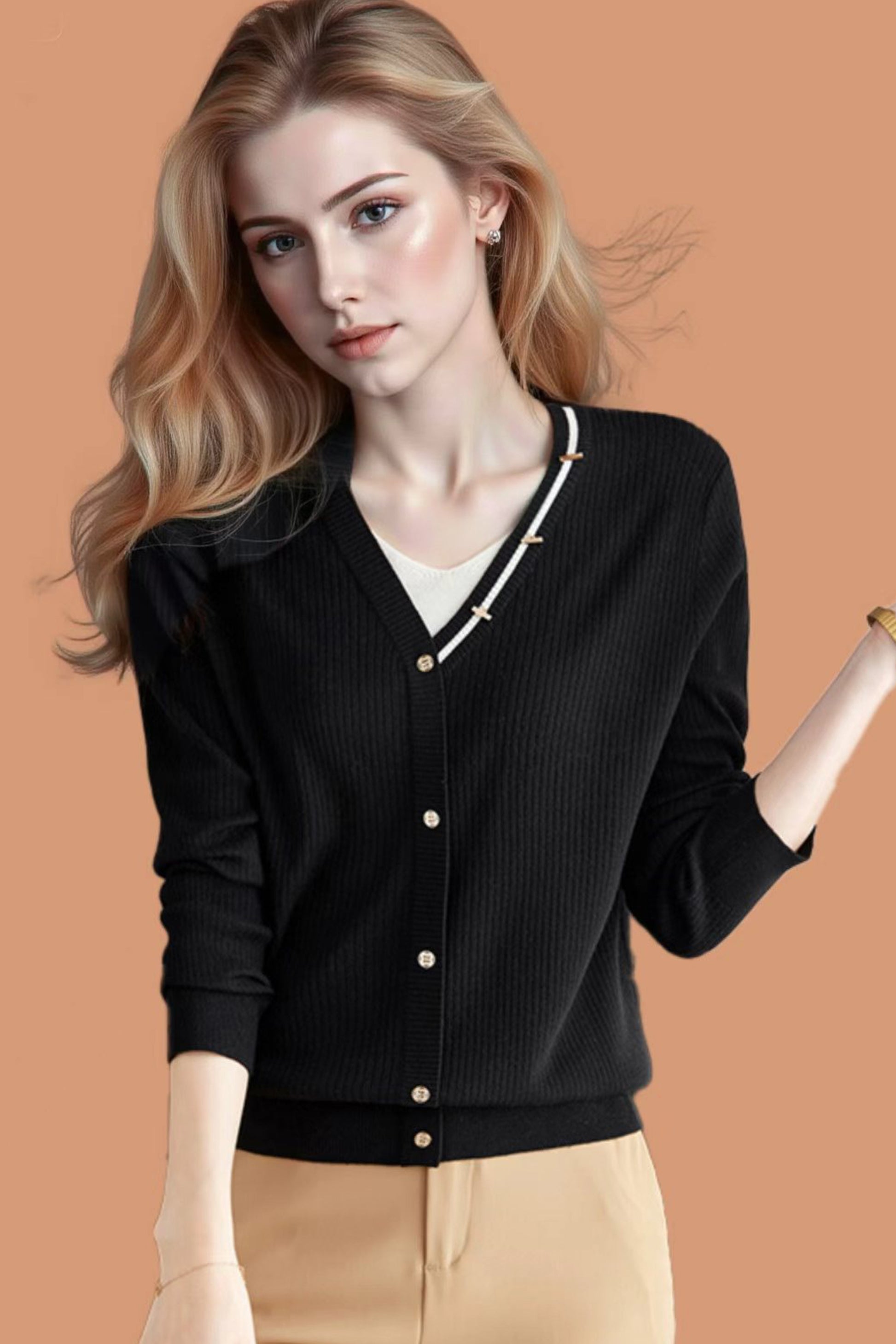 - Features: V-neck, long sleeves, buttons knit cardigan, lightweight knitted cardigan,classic solid color,ribbed knit sweater,classic,versatile,elegant,perfectly fit the shape of body.