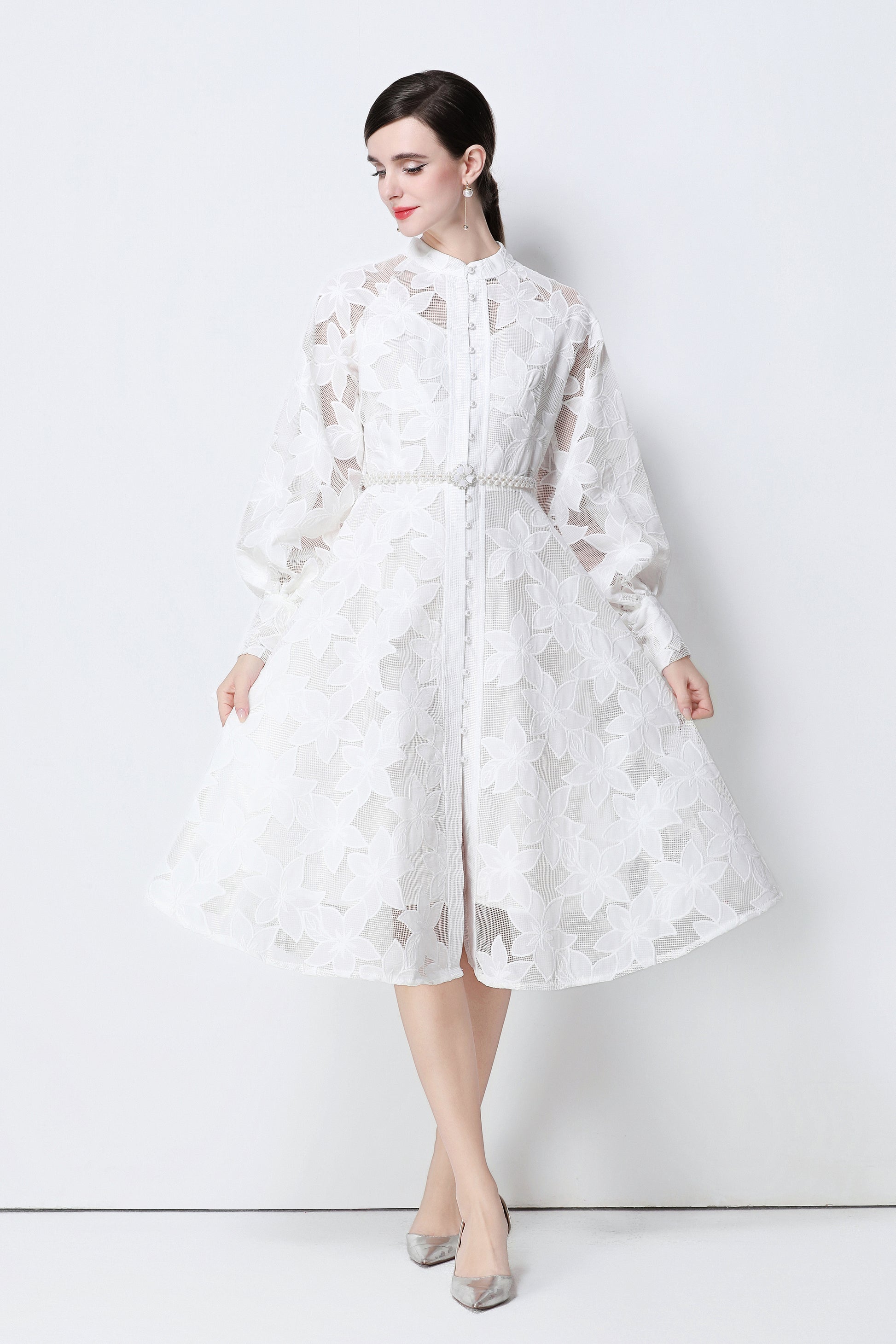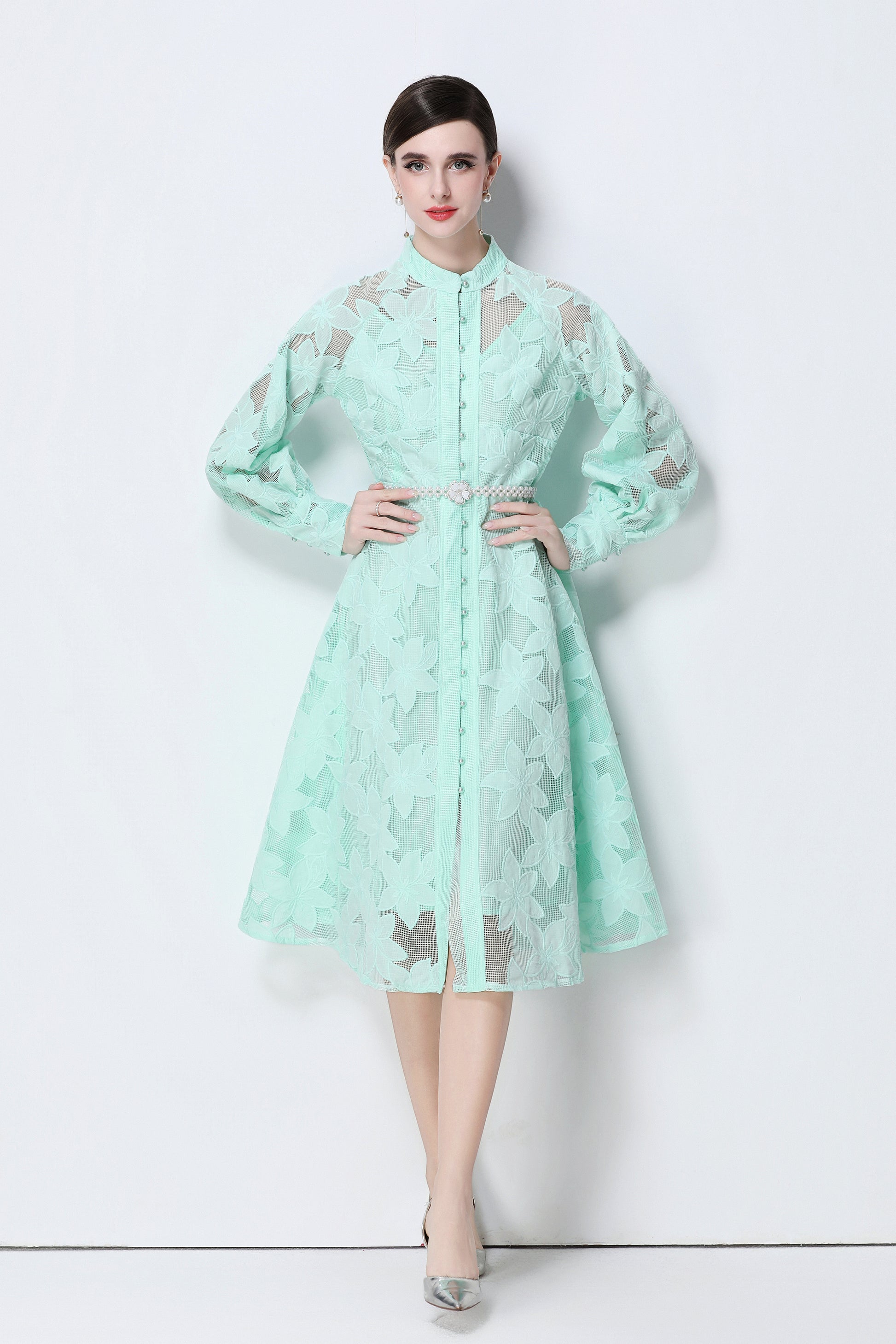 - Design: This dress is made of unique mesh fabric and features an embroidered and hollowed-out floral covering design. The A-line skirt hem design can highlight the waistline. The exquisite pearl buttons of the same color and the elaborate pearl belt detail design make the entire dress elegant and fashionable, allowing you to stand out in the crowd.