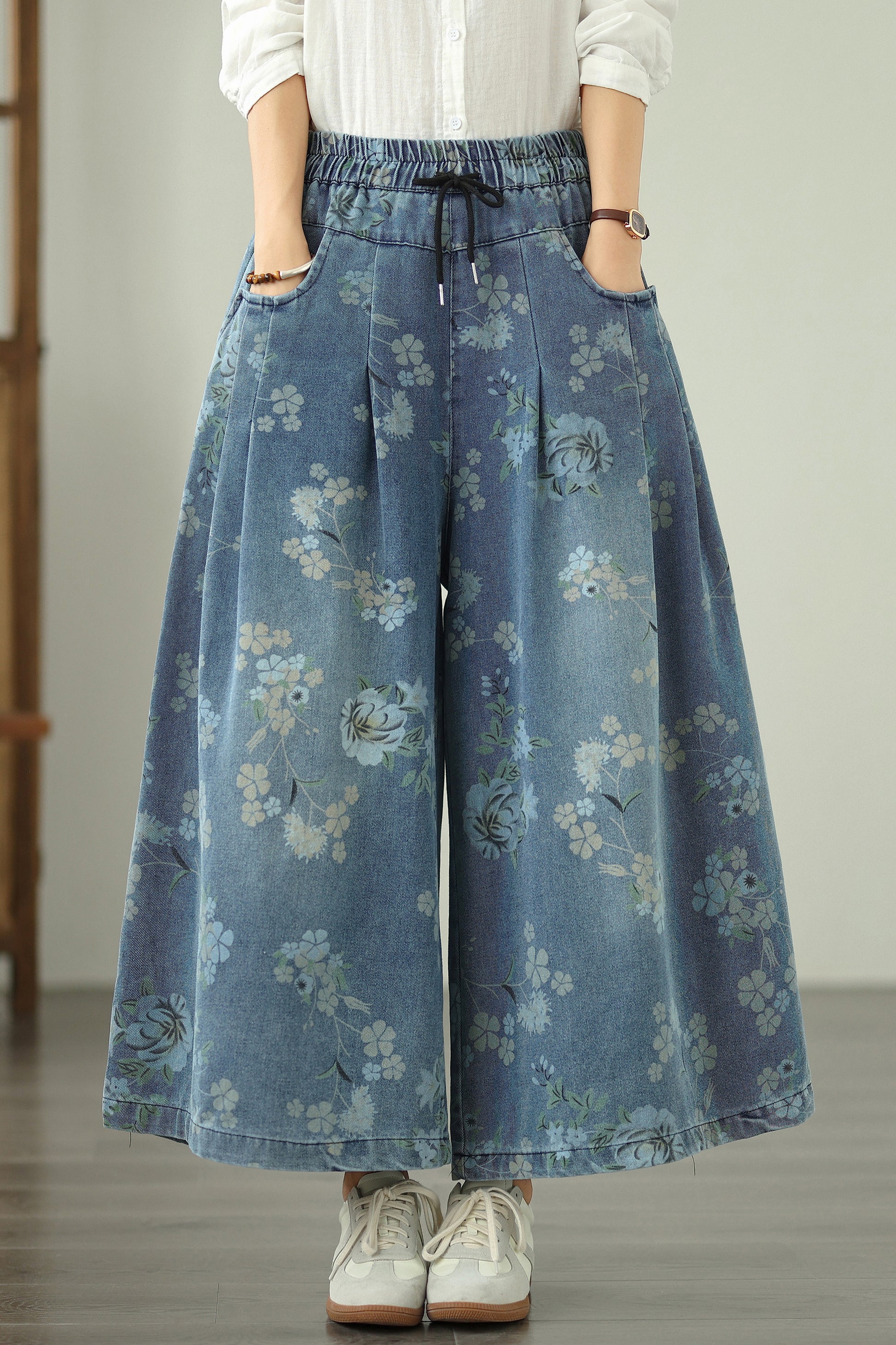 - Features: Fashion jeans,Casual loose,Elastic waisted, denim, Wide Leg, Classic denim, flared, Double pockets. If you love wide-leg baggy jeans, this is definitely the best choice for you.
