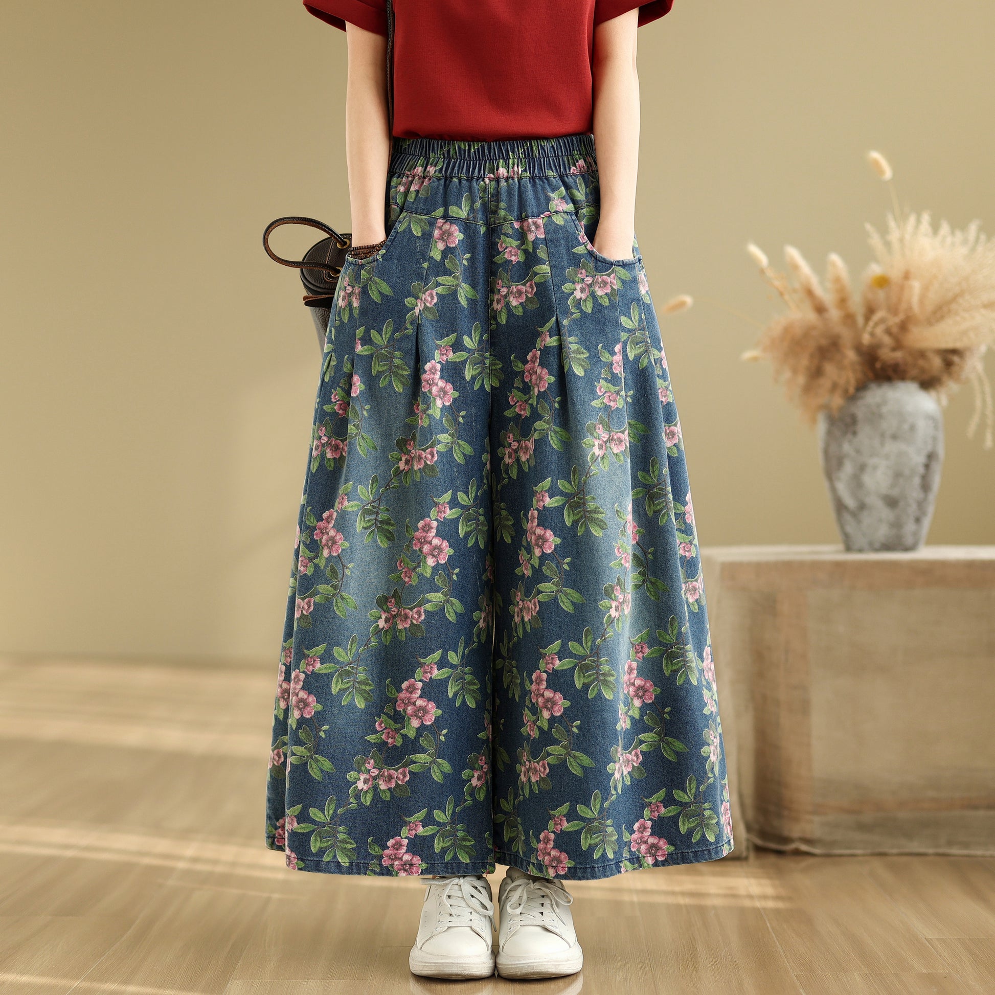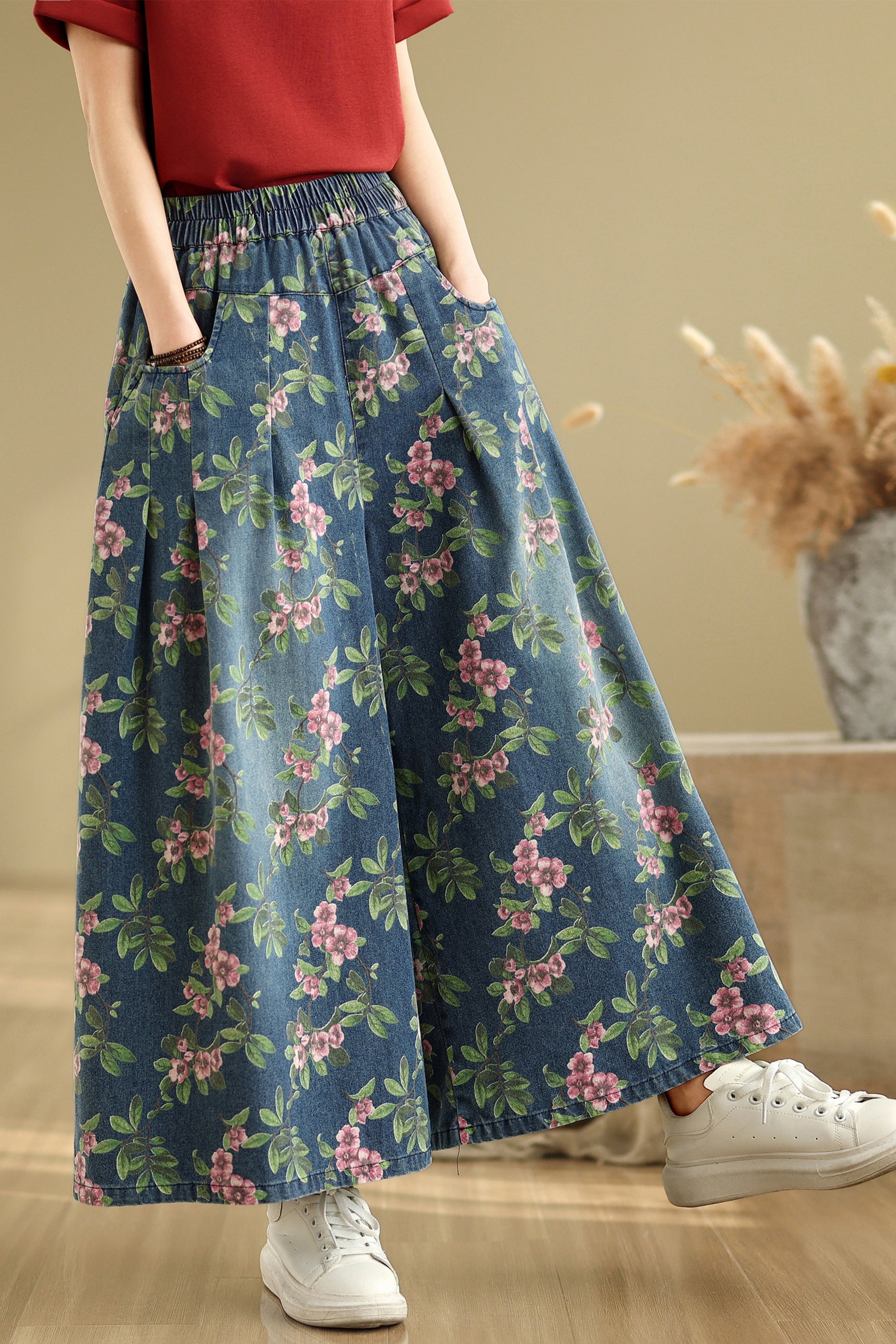 • Features: Fashion jeans,Casual loose,Elastic waisted, denim, Wide Leg, Classic denim, flared, Double pockets. If you love wide-leg baggy jeans, this is definitely the best choice for you.