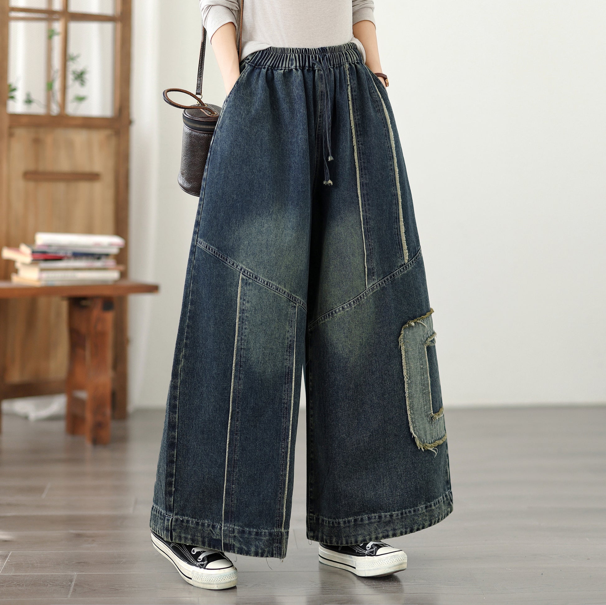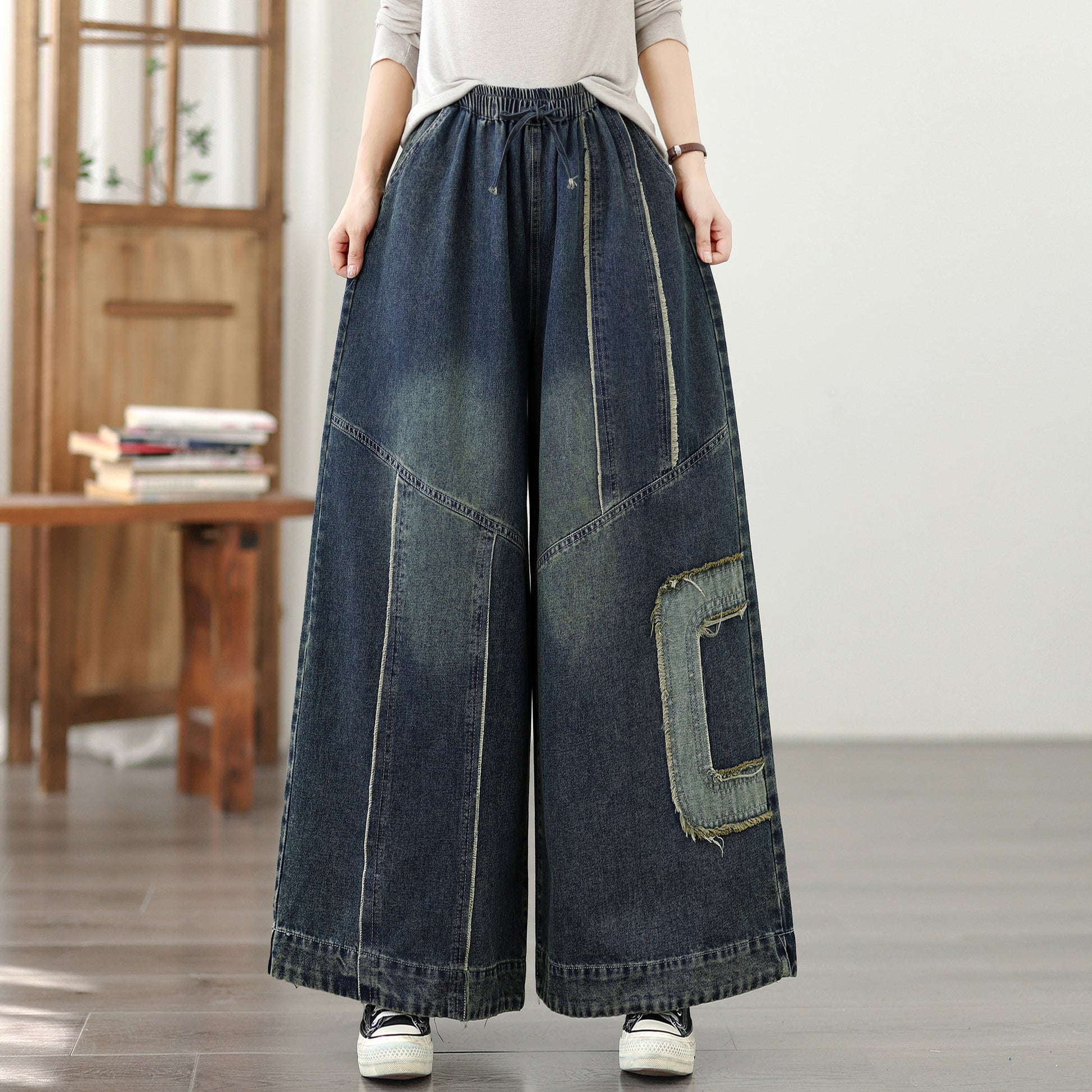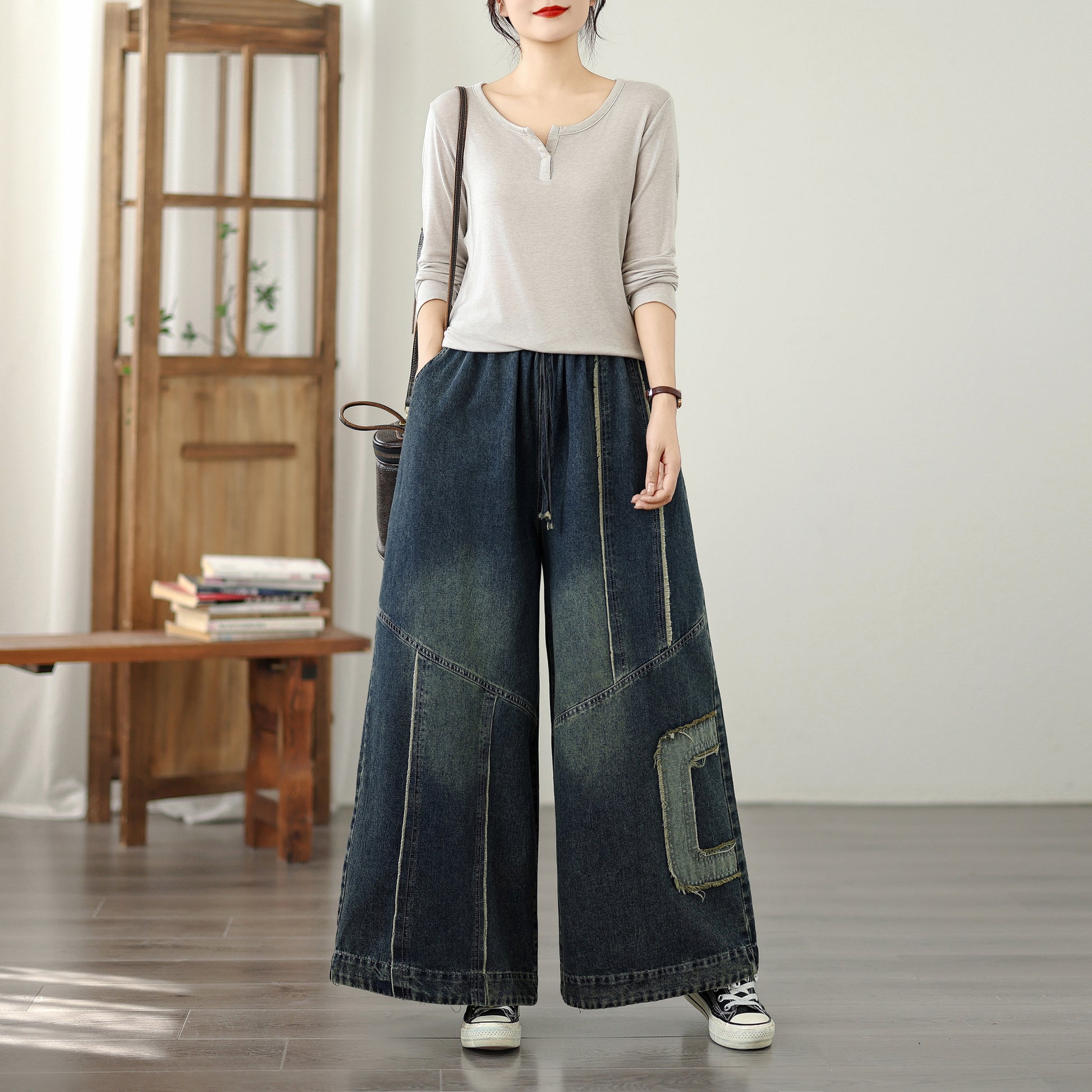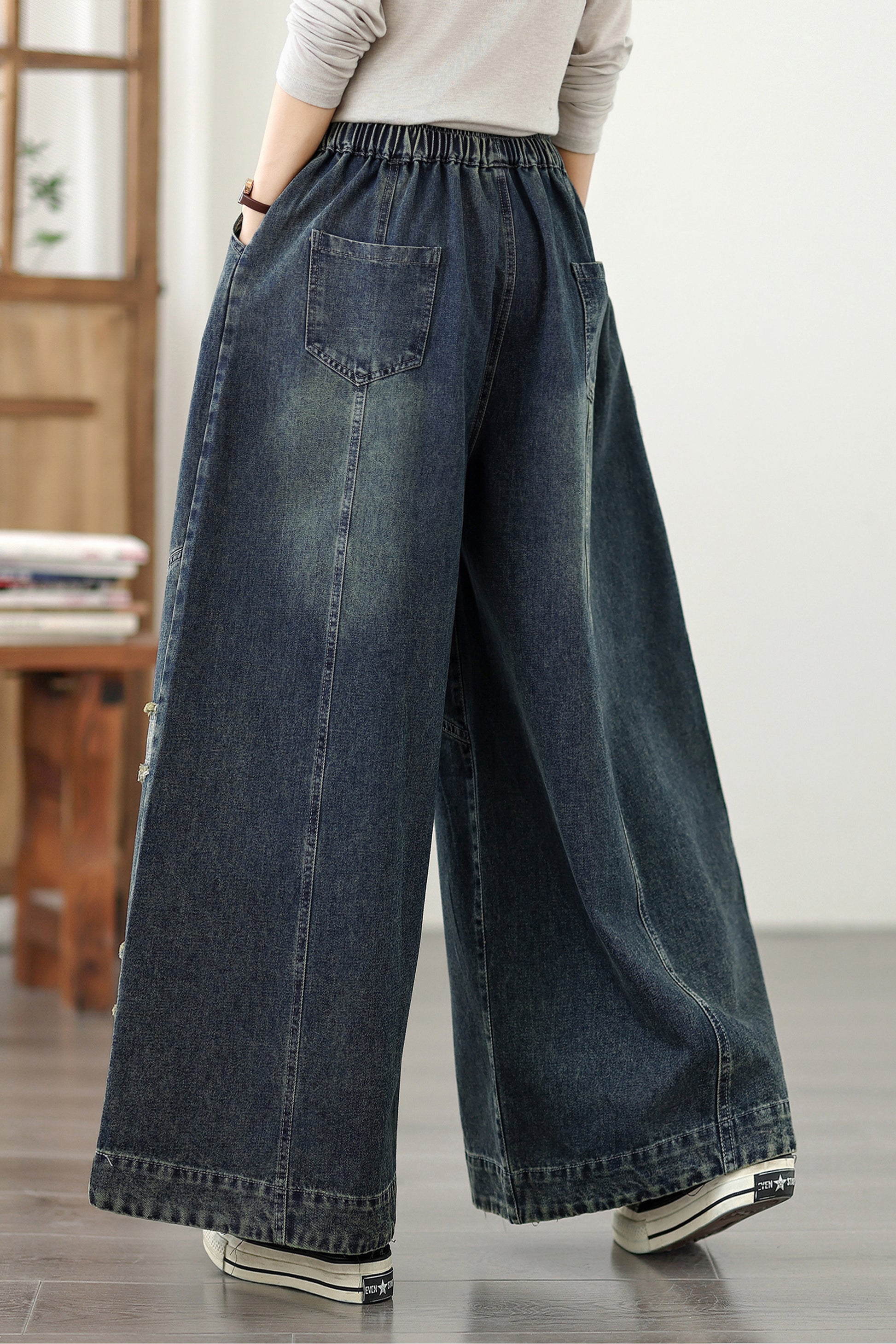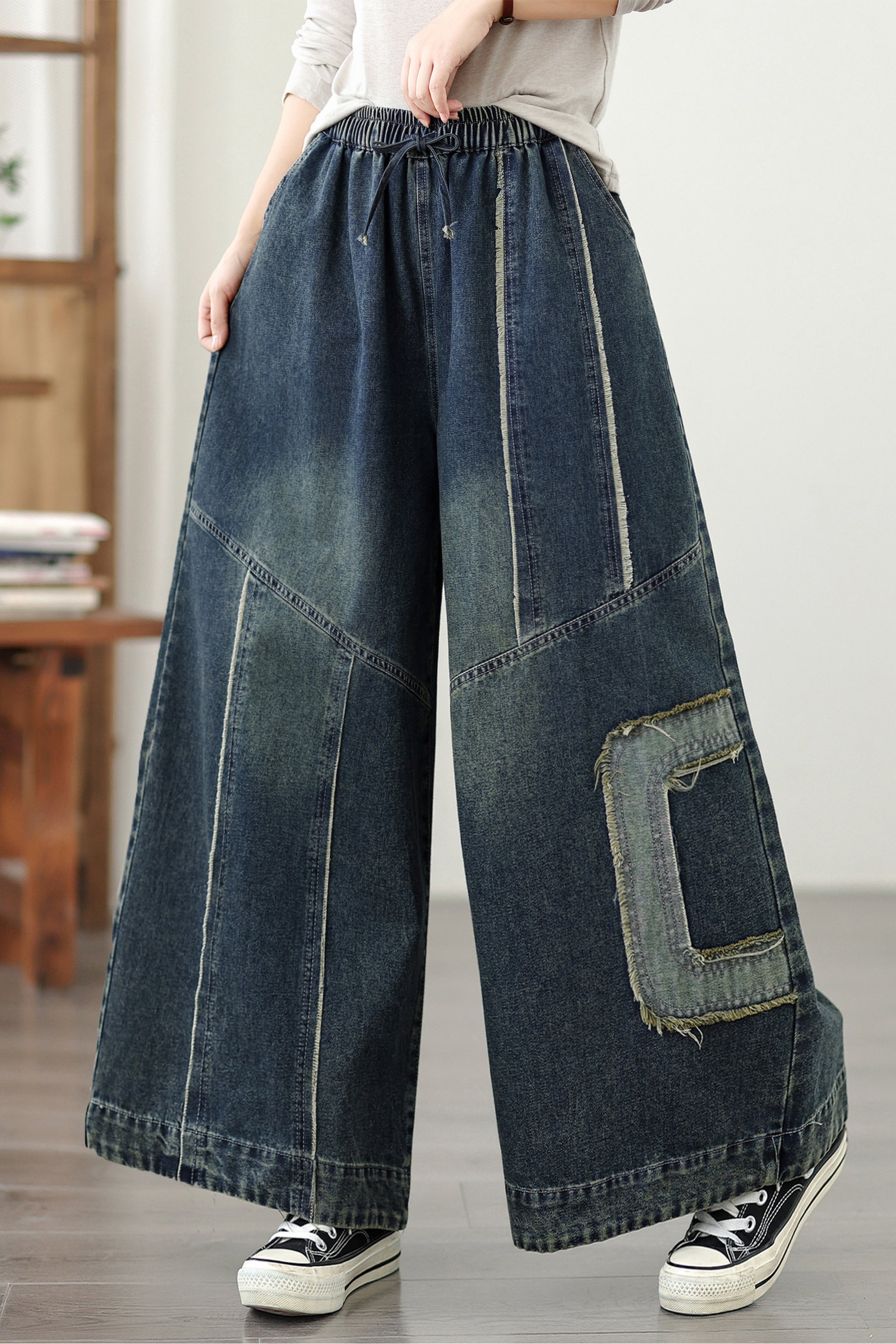 • Features: Baggy jeans for woman,Fashion jeans,Casual loose,Elastic waisted, denim, wide leg jeans, Classic denim, flared, Double pockets. If you love wide-leg baggy jeans, this is definitely the best choice for you.