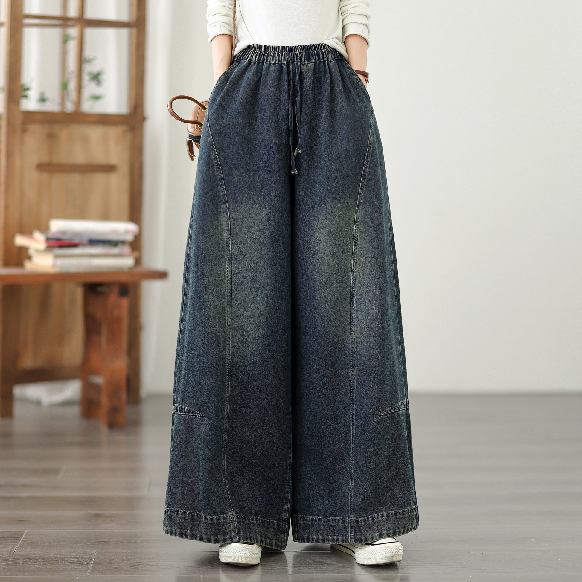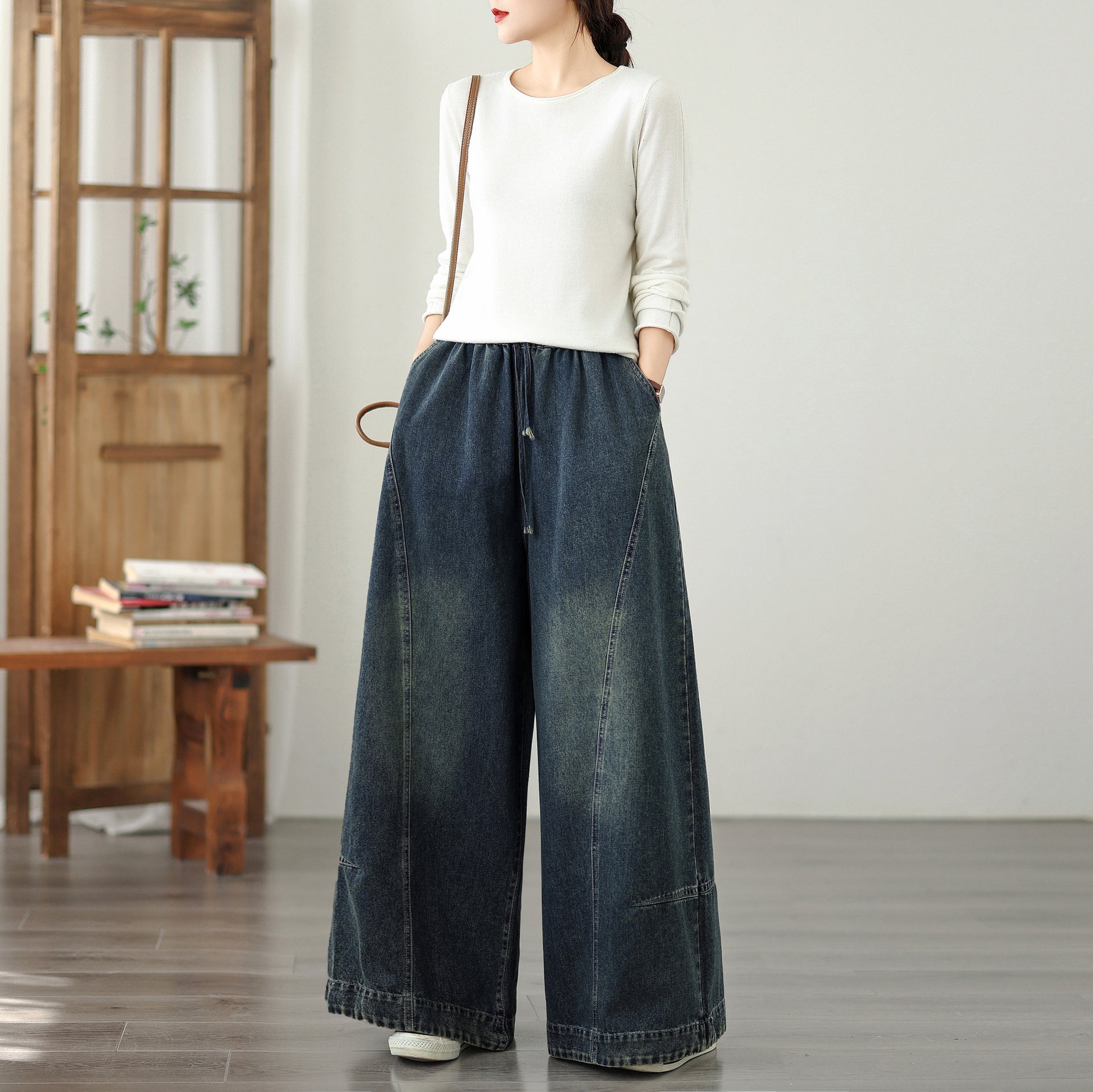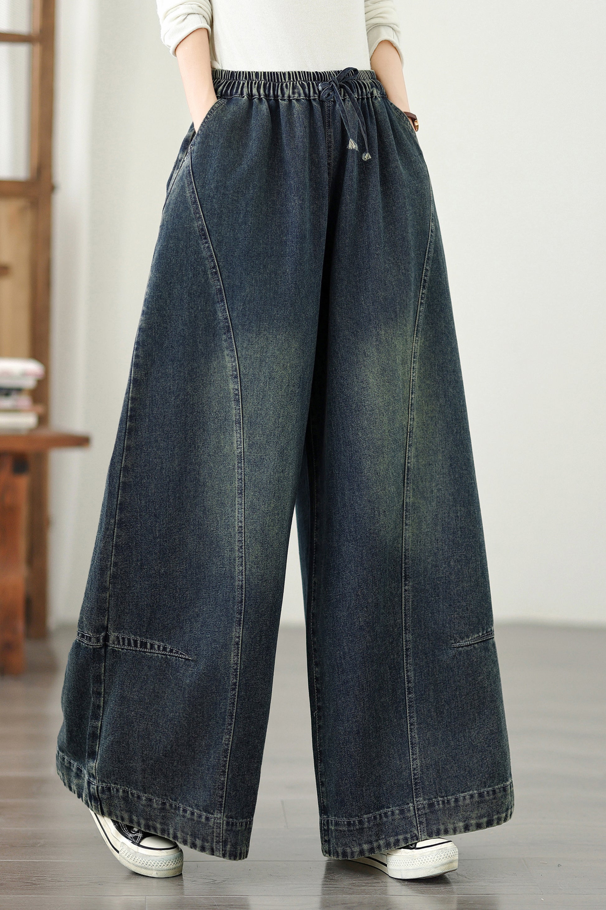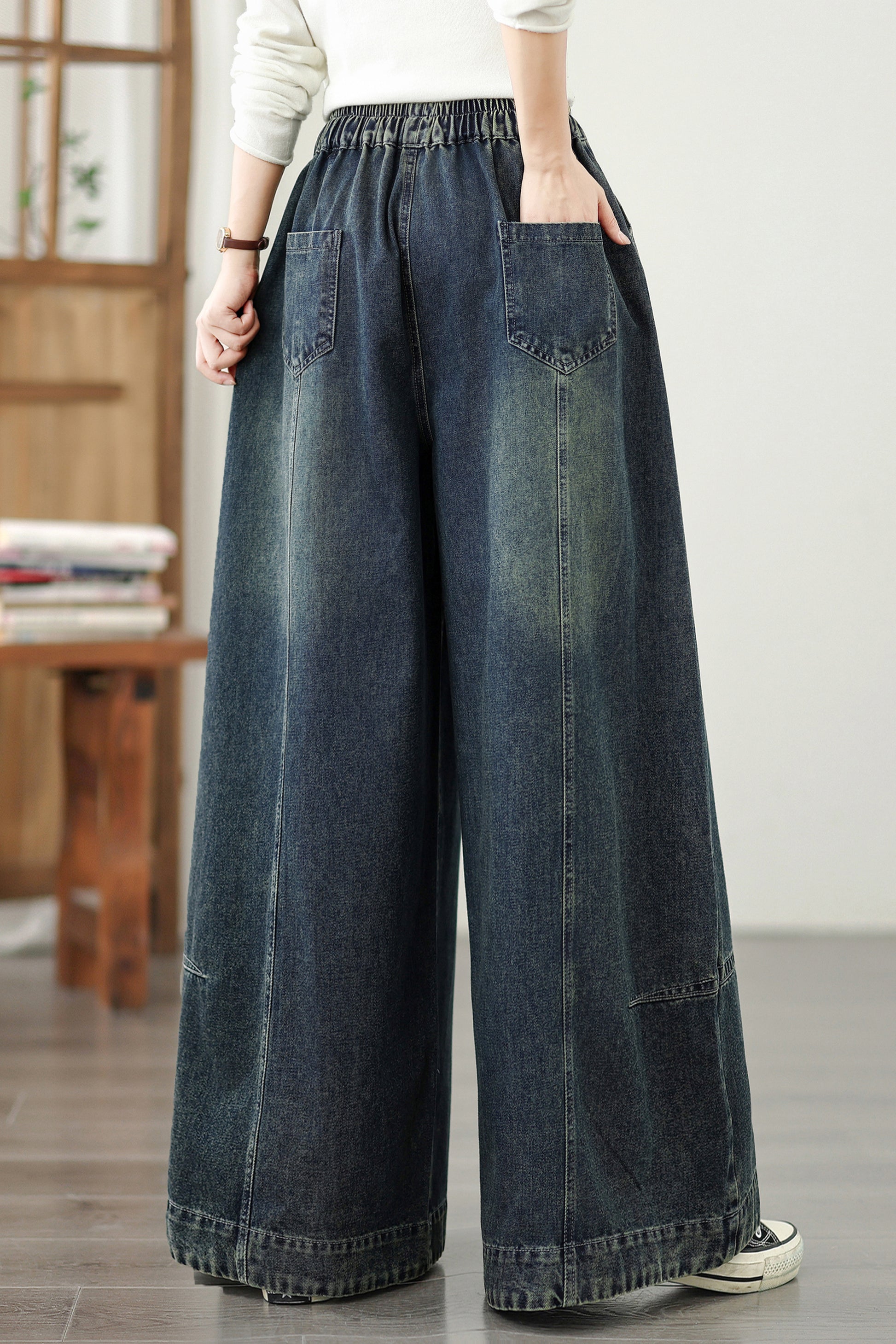 • Features: Baggy jeans for woman,Fashion jeans,Casual loose,Elastic waisted, denim, wide leg jeans, Classic denim, flared, Double pockets. If you love wide-leg baggy jeans, this is definitely the best choice for you.