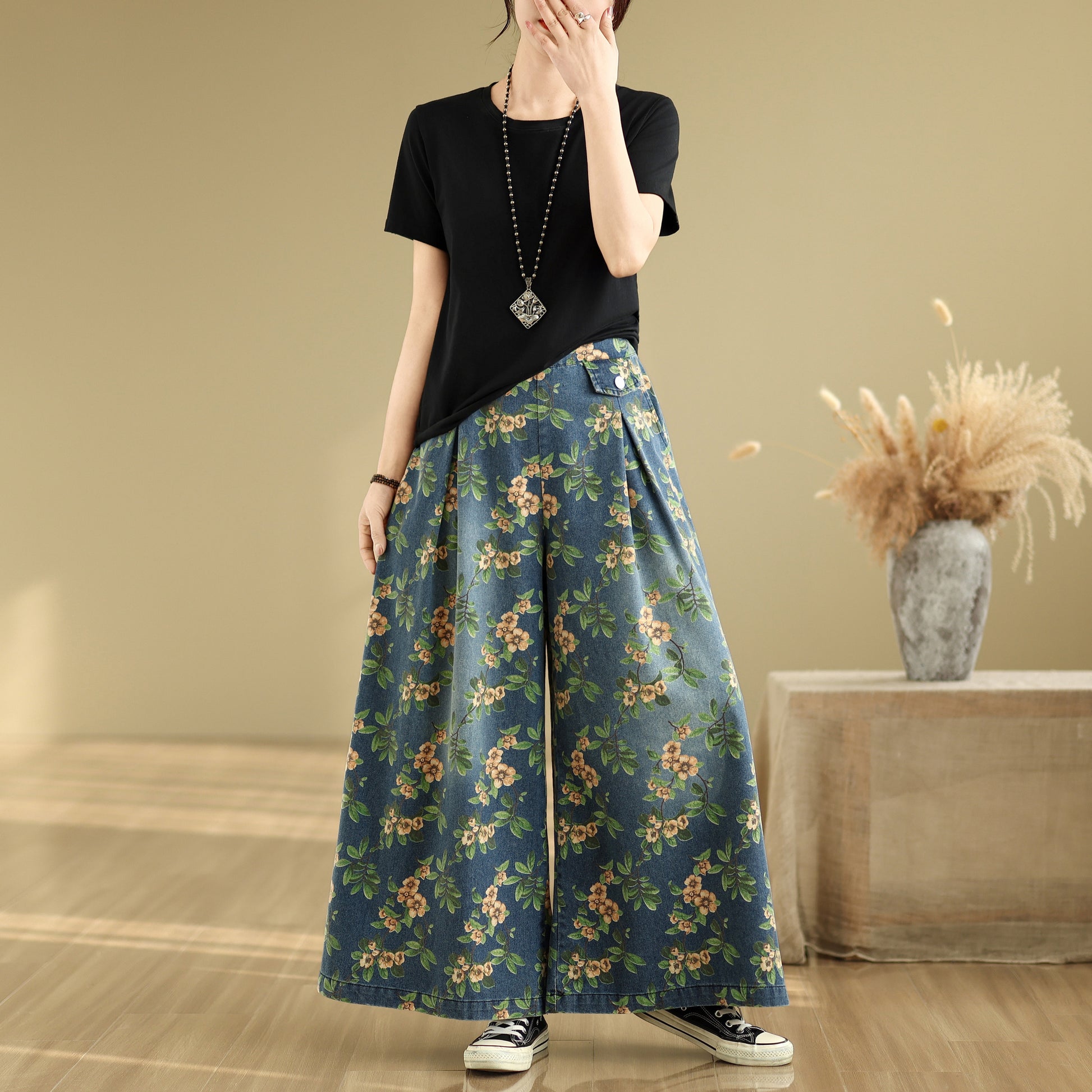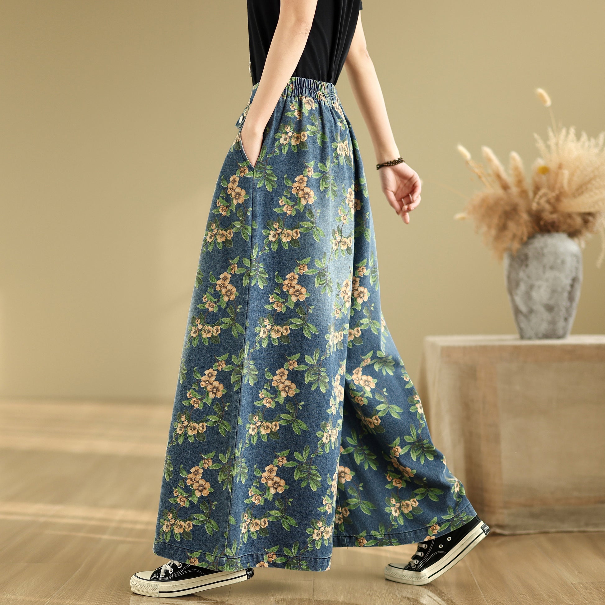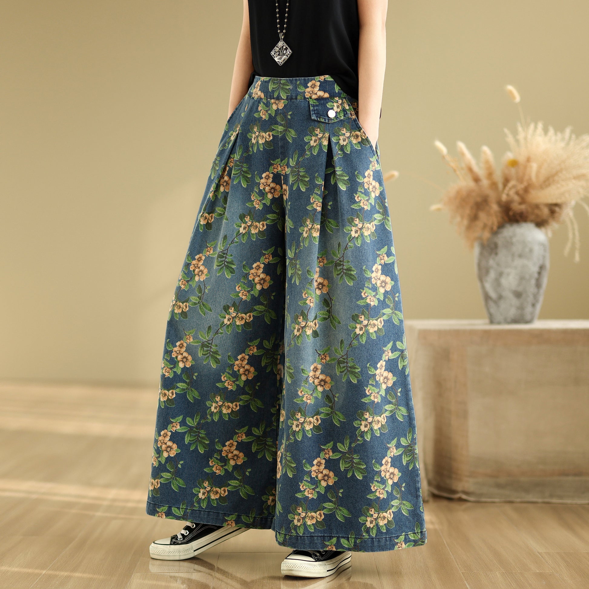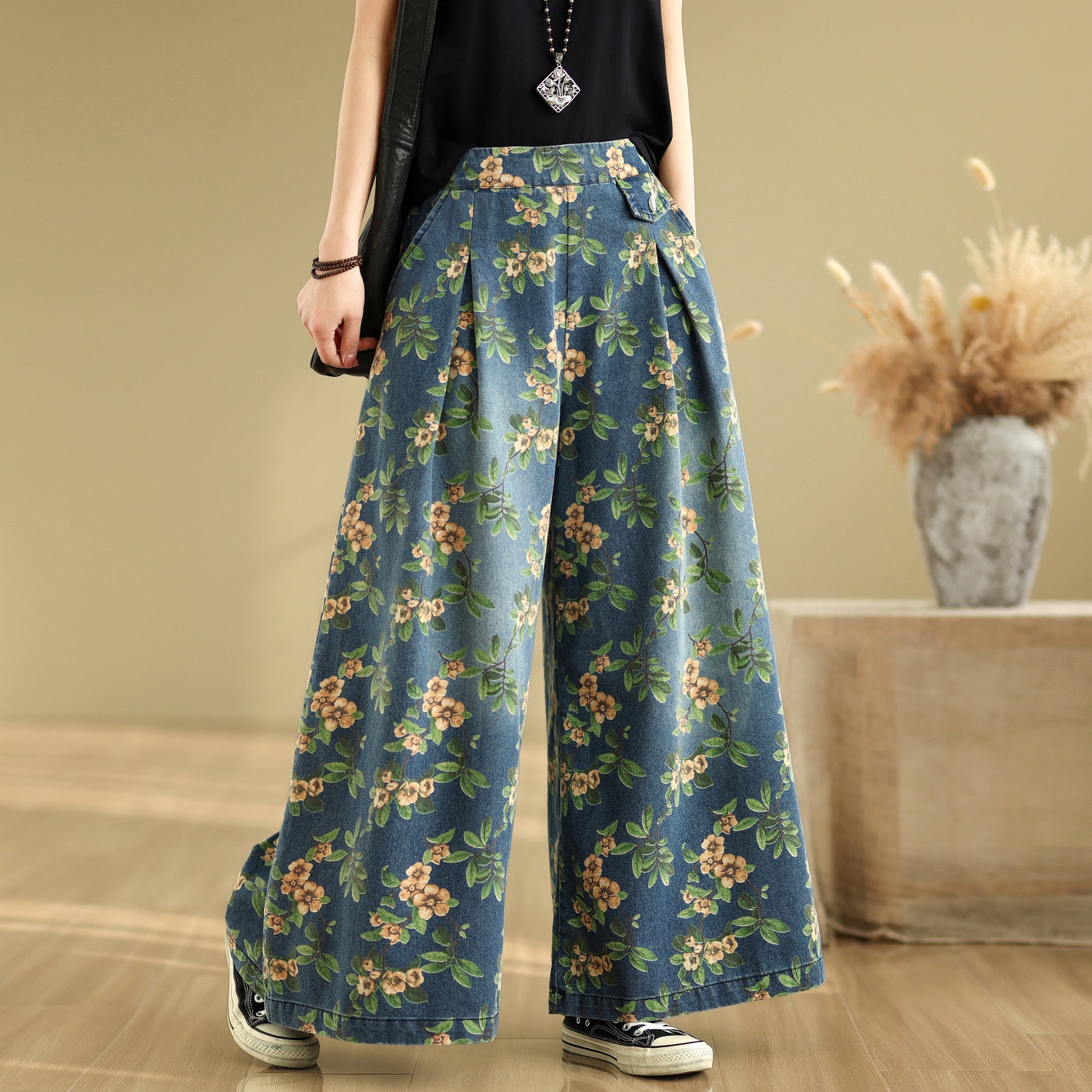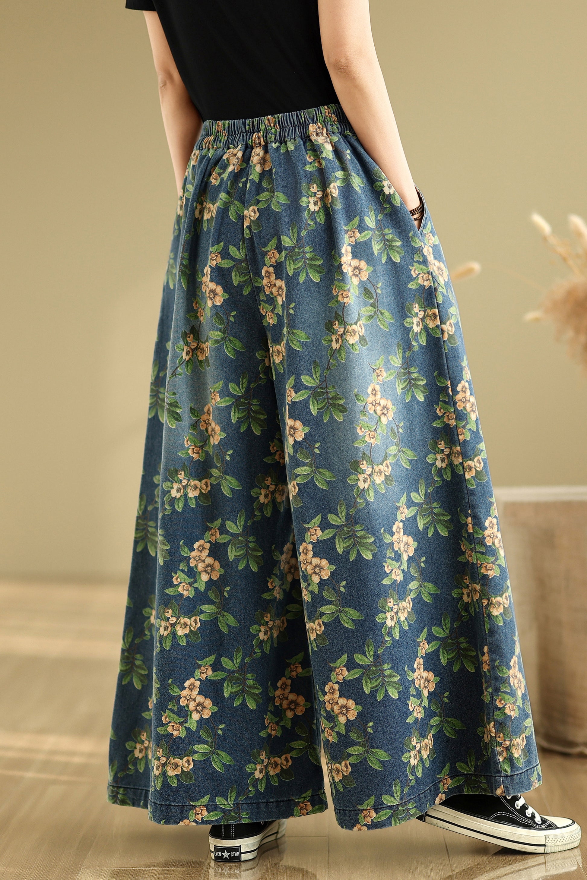 • Features: Fashion jeans,Casual loose,Elastic waisted, denim, Wide Leg, Classic denim, flared, Double pockets. If you love wide-leg baggy jeans, this is definitely the best choice for you.