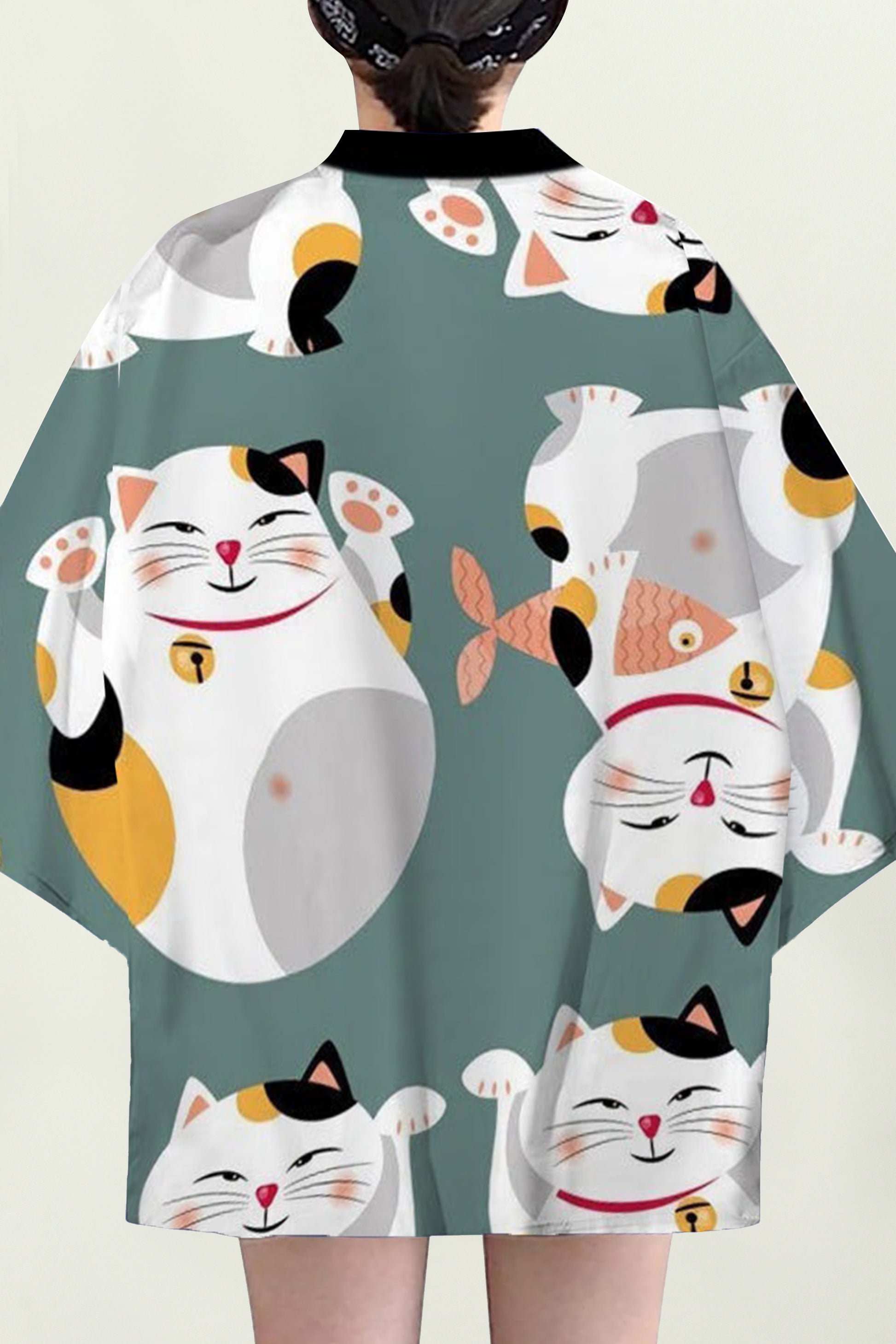 Women's Lucky Cat Cardigan Kimono Cover up Tops