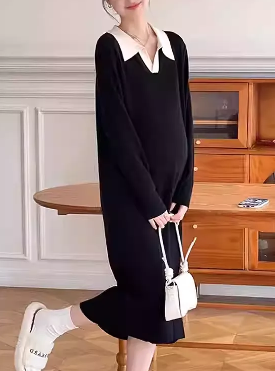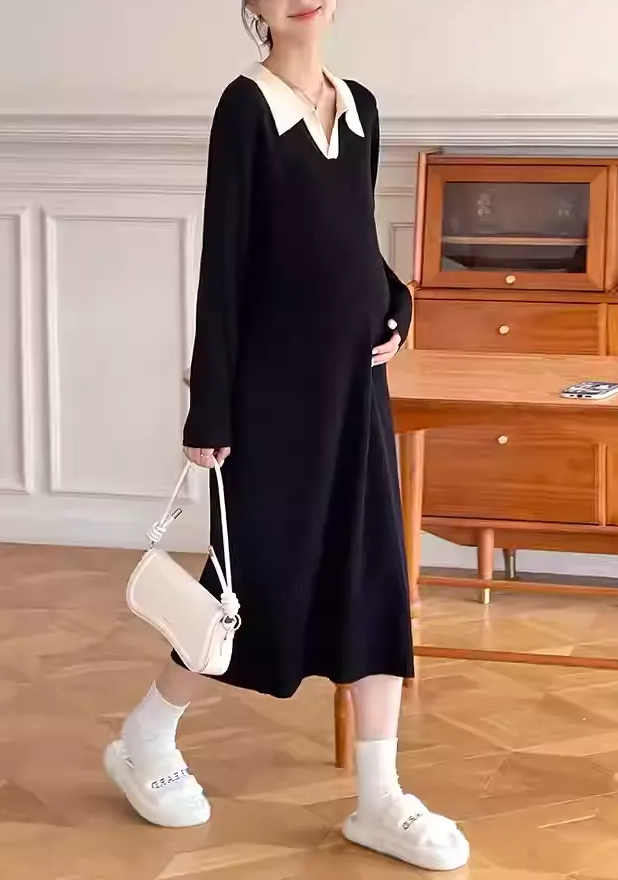 • Features: Knitted dress, polo dress, V-neck, loose knitted dress, stretch fabric, knitted maternity wear, casual dress.