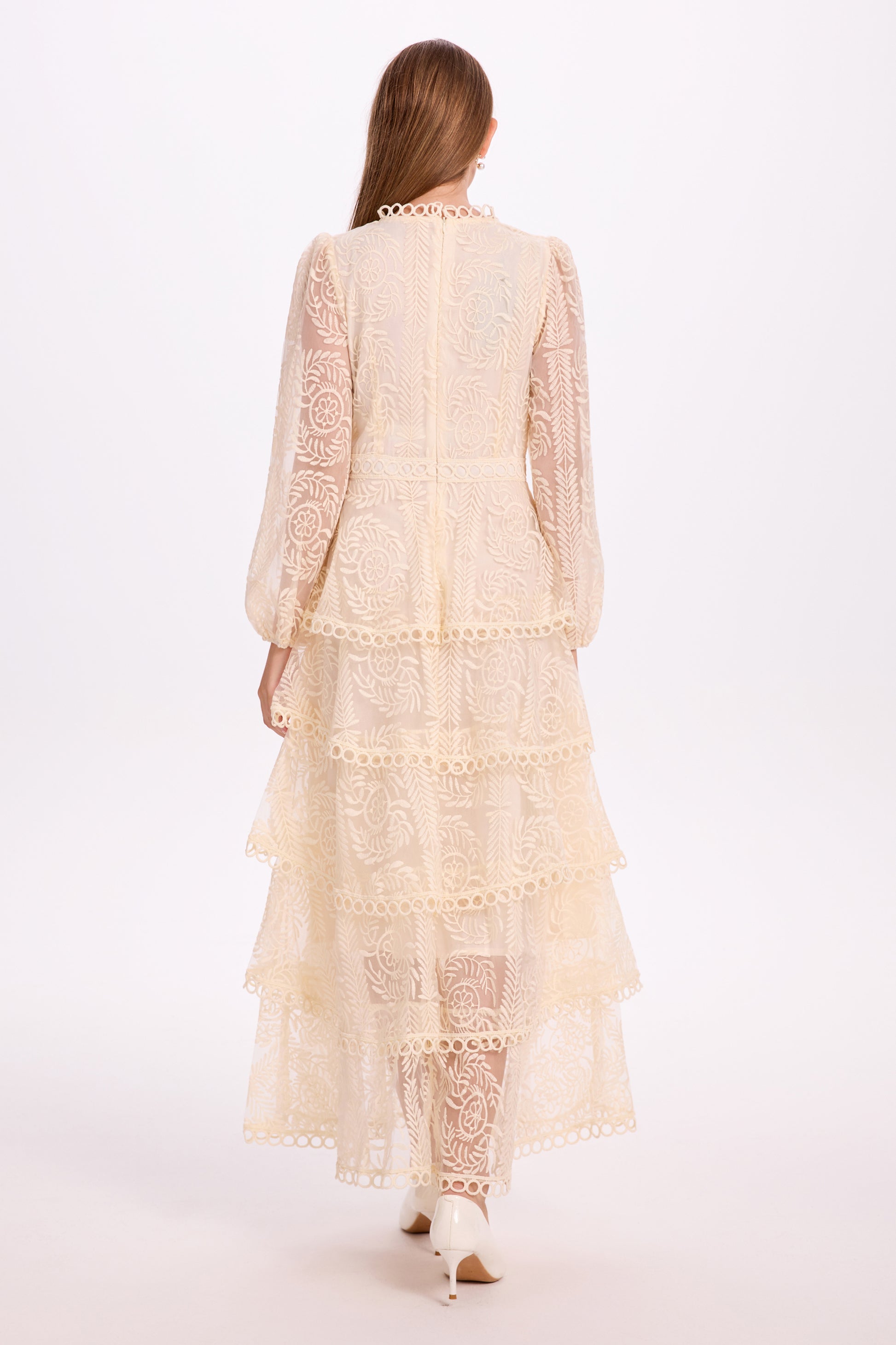 Women's Mesh Embroidery Ruffle Tiered Layered Maxi Dress