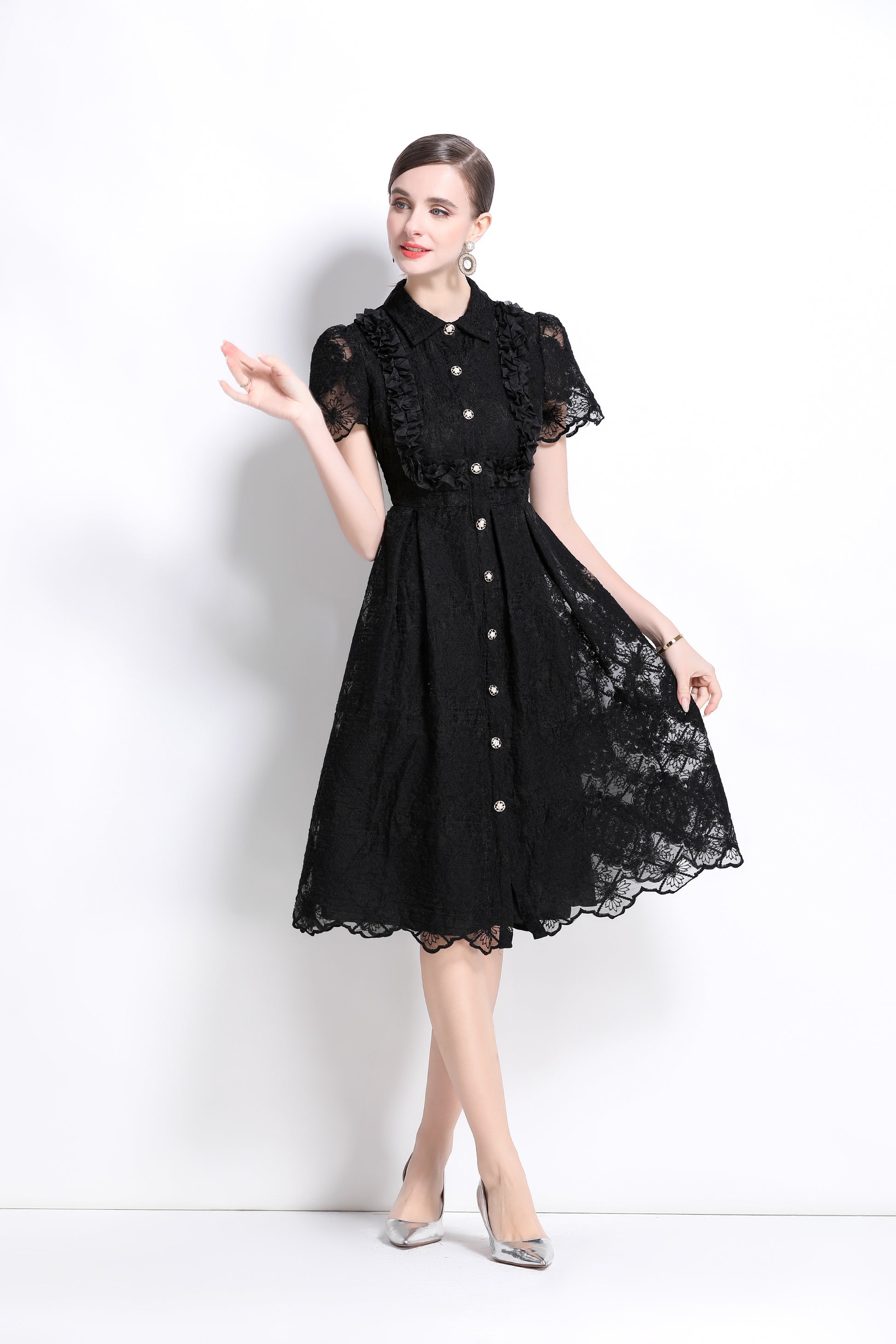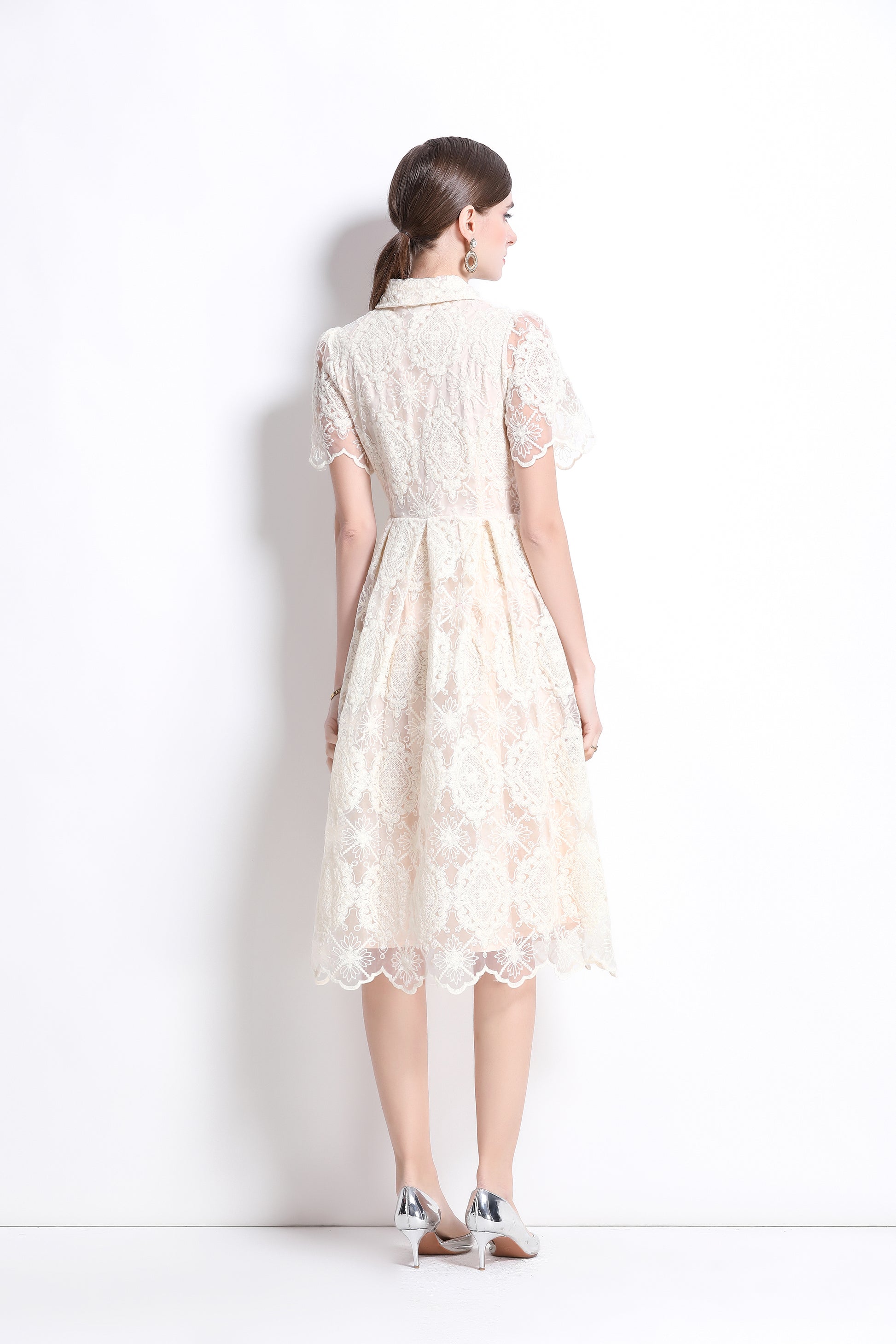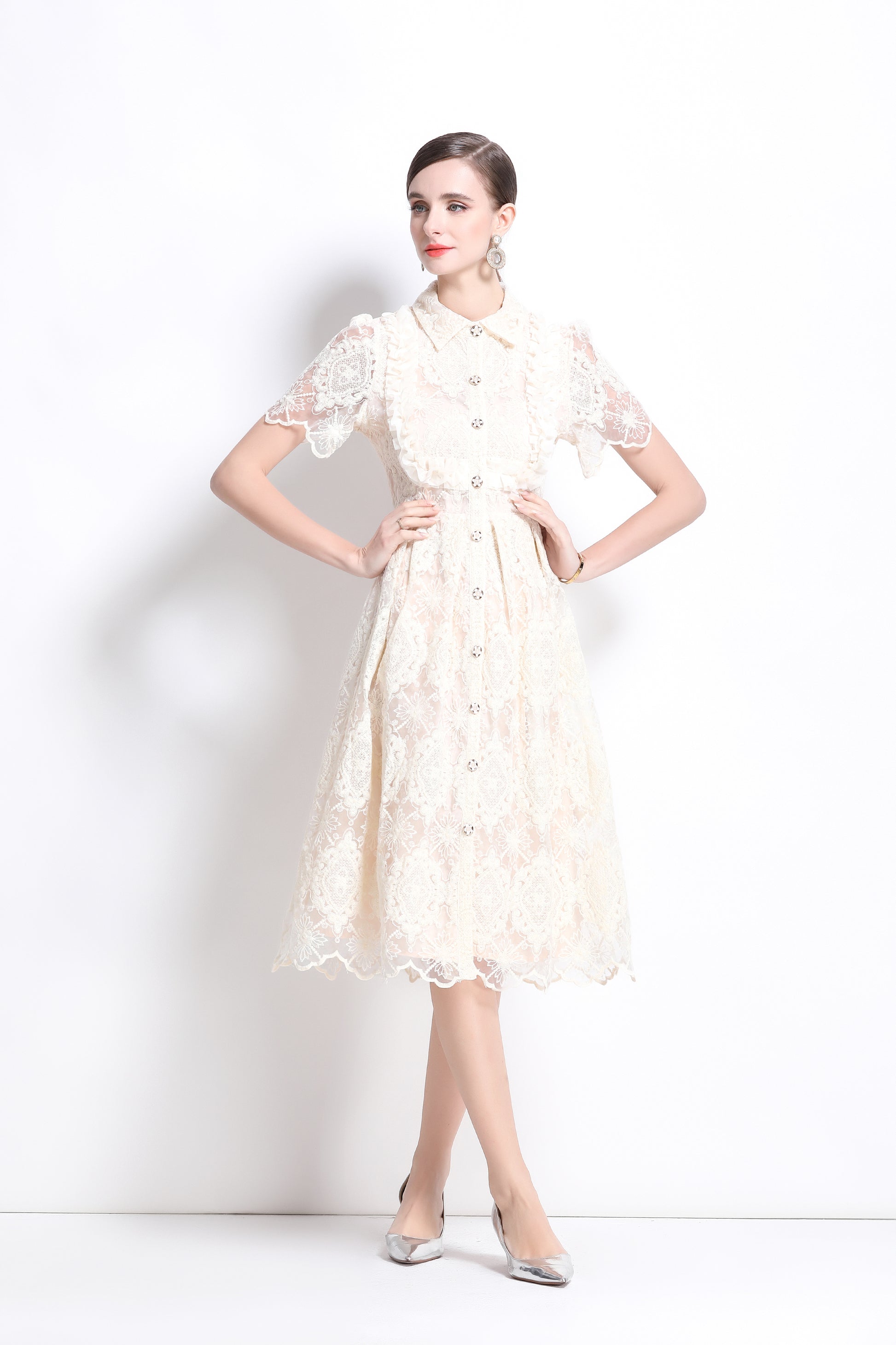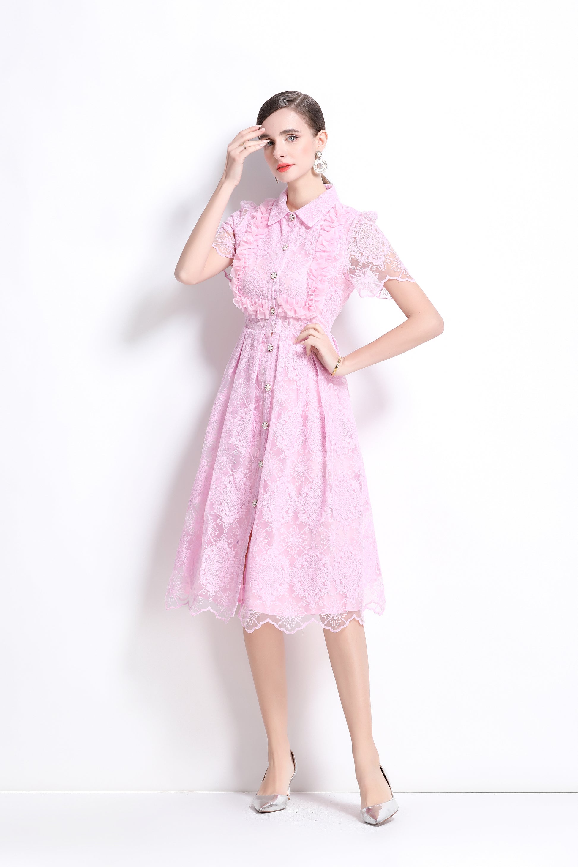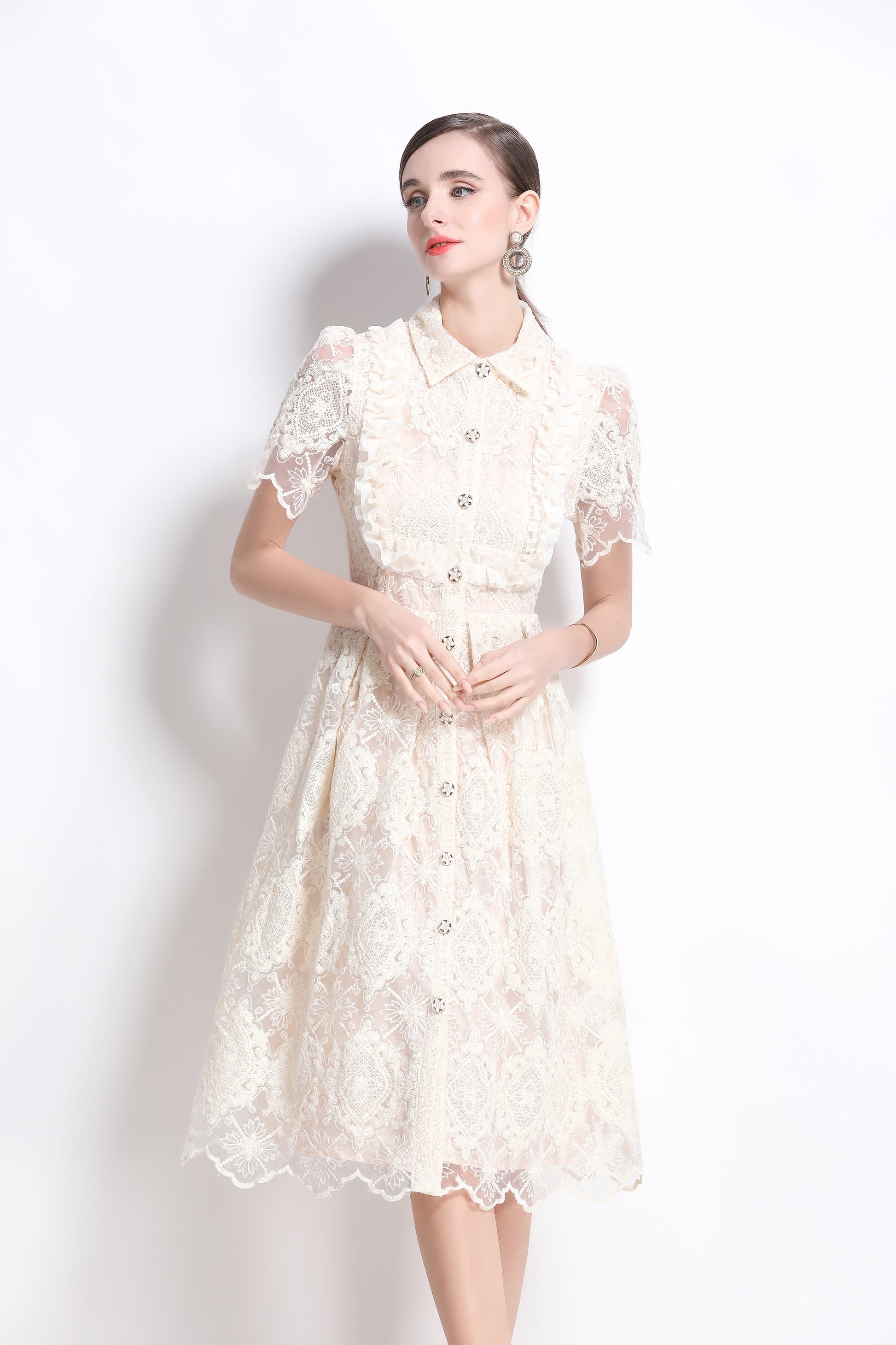 - Features: Shirt collar, front buttons, mesh embroidery, short sleeves, ruffles, lining, pleats, a-line, made of high-quality mesh and embroidery fabrics, comfortable and breathable.