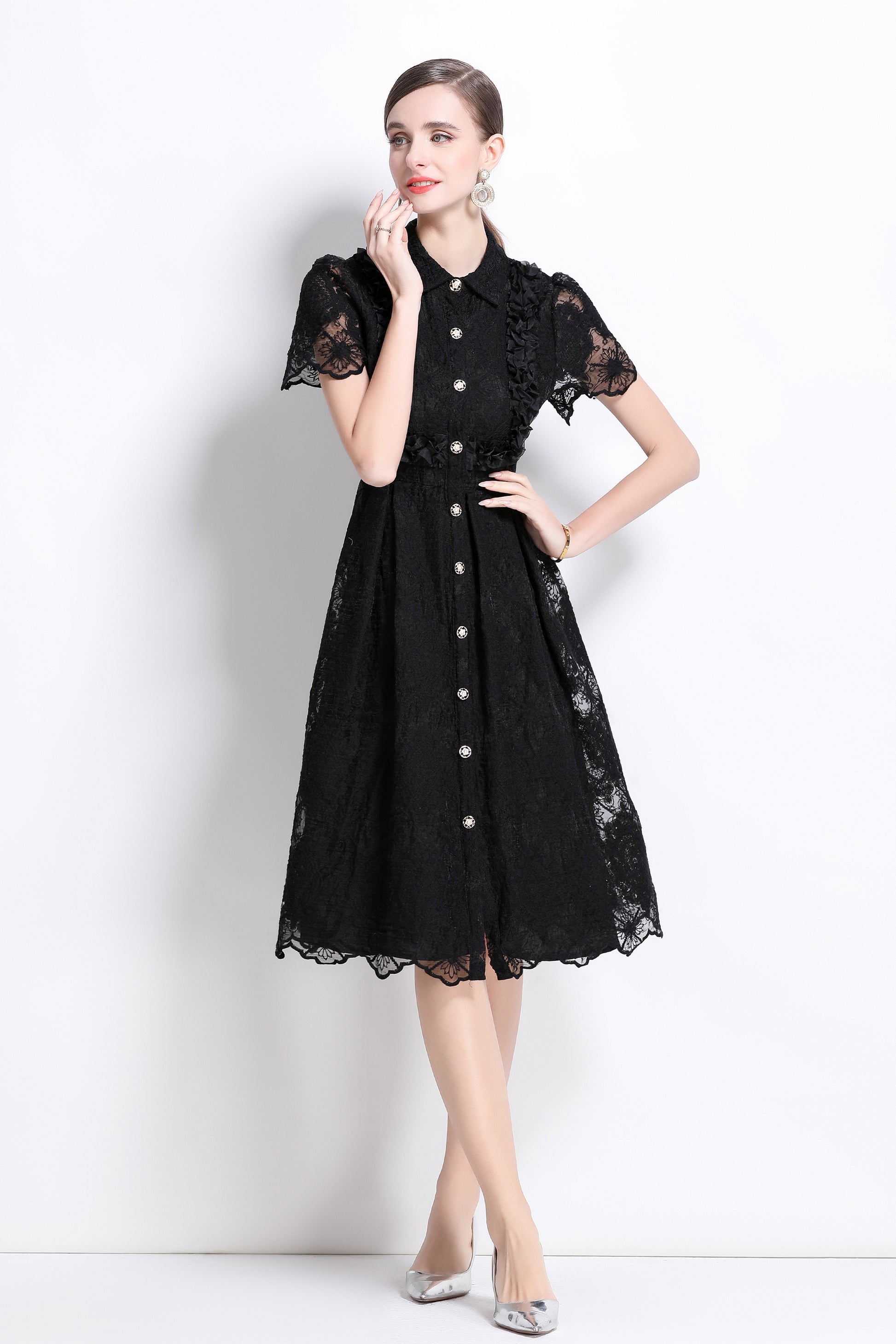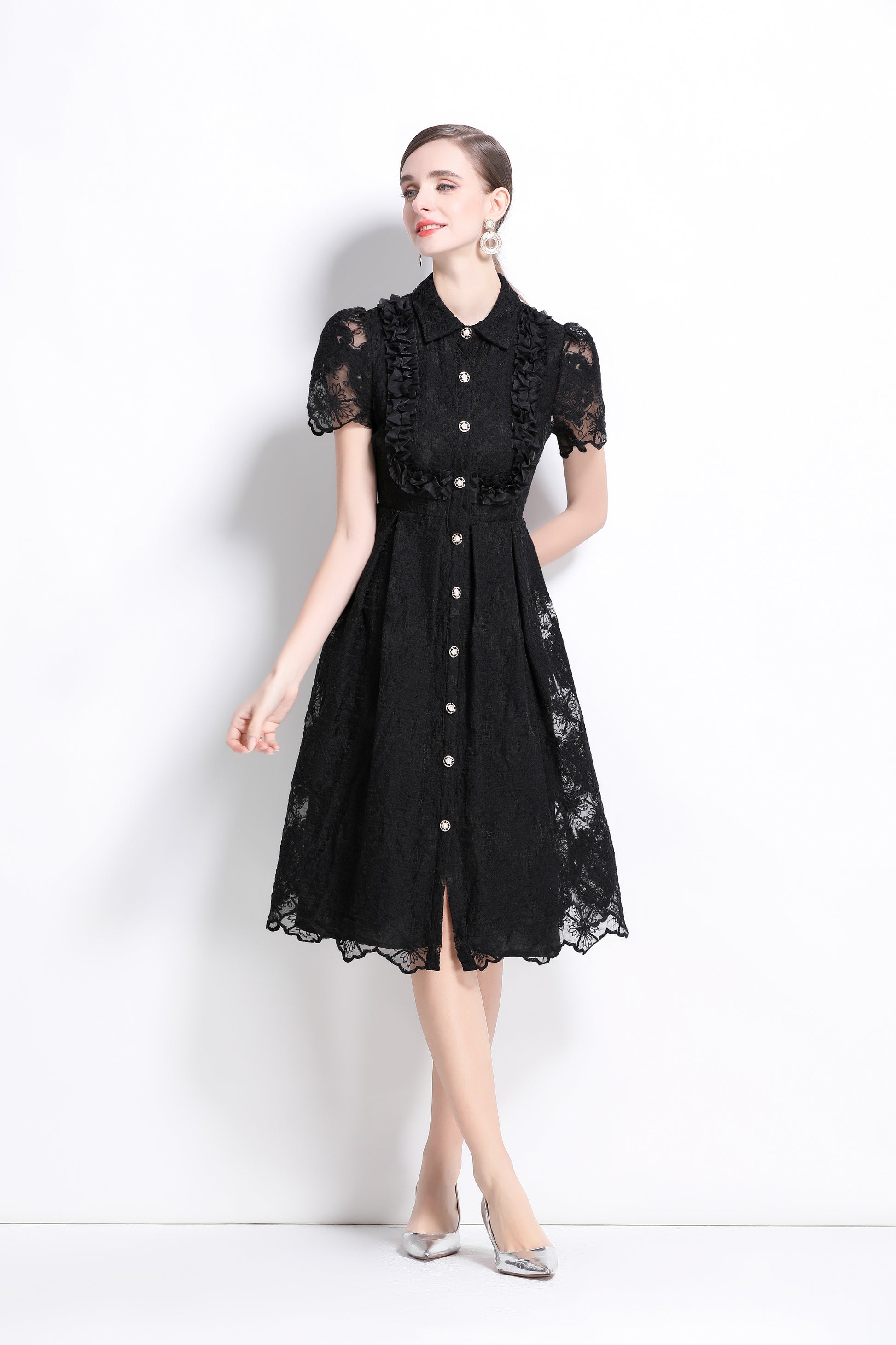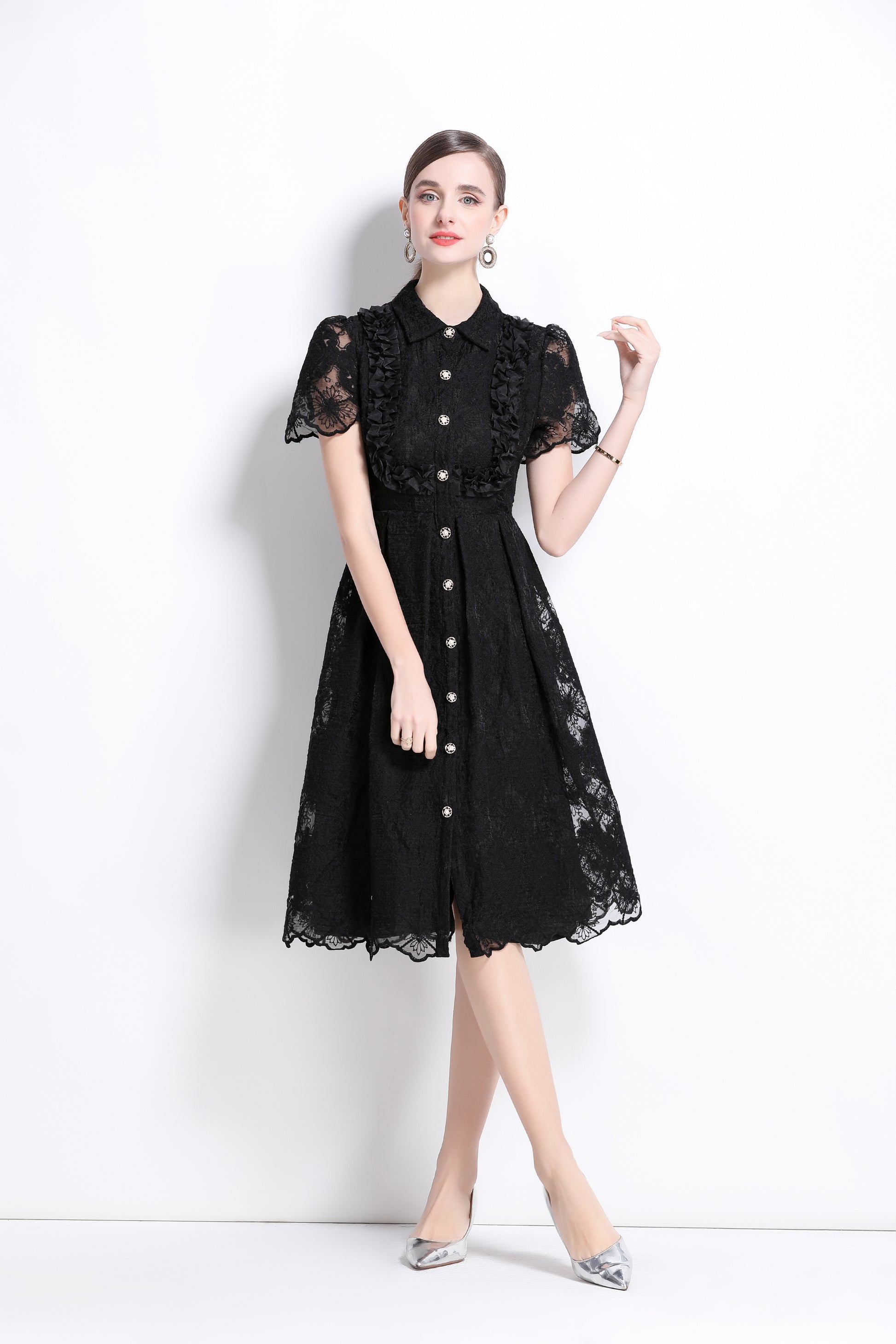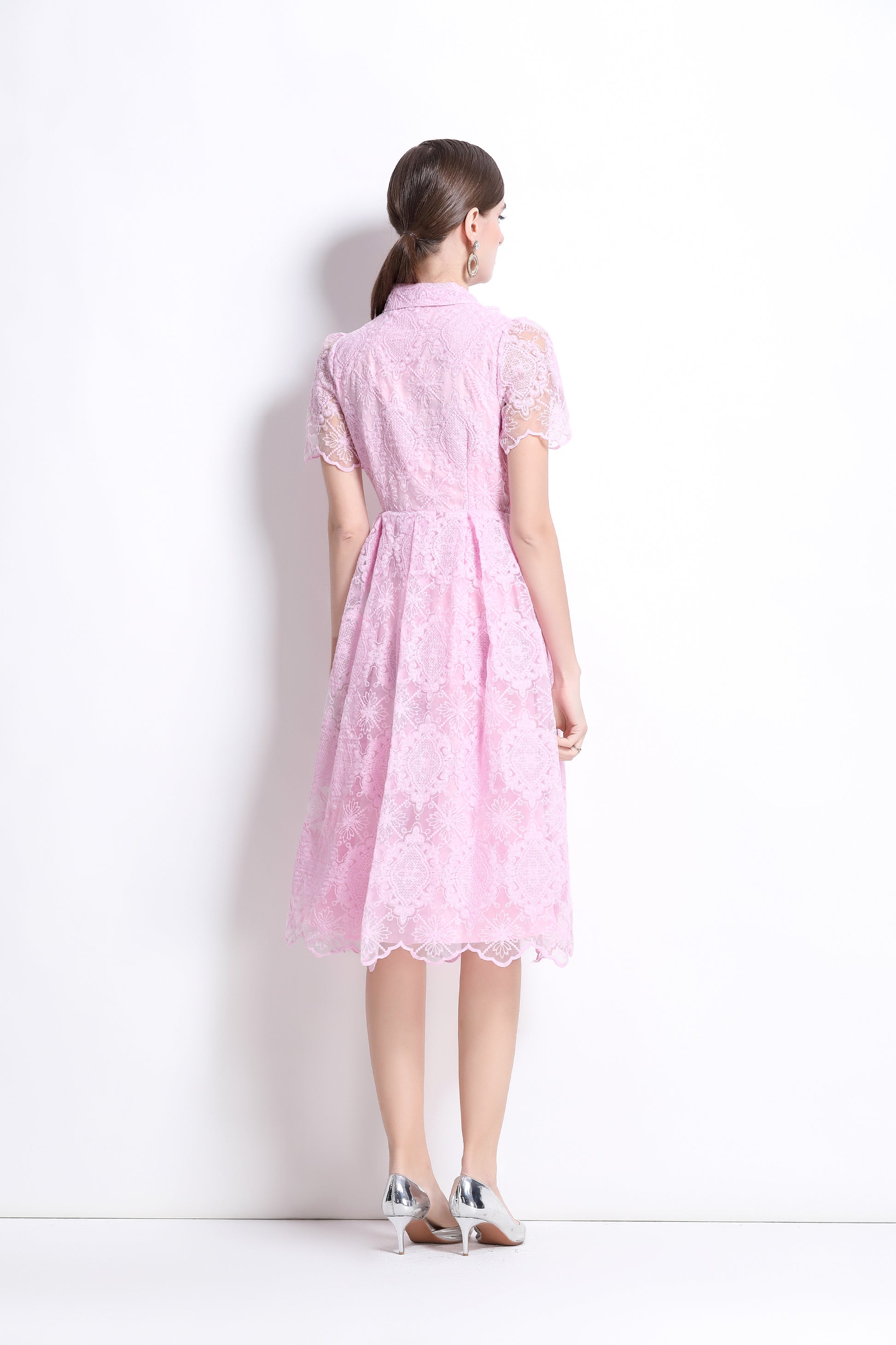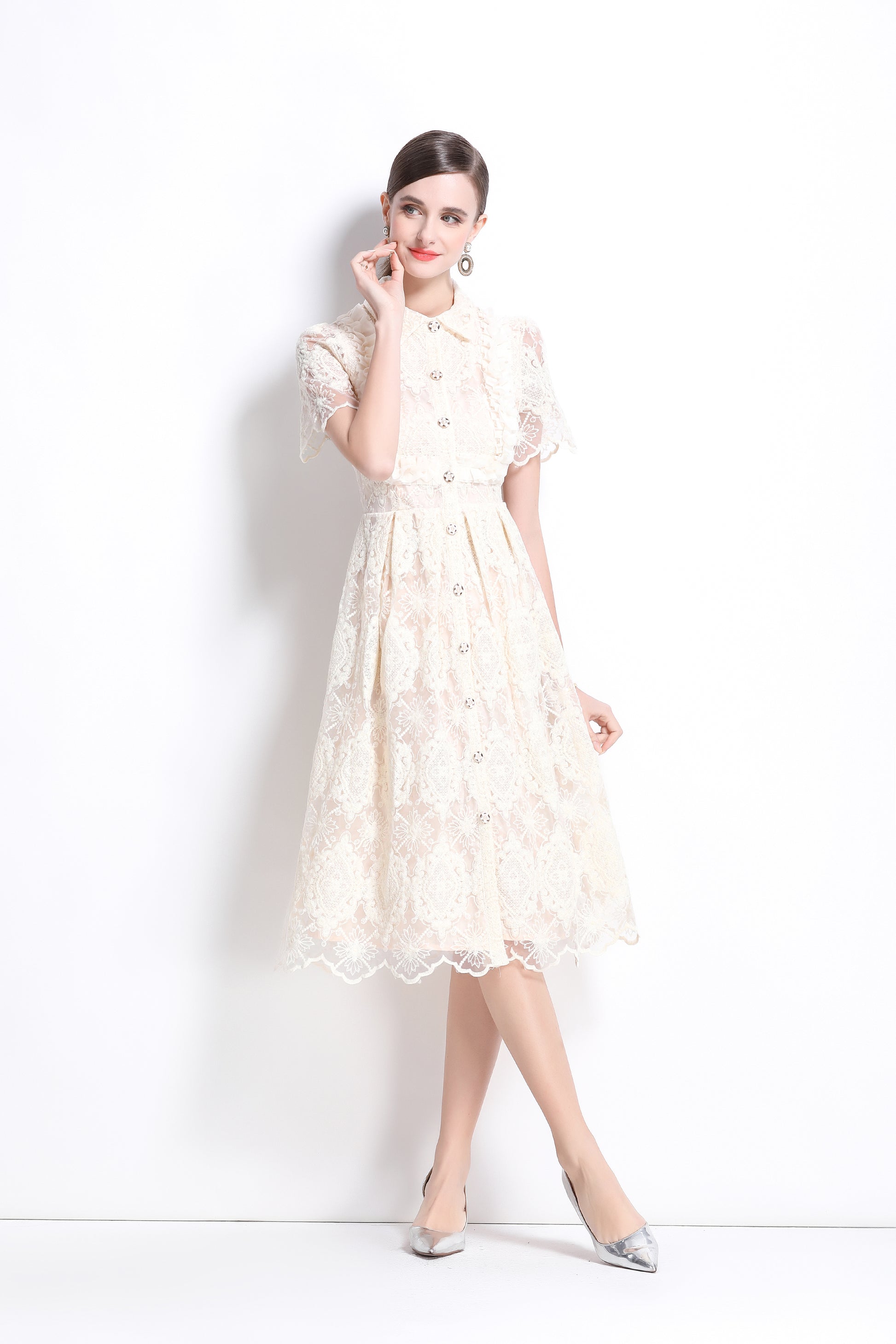 - Features: Shirt collar, front buttons, mesh embroidery, short sleeves, ruffles, lining, pleats, a-line, made of high-quality mesh and embroidery fabrics, comfortable and breathable.