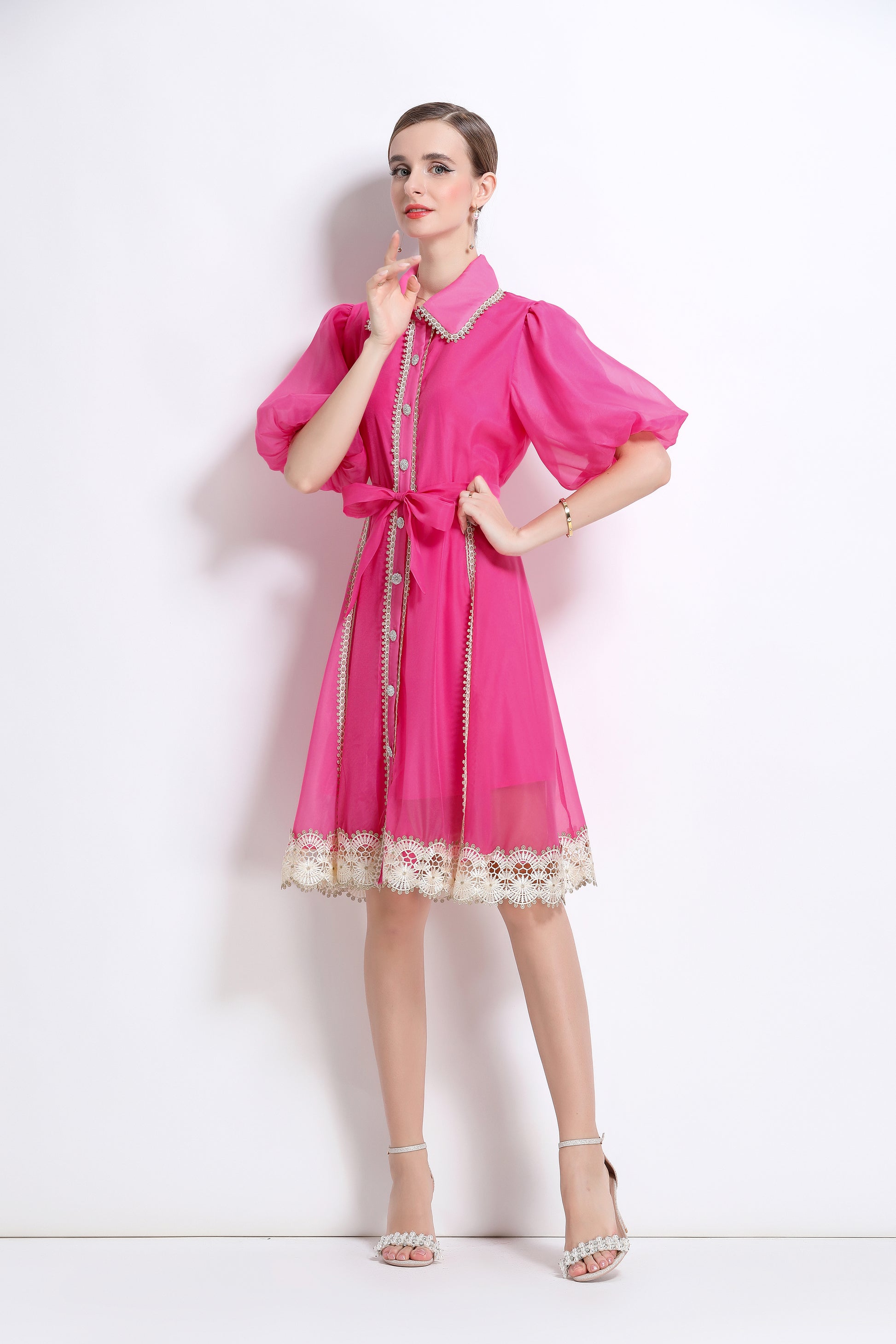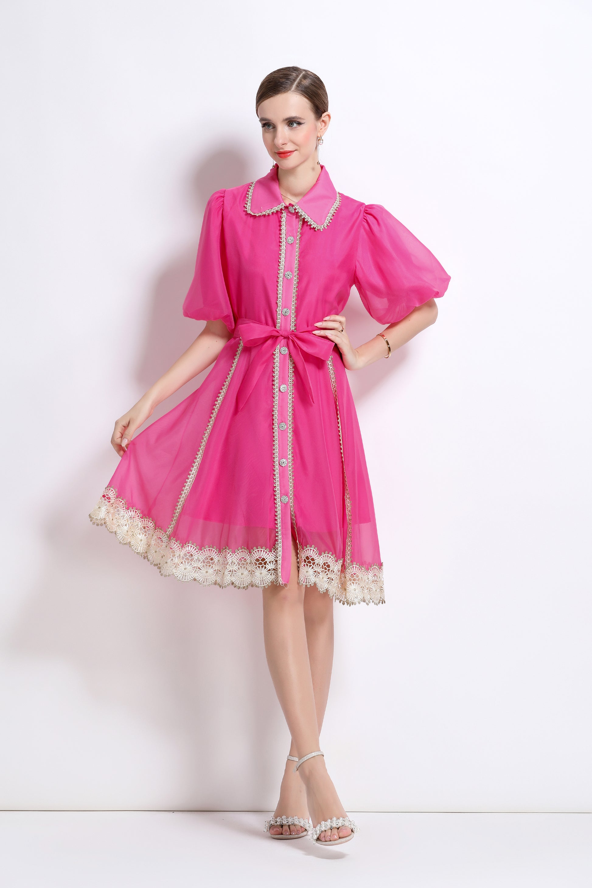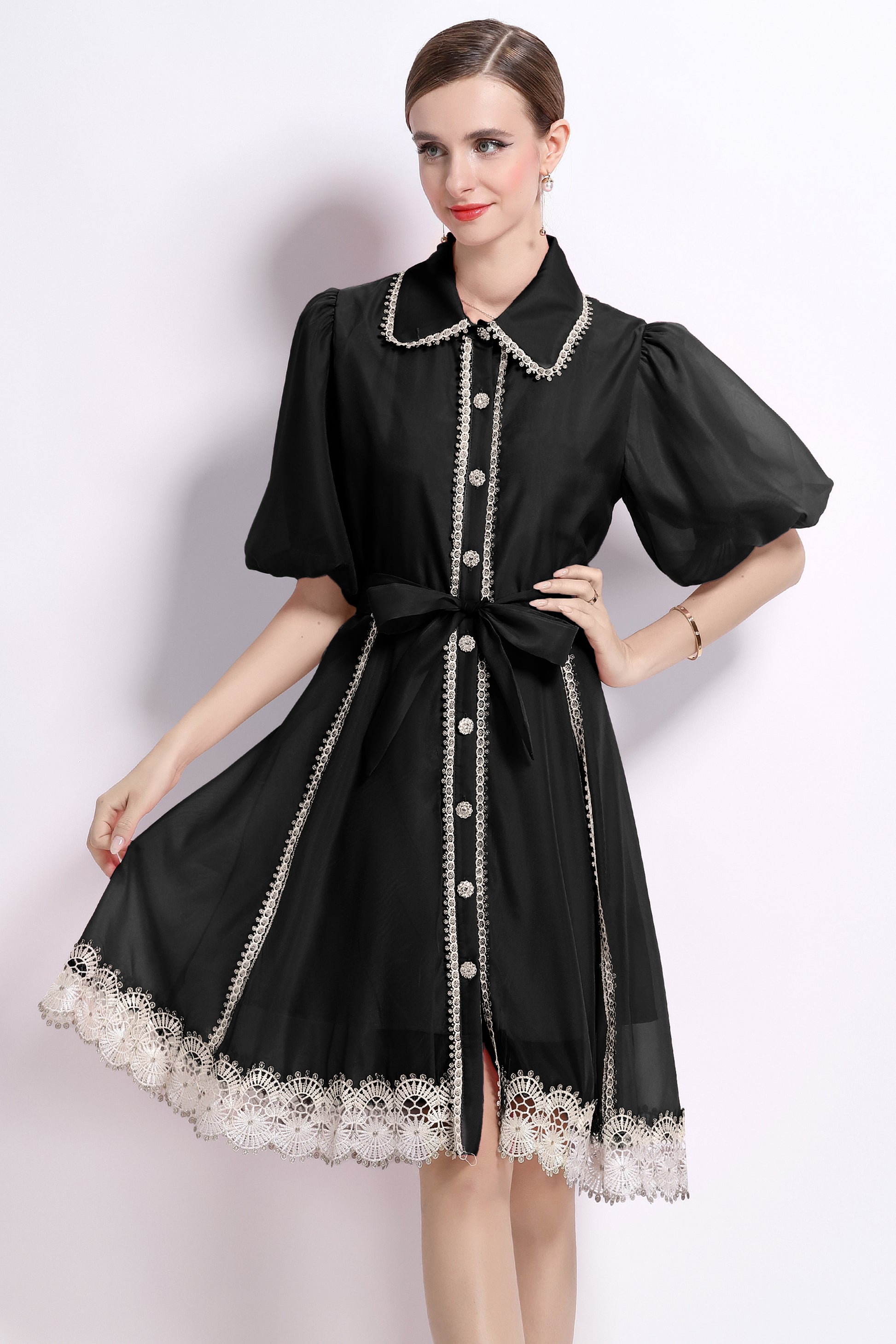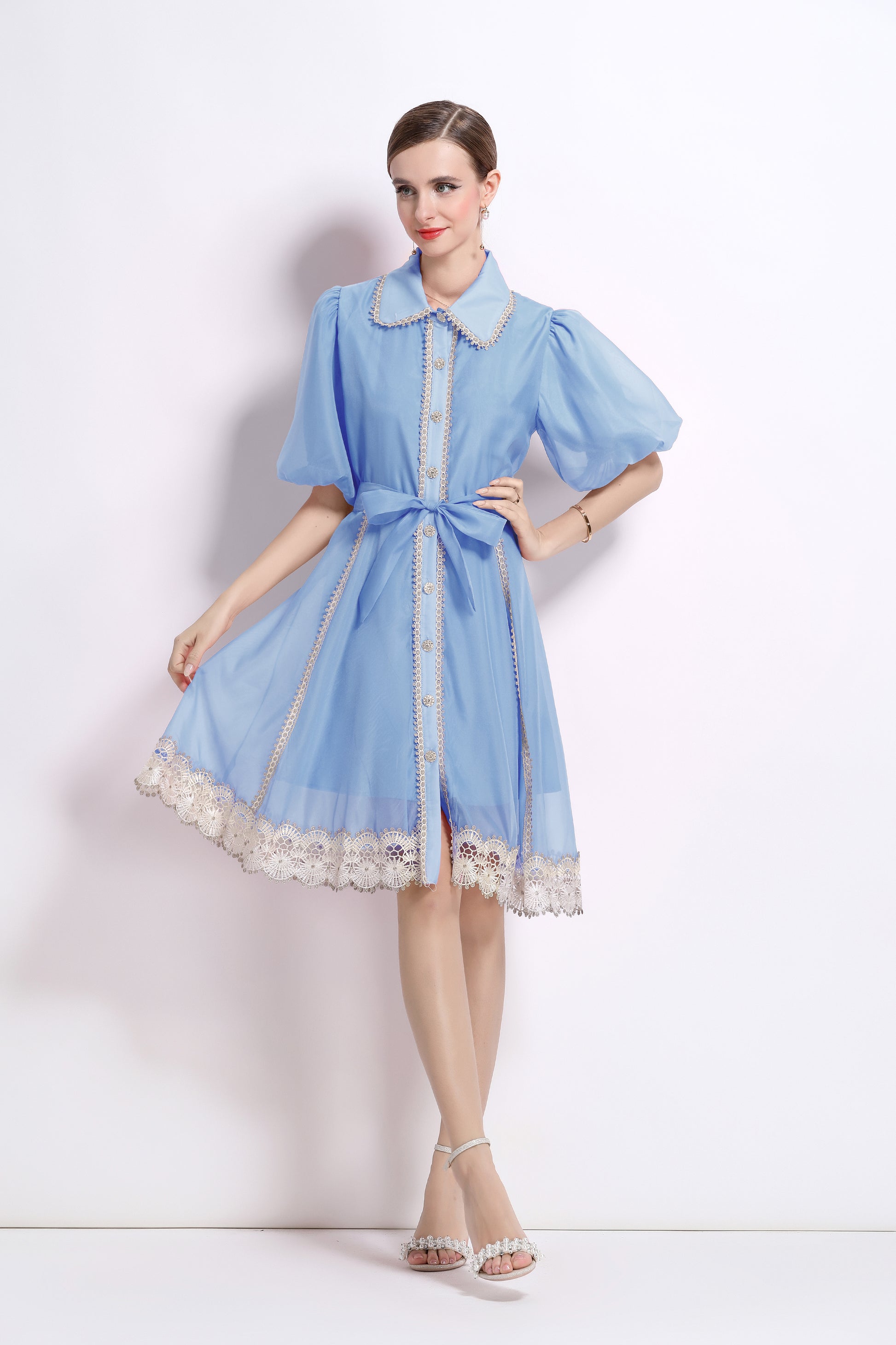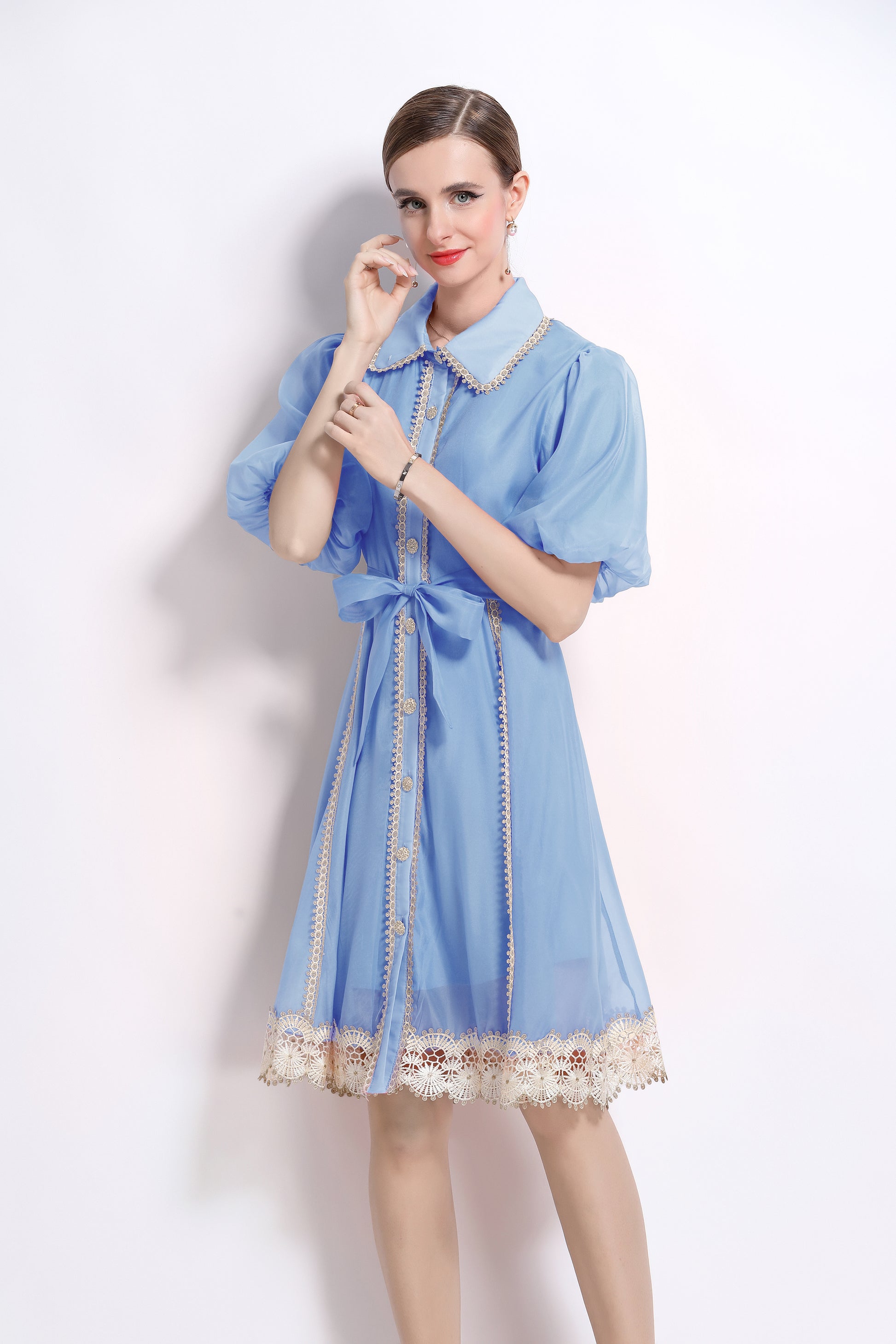 - Features: Summer, lapel neck, front button, lace trim, organza, lantern sleeve,a-line.