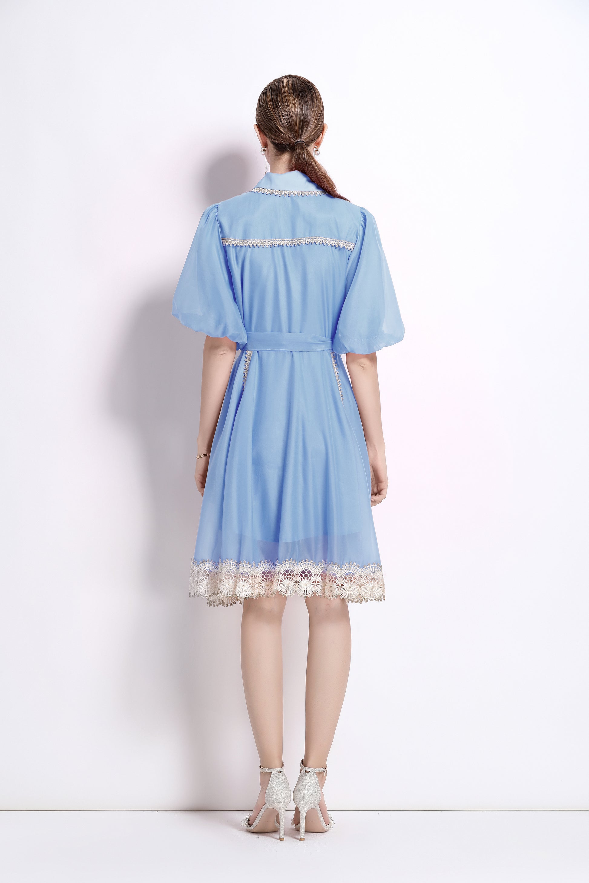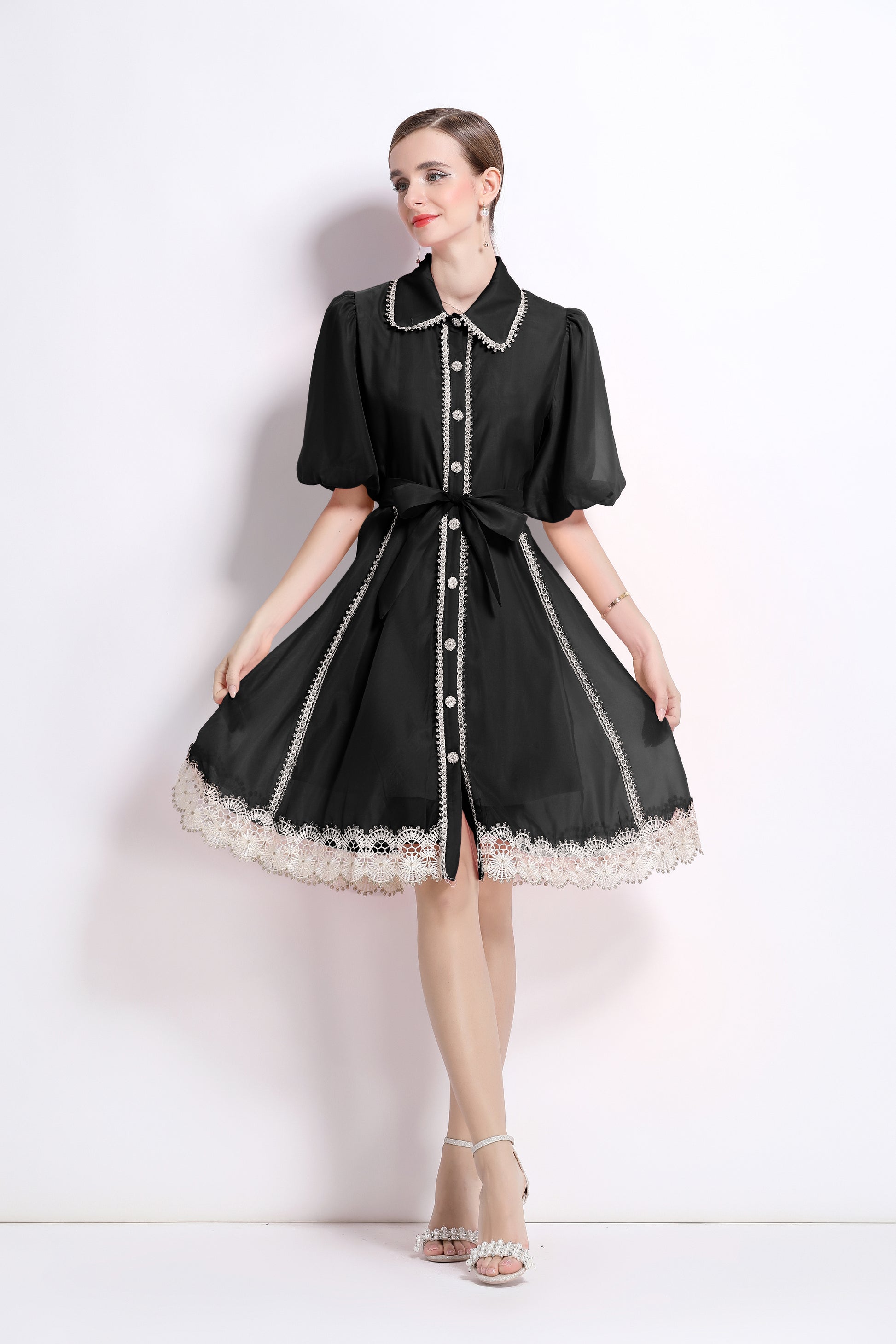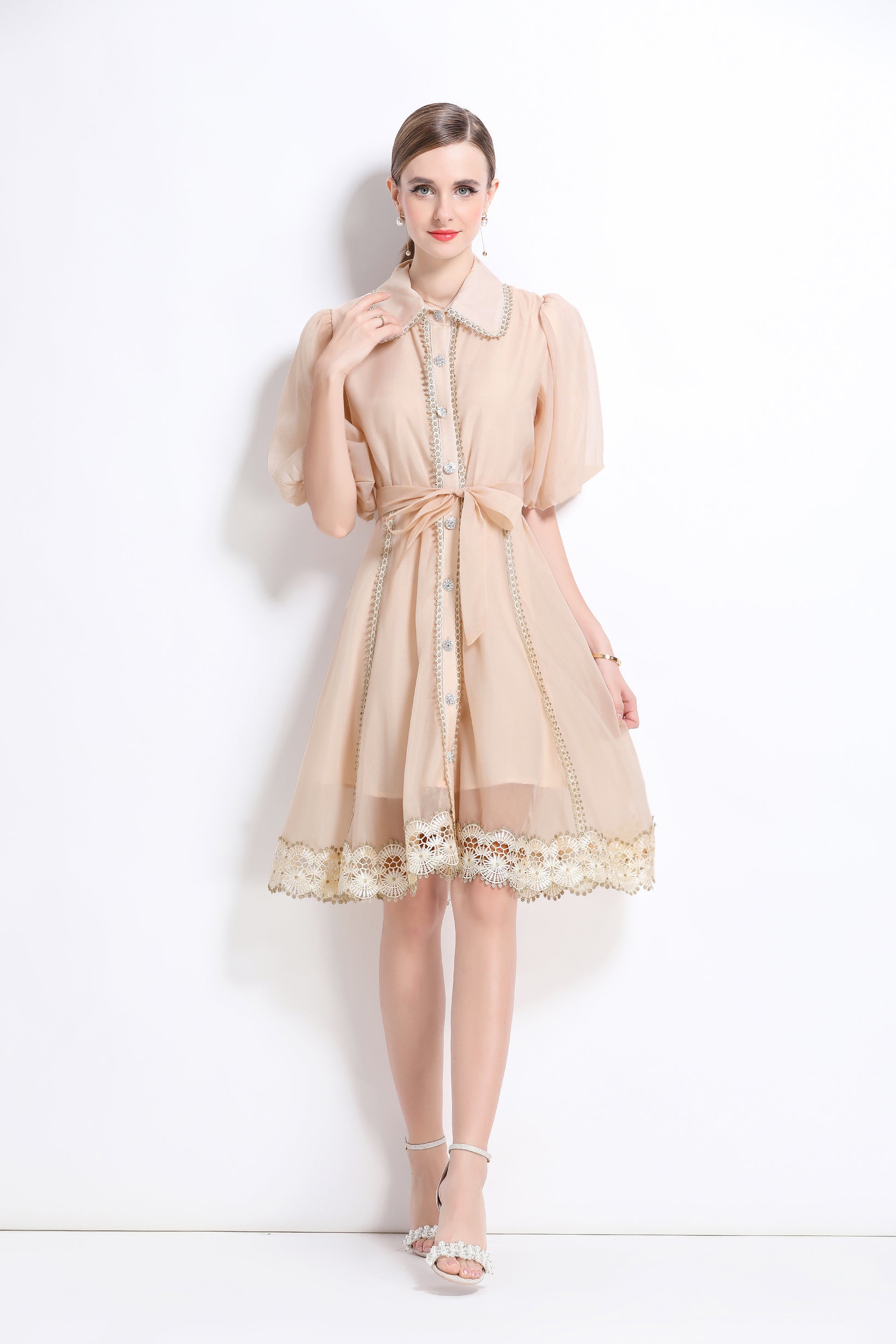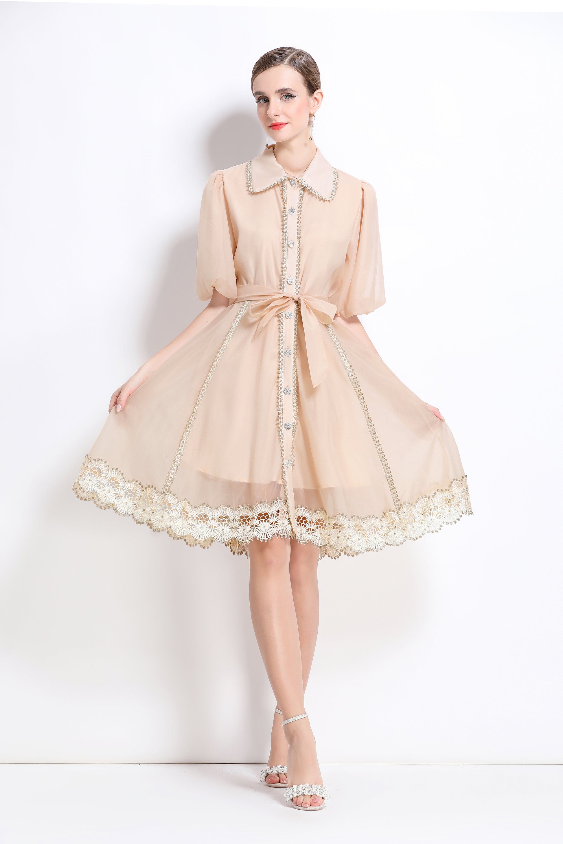 - Features: Summer, lapel neck, front button, lace trim, organza, lantern sleeve,a-line.