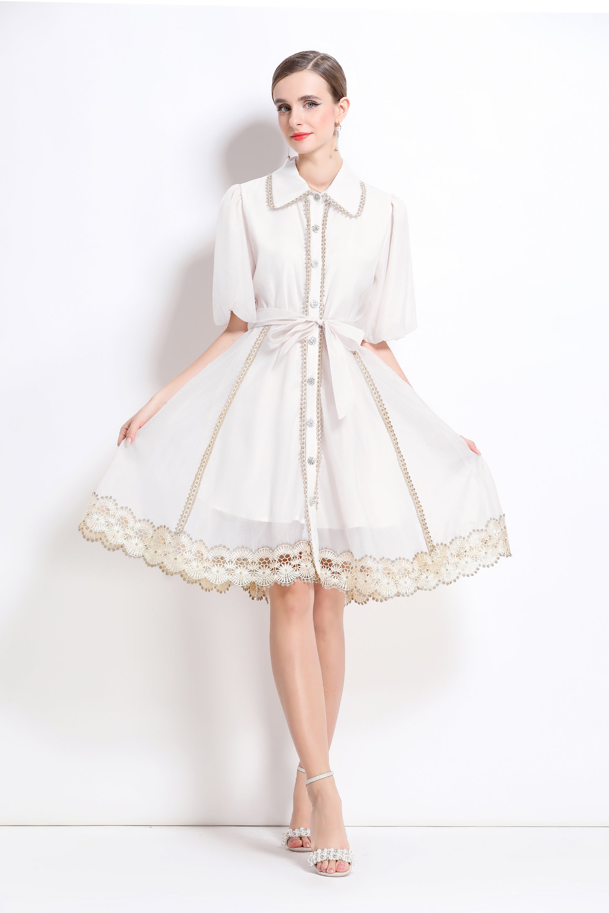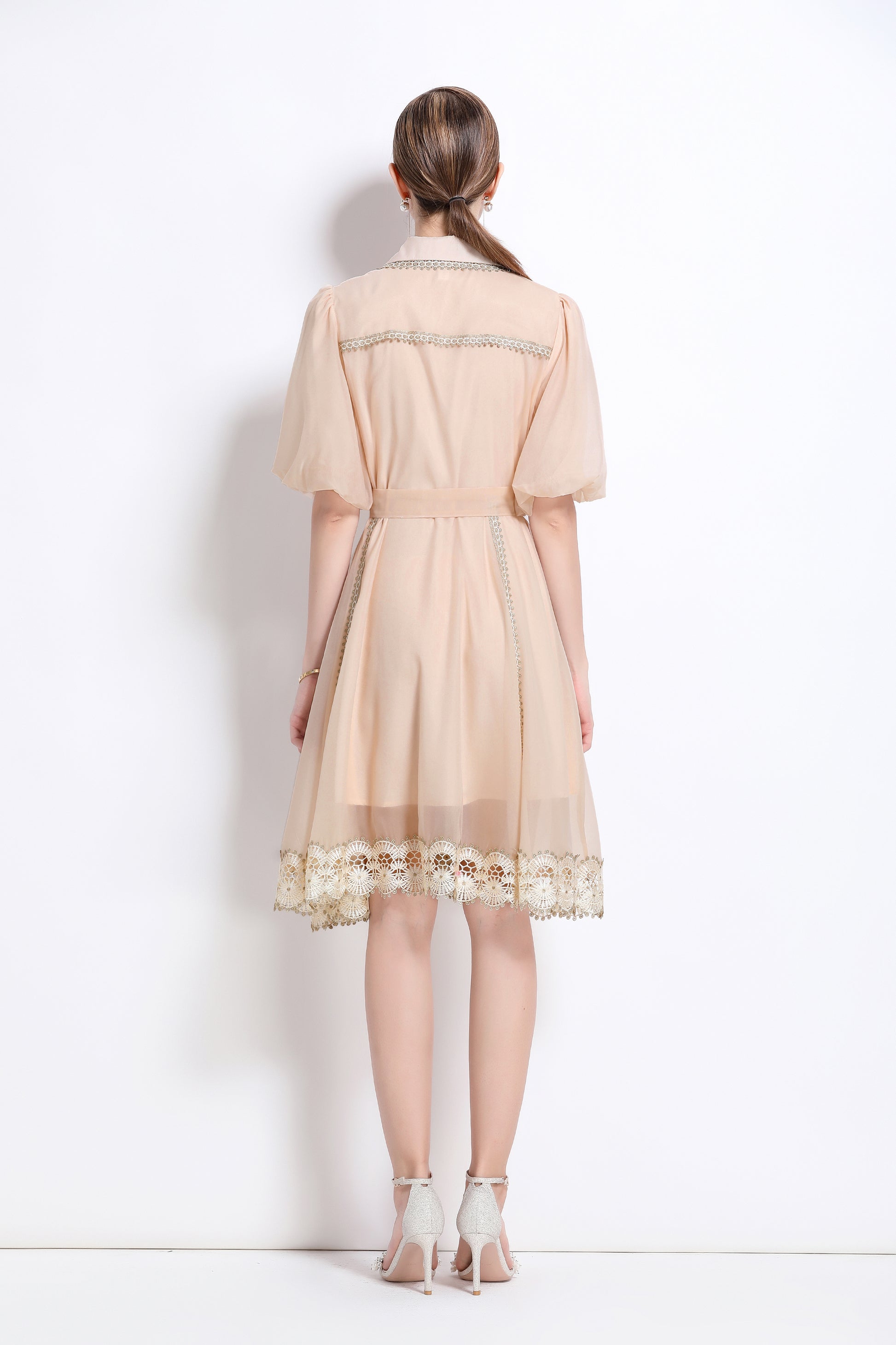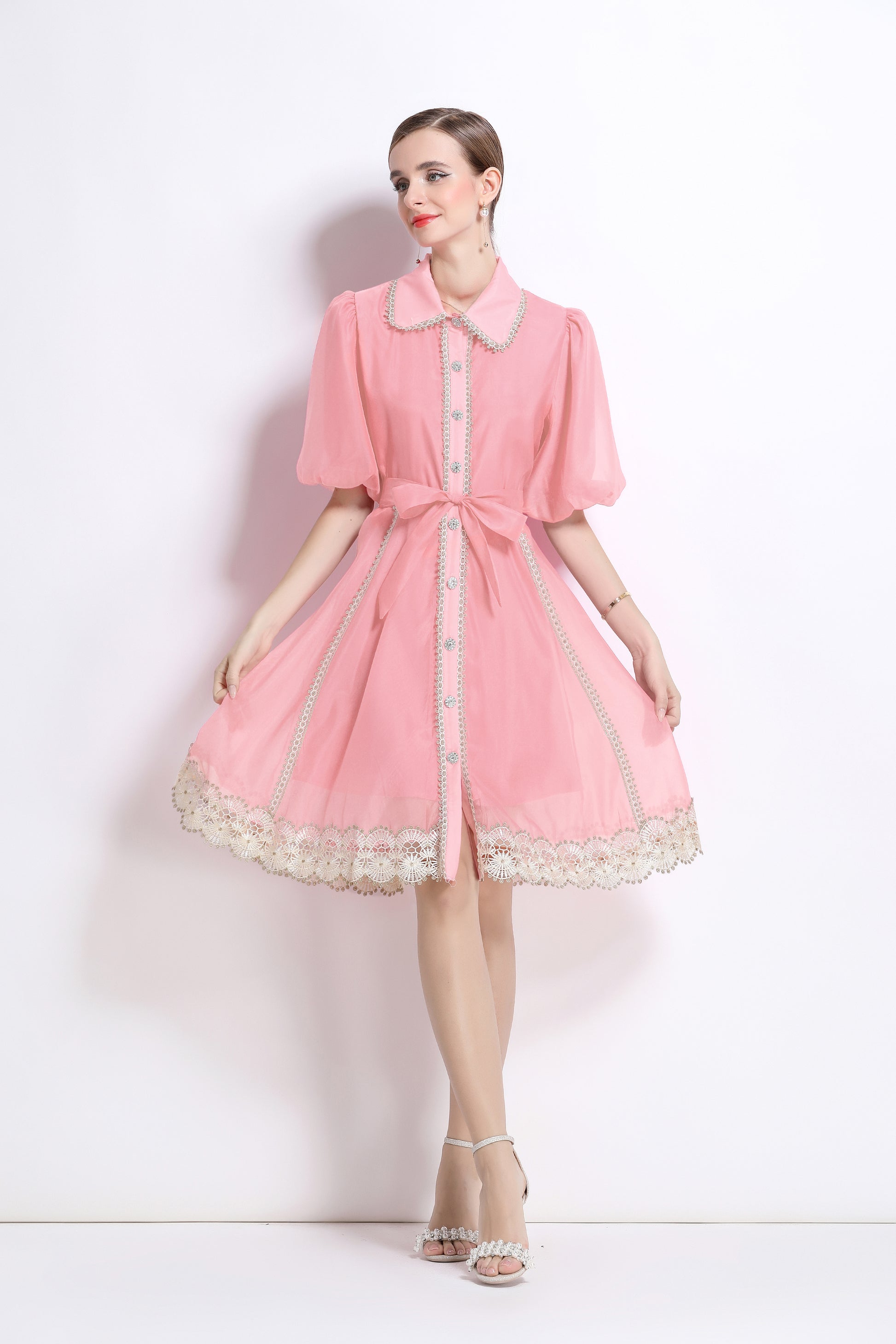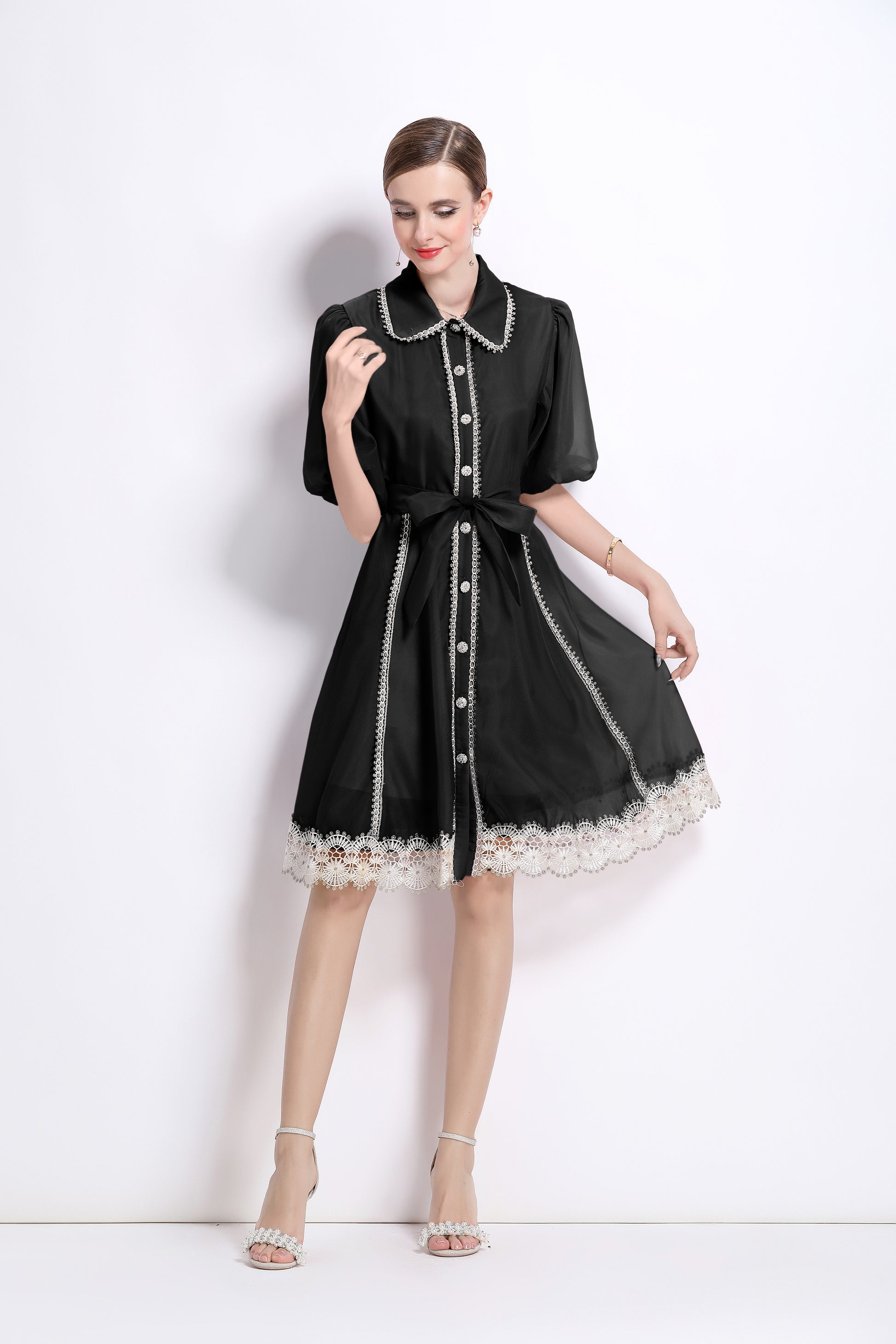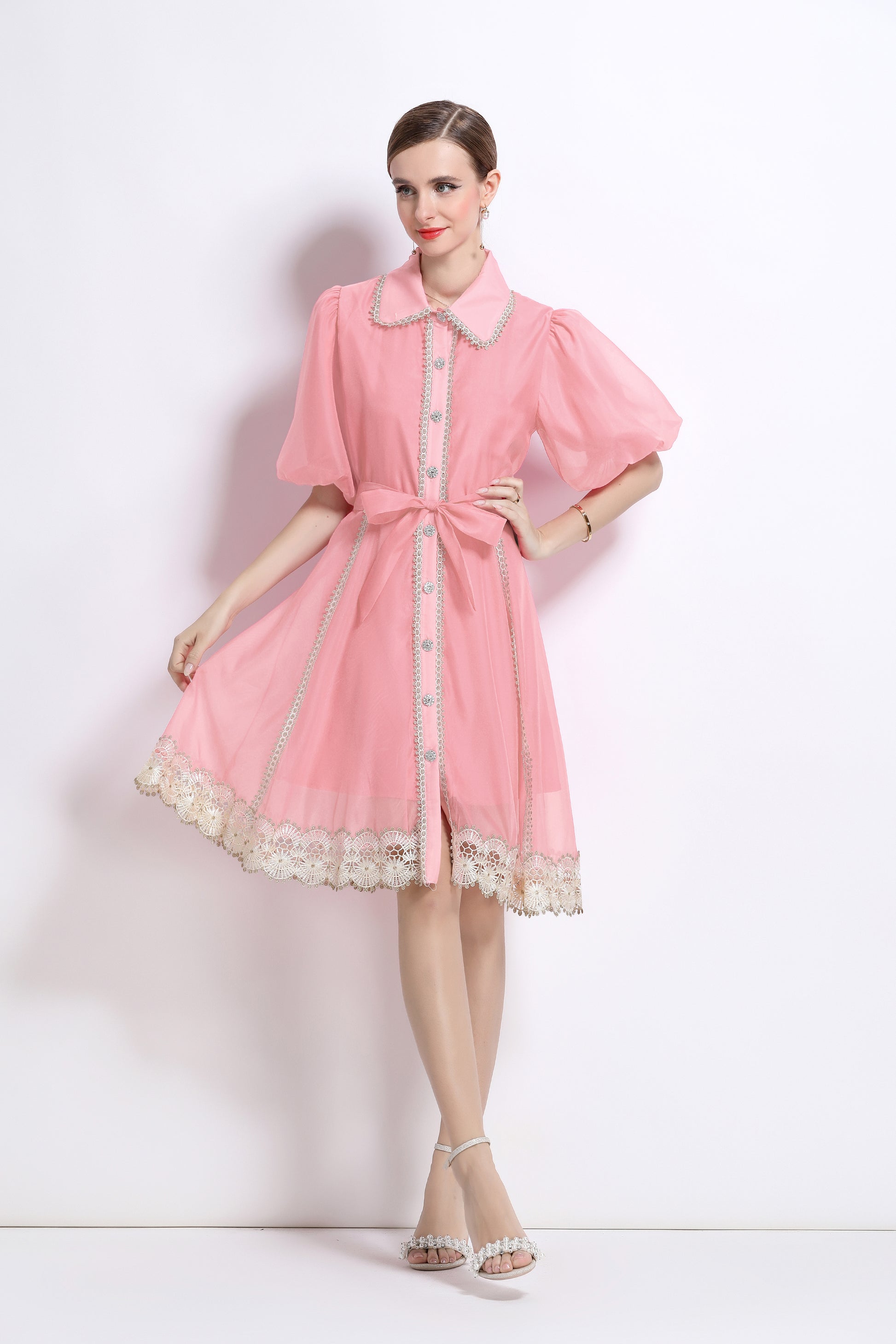 - Features: Summer, lapel neck, front button, lace trim, organza, lantern sleeve,a-line.