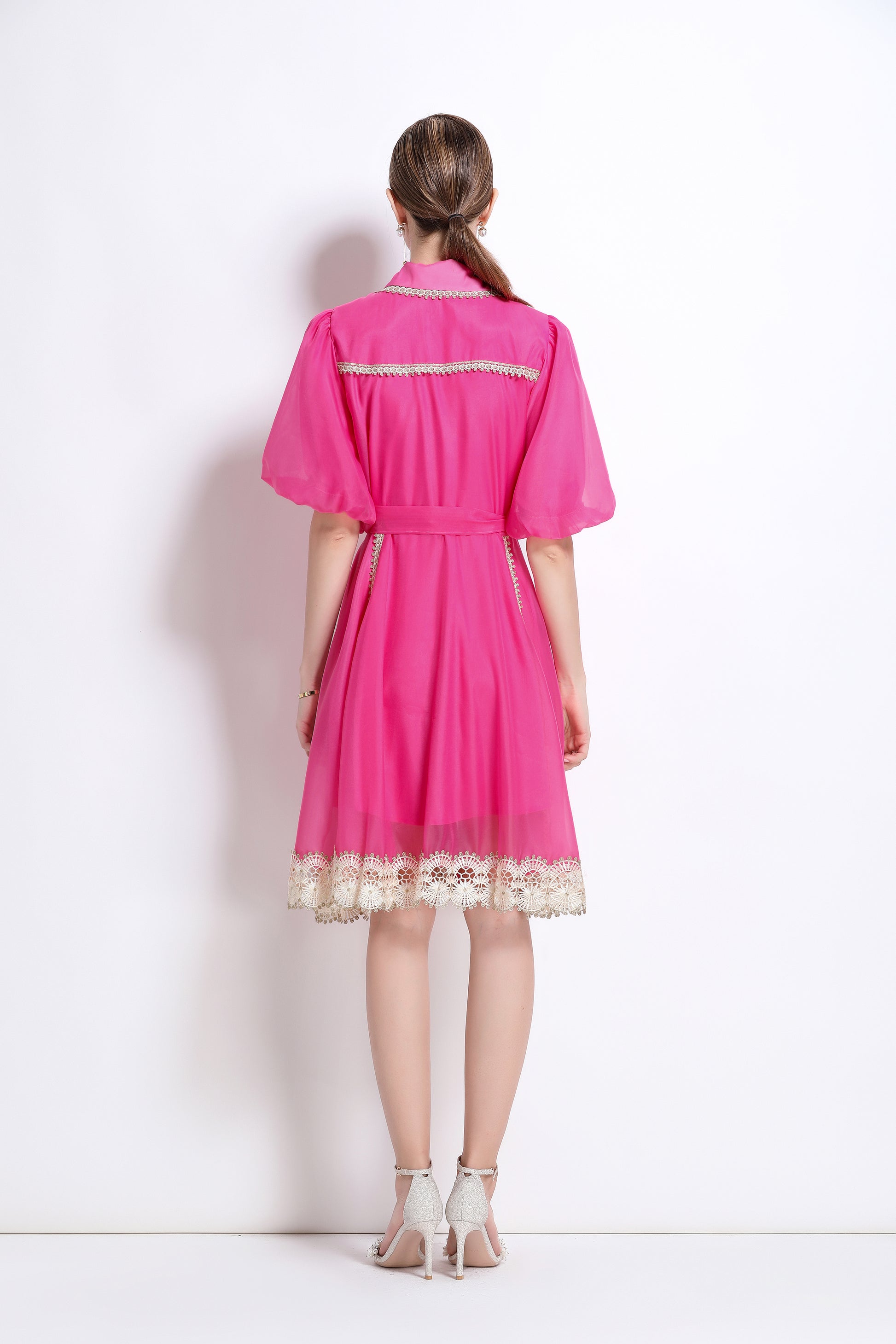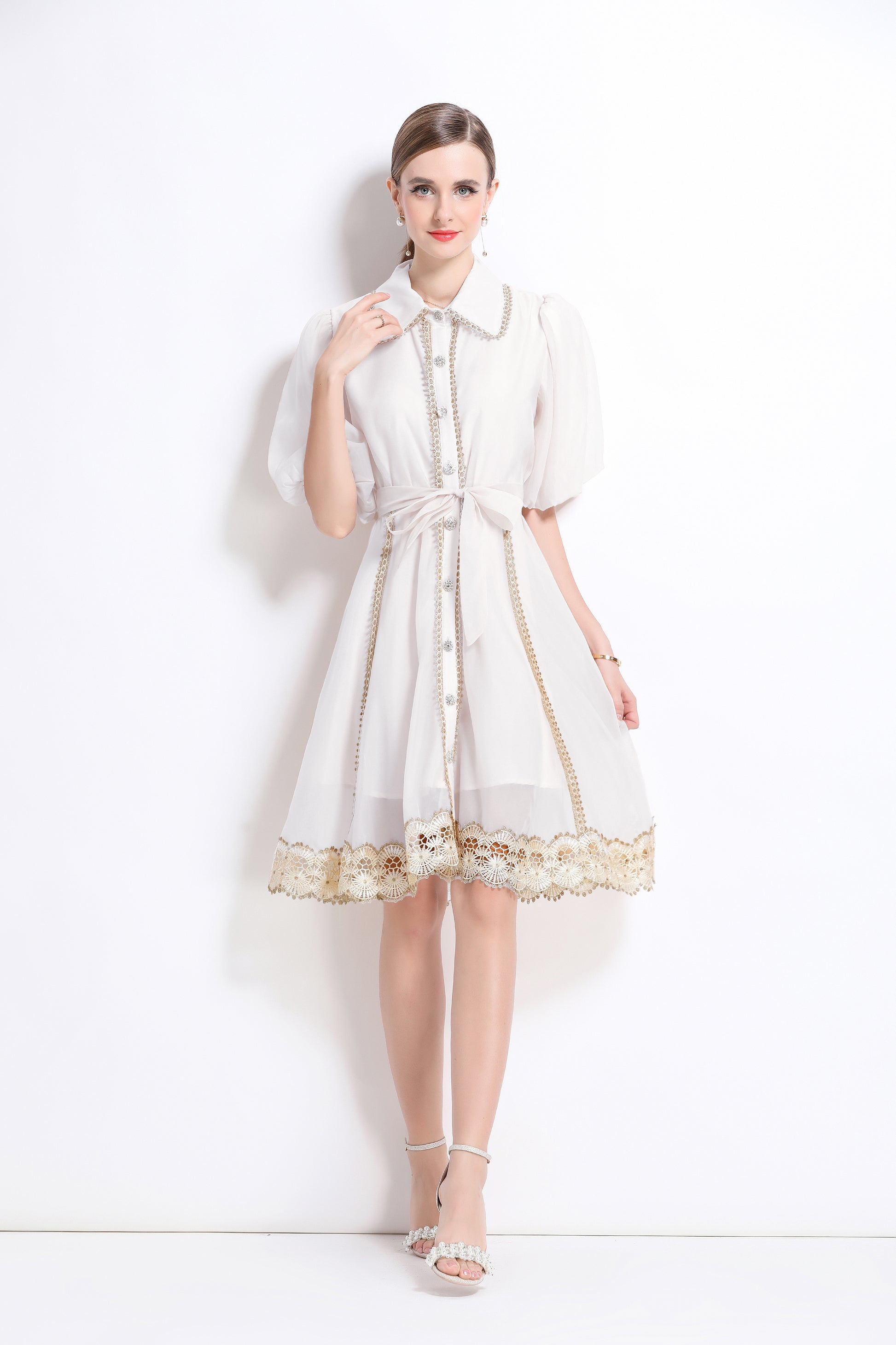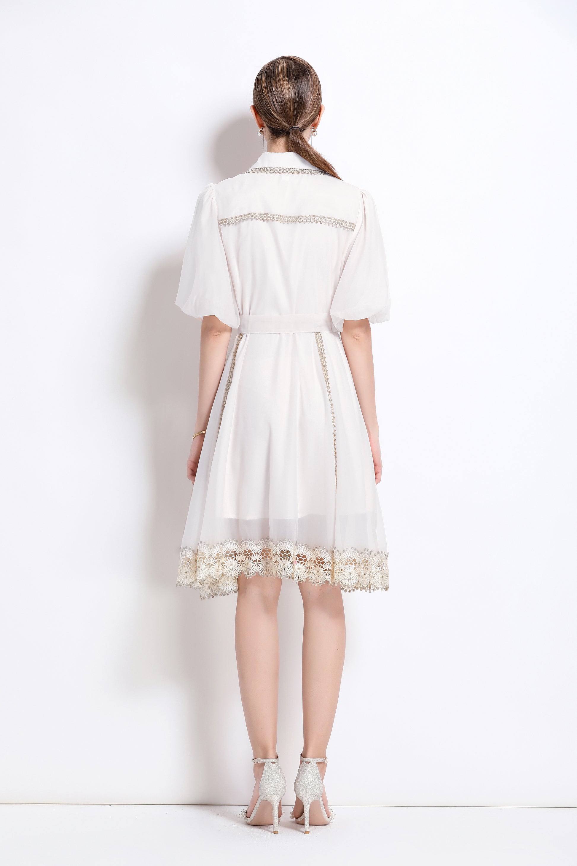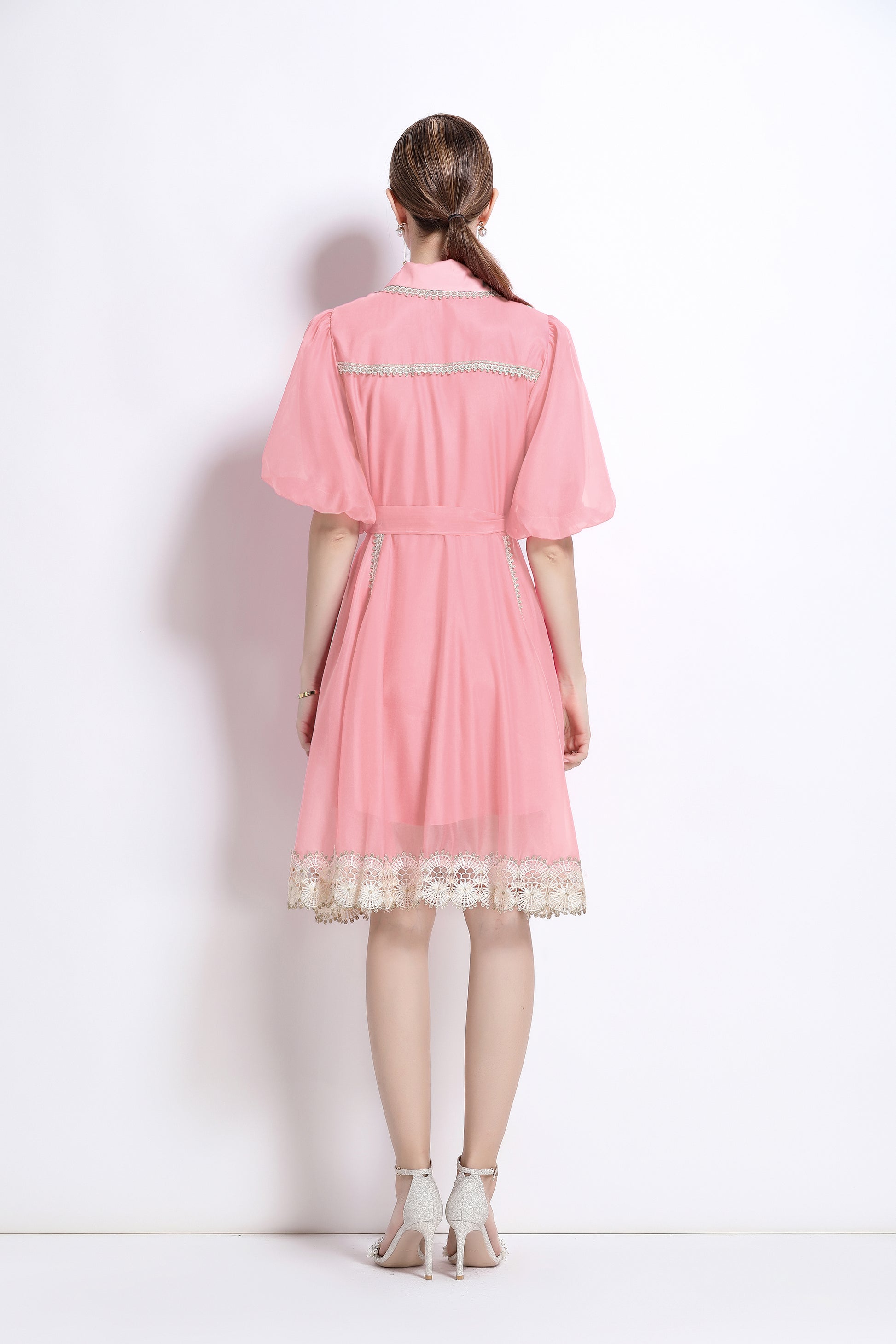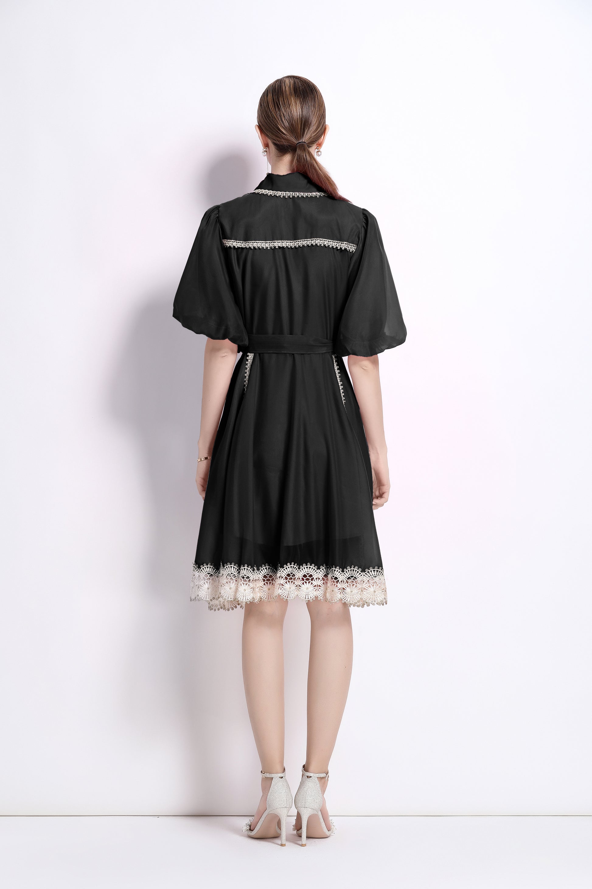 - Features: Summer, lapel neck, front button, lace trim, organza, lantern sleeve,a-line.