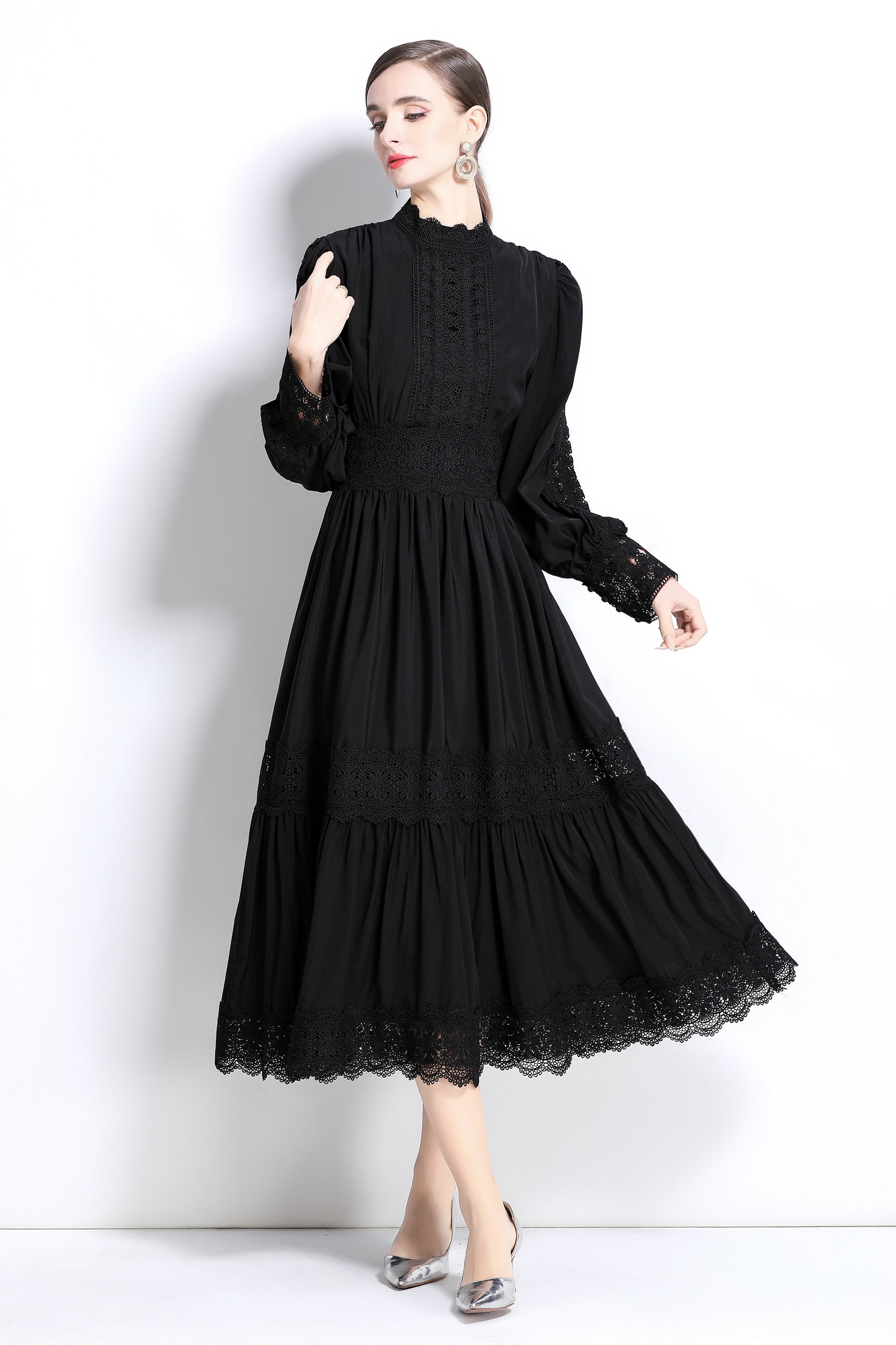 This palace style puff sleeve lace long skirt, with its exquisite hollow lace and elegant layered hem design, adds a touch of classicism and nobility to your wardrobe. This long skirt not only shows the feminine beauty of women, but also provides excellent comfort and fashion sense.