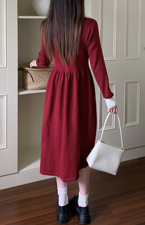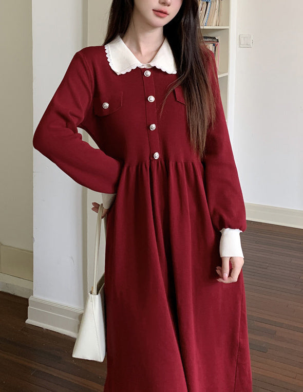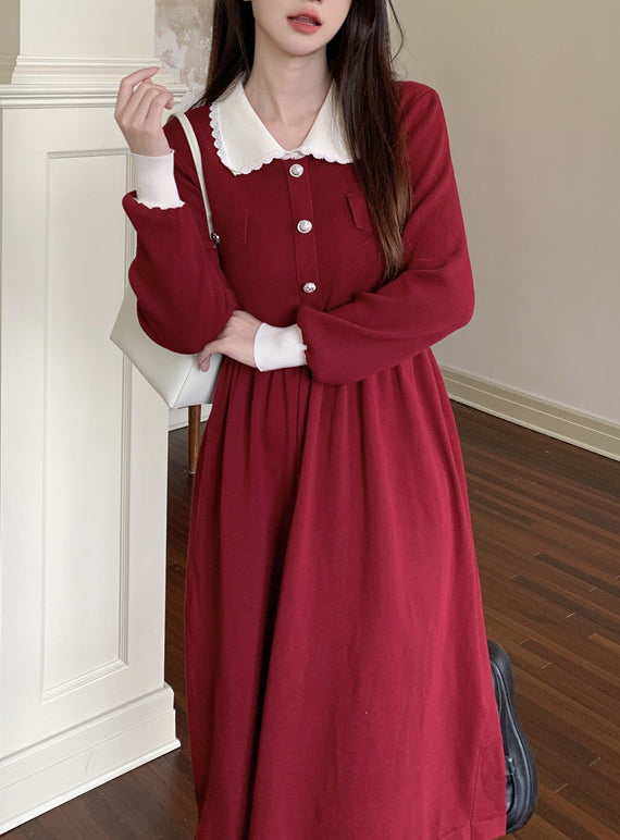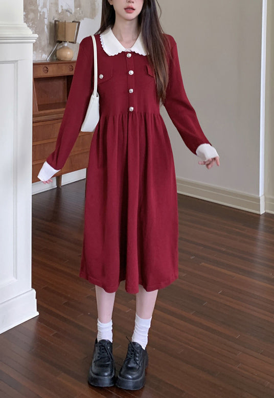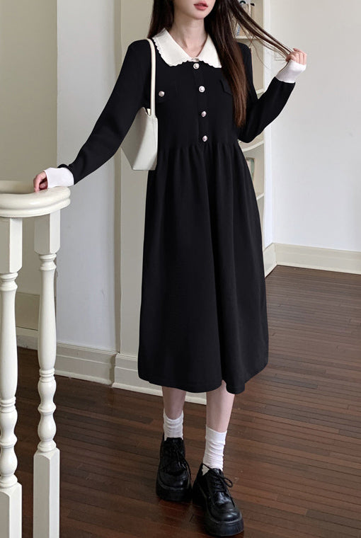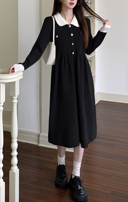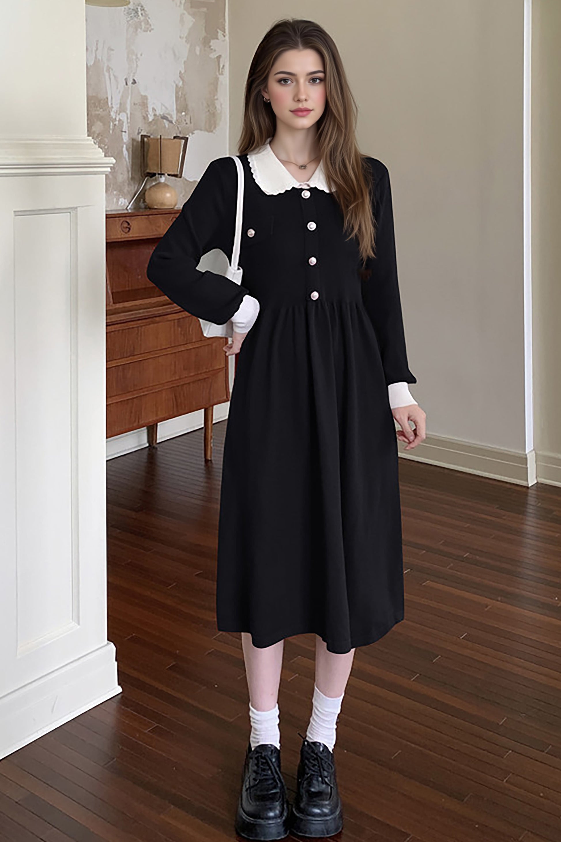 - Features: long sleeves, doll collar,elegant pullover knitted dress,cute knitted dress, button decoration,ribbed knitting,A-line,swing flowy pleated hems,solid color.Knitted dresses are the trend for women in 2025.